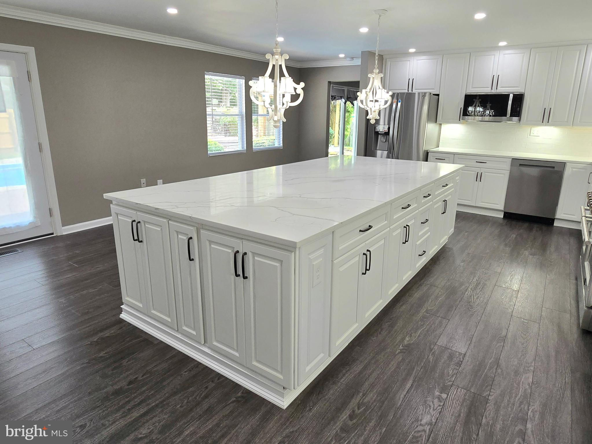 Welcome to 13405 Oxhill Ct. Nestled on a Corner lot, cul-de-sac and very near to community parks and forest. The Overbrook neighborhood of Bowie is perfect for those seeking a tranquil and convenient place to call home. | | This Levitt and Sons built Devon Ranch has been meticulously renovated to meet the highest standards of modern living while preserving its original character. It now features 4 spacious bedrooms, 3 full baths, an Accessory dwelling unit (ADU) / in-law suite, 2 full kitchens, pool house/bar addition all on 1 level with a total of 2,343 sqft. | | The main living space is open and spacious with enlarged windows, crown molding, recessed led lighting, luxury vinyl plank hardwood flooring, quartz fireplace with remote, and warm neutral-tone wall colors throughout.| | The KITCHEN is truly the heart of this home and a CHEF'S DREAM!! Features new top-of-the-line stainless steel appliances, commercial grade 48-in 8 burner gas range with double ovens! pot filler, large range hood, double sink w/dual faucets, quartz countertops, new 42-in soft close cabinetry, an ENORMOUS 10ft CENTER ISLAND with chandeliers and seating for FOUR!! Under cabinet led lighting, WALK-IN pantry, and additional dining space.| | French doors open the living space up to a fully fenced BACKYARD OASIS. There's a beautiful 18k Gallon in-ground pool with new wifi timed pump/filtration system, custom safety cover, pool house with bar seating, lounge patio area, a 2-tier pergola, and a play area off to the side offering additional entertaining space.| | The MASTER SUITE has space for a king sized bed, recessed lights/ceiling fan, dual closets, a private en-suite with DUAL SINK VANITY, luxury shower with well designed floor-to-ceiling tiles, and wall niches. The secondary bedrooms are generous sized and well appointed with recessed lights, ceiling fans, and high end flooring. Quartz countertops continue in ALL the bathrooms.| | The IN-LAW SUITE is on the far end of the home. Complete with its own private entrance, separate livingroom, it's own FULL Eat-in kitchen, private bedroom with en-suite and DUAL VANITY sinks! All with Quartz countertops consistent with the main home. No in-laws? Possibly use the space as an owners suite OR Rental unit, CREATE POSITIVE CASH FLOW! Nearby one bedroom units rent for OVER $1600/MONTH!!| | OTHER FEATURES; multiple Ring video surveillance security lights with cloud storage, screened front porch, laundry room with new washer/dryer, paved driveway with parking space for four cars, New HVAC system w/wifi thermostat, new water heater, all new appliances throughout w/manufacturer warranty, new insulated windows and doors, new vinyl siding with solid brick front, new 40yr high def architectural shingle roof, upgraded gutters, exterior downlighting, and No pesky HOA! Move-in ready and a Great opportunity. SCHEDULE YOUR SHOWING TODAY!
