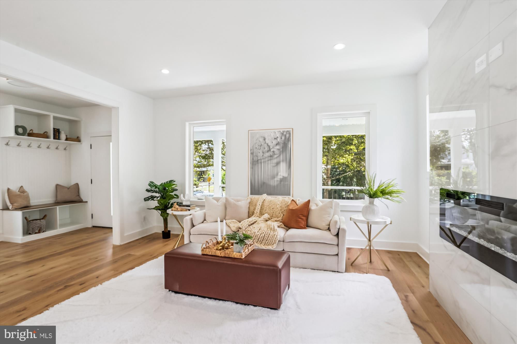Welcome to 1341 Ingraham Street NW, a completely redesigned and expanded Craftsman Bungalow—where everything is brand new! This extraordinary home offers an unparalleled opportunity to live in style and comfort within an idyllic, park-like setting in the coveted 16th Street Heights neighborhood, with easy access to all its wonderful amenities. Designed for both entertaining and everyday living this residence highlights fine architectural details, including gorgeous wood flooring, recessed lighting, porcelain-tile bathrooms, a magnificent quartz chef’s kitchen, 4.5 baths and inviting outdoor space. The front exterior offers a welcoming covered porch with a tongue-and-groove ceiling, synthetic decking, and a stamped paver walkway. Inside, the main level boasts a convenient mudroom area with cubbies and hooks, a light-filled living room with a striking gas fireplace, and a professional-grade kitchen with an expansive center island that opens to the dining and family room area, complete with two sliding doors leading to the rear yard. The outstanding kitchen includes exquisite quartz counters with intricate veining, LG stainless-steel appliances, a French door refrigerator, Shaker cabinetry with soft-close drawers, textured subway tile backsplash, ample prep space, a pantry, a gas range with a built-in griddle, and an exhaust hood. The main level is complete with a powder room featuring fluted wood tile and an elegant transom window. The second level offers three bedrooms and three full bathrooms (two of the bedrooms are en-suite), as well as the convenience of an upper-level laundry room. The luxurious primary suite includes a large walk-in closet with an organizing system, serene backyard views, and a spa-inspired bathroom with porcelain tile walls, chevron tile accents, a free-standing tub, floating double vanity with a smart mirror, and a glass-enclosed walk-in shower with a niche. The secondary bathrooms are equally impressive, featuring refined wood vanities and porcelain tile design. The third level features a versatile bonus room / den with wood flooring and treetop views. The lower level includes a bright recreation room with recessed lighting, abundant natural light, and a quartz wet bar. A full bathroom and under-stair storage complete this level. Unparalleled quality craftsmanship and refined finishes—all on a picturesque lot! The fenced backyard offers green space and access to the stamped paver parking surface. Tucked between the energy of downtown D.C. and the natural beauty of Rock Creek Park, 16th Street Heights offers the best of both worlds. This welcoming neighborhood is known for its tree-lined streets, spacious front porches, and strong sense of community. Residents enjoy a peaceful, residential atmosphere without sacrificing proximity to city life—plus, they’re just moments from outdoor escapes like the Fitzgerald Tennis Center and Rock Creek Parks scenic trails. It’s a neighborhood that feels like home the moment you arrive.