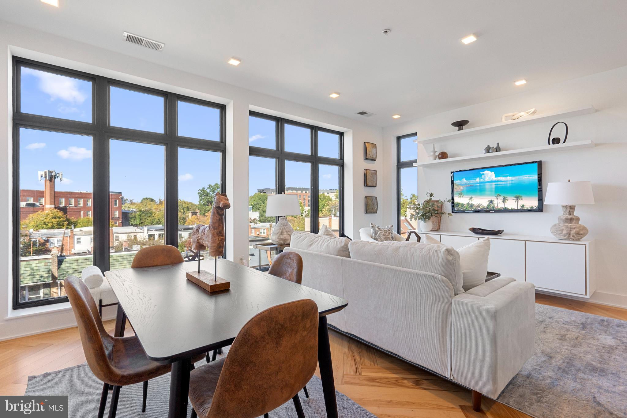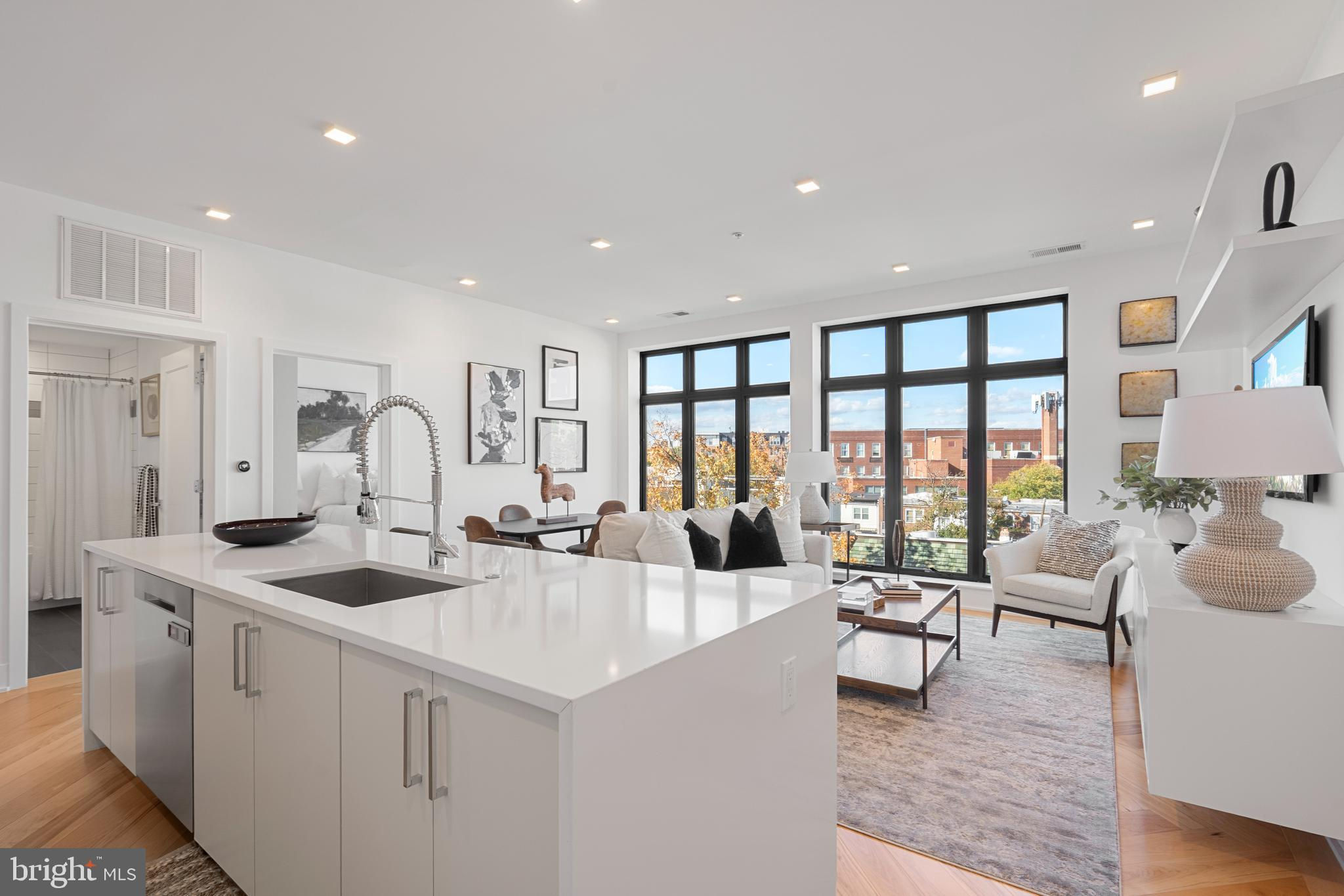 Welcome to this gorgeous condo on Capitol Hill! This outstanding unit is walking distance to world class restaurants and shops at Eastern Market, Barracks Row and Penn Ave. It is very near the Potomac Avenue Metro and a Hill favorite, The Roost. Built in 2017, Stone Hill is a boutique condo building featuring luxurious contemporary finishes and designer touches. It sports a fabulous roof deck with Capitol and Monument views! Offering great livability and sophisticated style, the two bedroom, two full bath unit’s position in the building makes it feel as if it is a penthouse unit. There are no neighbors above the condo and it has only one shared wall with next door. The unit has its own dedicated parking space, additional storage, and washer and dryer. Catch the breeze with the wonderful bonus of a private balcony. There is a secure bike room in the building and it is pet friendly. The contemporary layout flows seamlessly, allowing for lovely entertaining space. The living room sparkles with a beautiful wall of windows. Fine herringbone wood floors are found throughout. The bedrooms are on opposite sides of the unit, allowing for increased privacy. In addition, the high ceilings make it seem even more spacious. The gourmet kitchen is a showstopper! It features 42-inch upscale cabinetry and a large island. There are stainless steel Samsung appliances, with the stove using gas heat. A chef will delight in creating culinary masterpieces with the copious countertops and prep space! Among many seller improvements are the beautiful floating console, customed designed and installed in the living room. Also bespoke are the open shelves in the living room and second bedroom. The seller installed closet built-ins in both bedroom closets as well as a contemporary new backsplash that adds pizzazz to the kitchen. With its unique location, this stunning condo has it all: a premier address, easy commuting routes, convenient access to the metro and walking to some of the finest restaurants and boutique stores in Washington. This prestigious condo offers the perfect ingredients for the fortunate buyer to be able to call it “Home!”