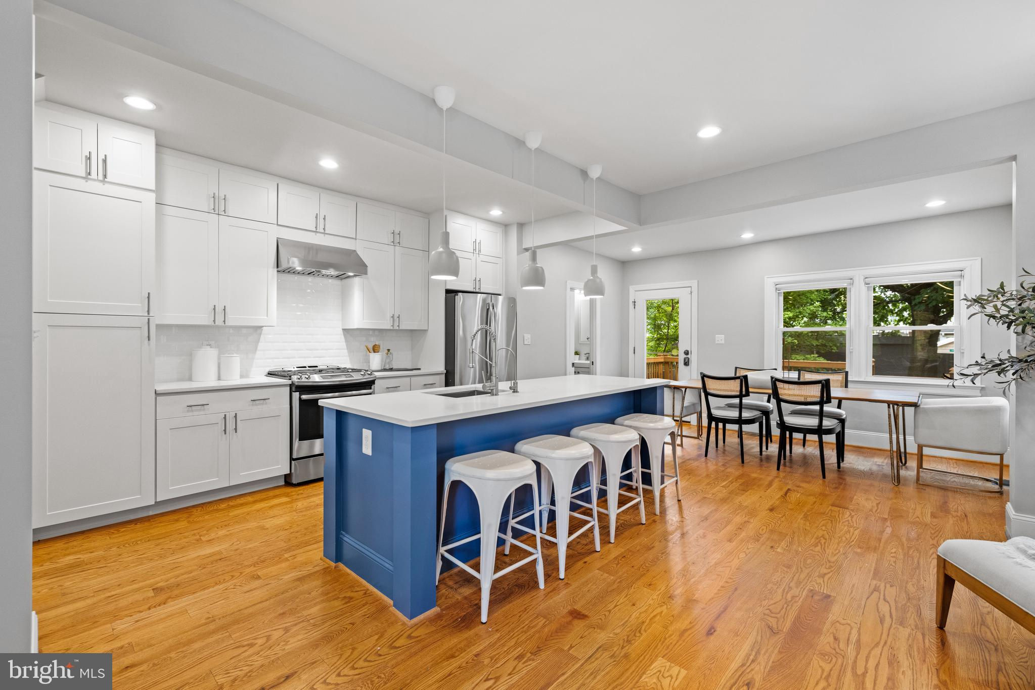 Introducing this remarkable 5-bedroom, 3.5-bathroom semi-detached row home in the vibrant 16th Street Heights neighborhood. This exceptional residence spans three floors with a large deck, backyard, and off street parking for 2 cars with a secure garage door. Step inside and you are greeted by beautiful hardwood floors and abundant natural light from the three walls of windows. The kitchen is the heart of the main floor, featuring a large island for additional prep space and convenient casual seating. The refinished cabinets, ceramic backsplash, and stainless steel appliances create a beautiful space for cooking and entertaining. On either side of the kitchen are the living and dining areas that seamlessly transition to the inviting deck, creating an ideal setting for indoor-outdoor living and entertaining. A half bath and coat closet complete the main level. Upstairs, there are 4 bedrooms with large windows, hardwood floors, and customized closets. The luxurious primary suite is a true oasis with skylights, custom built-ins, and a beautifully appointed en-suite bathroom. The hall bathroom services the other three rooms with a soaking tub. The washer and dryer are located on this level for ultimate convenience. The lower level features an impressive full kitchen, a well-appointed basement bedroom, full bathroom with large walk-in shower and dual vanities. This level has separate rear access, providing flexibility and convenience for extended living arrangements or private entertainment space. The additional washer and dryer hook-up enhances the practicality of this level. Conveniently located near popular dining and shopping destinations; including Moreland's Tavern and the seasonal farmers market all just one block from your front door. Other neighborhood favorites; Fitzgerald Tennis Center, Rock Creek Park, Carton Barron Soccer Fields and Amphitheater, Upshur Rec Center, as well as the shops, restaurants, and Whole Foods at the new Parks at Walter Reed. SUPER Home Warranty conveys with the purchase.