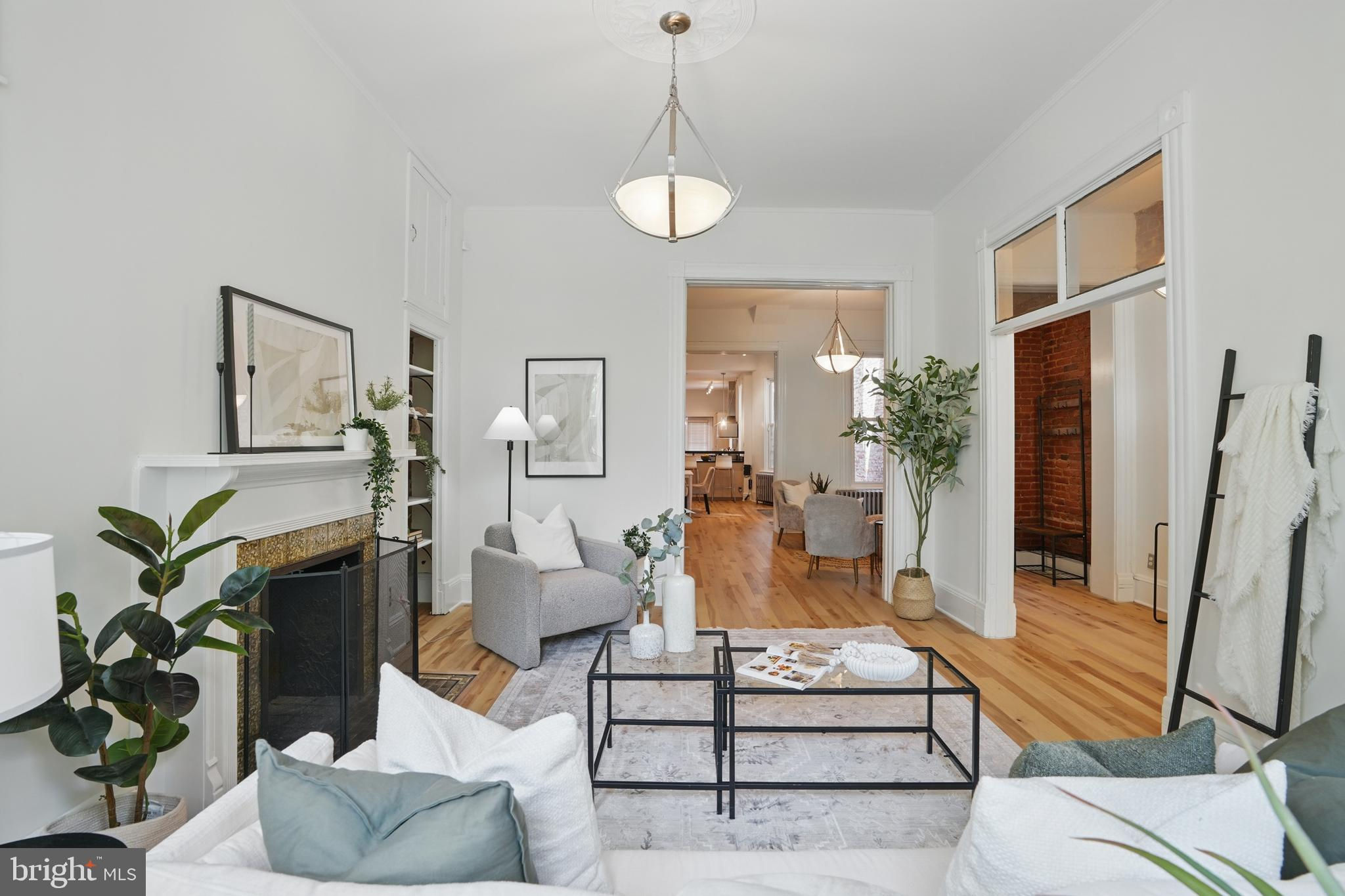 Experience the timeless charm and modern elegance of this spectacular Eckington Victorian—a home that seamlessly blends historic character with contemporary upgrades. Built in 1907, this stunning residence offers 3 bedrooms, 3.5 baths, and an expansive open floor plan, featuring soaring 11-foot ceilings, exposed brick, and exquisite original details. Step inside to find a formal living room, a cozy sitting parlor, and a spacious dining area framed by two oversized, functioning pocket doors and intricate wood moldings. The gourmet kitchen is a chef’s dream, complete with modern stainless steel appliances, a prep sink, granite countertops, a breakfast bar, and ample storage. The master suite boasts a spa-like bath with a jetted soaking tub, two-person glass-enclosed shower, and granite finishes. Additional highlights include three fireplaces with original 100-year-old tile and mantels, an original clawfoot tub in the second bath, and a breathtaking stained-glass skylight. The home has been meticulously maintained and upgraded, featuring beautiful distressed birch hardwood floors, a new combi-boiler system, and Google Nest smart thermostats and security cameras. With energy-efficient exterior windows, radiator heating (including a showpiece curved radiator in the living room), and a recently tuckpointed exterior, this residence is move-in ready. The slightly enclosed ivy-covered front yard provides privacy and enhances the home's classic appeal. Located in historic Eckington, this home offers easy access to some of the best dining, retail, and entertainment options in the city. Enjoy a 10-minute walk to Union Market, home to Michelin-starred restaurants, Warby Parker, Politics & Prose, and more. Just minutes away, find The Bouldering Project climbing gym, Union Kitchen Deli, Pops Bagels, and Lost Generation Brewery. The NoMa-Gallaudet Metro (Red Line) is a short stroll away, and easy access to New York and Florida Avenues makes commuting effortless. With incredible historic charm, thoughtful modern upgrades, and endless potential—including a large attic space ideal for a future third floor—this home offers a truly rare opportunity in the heart of Eckington.