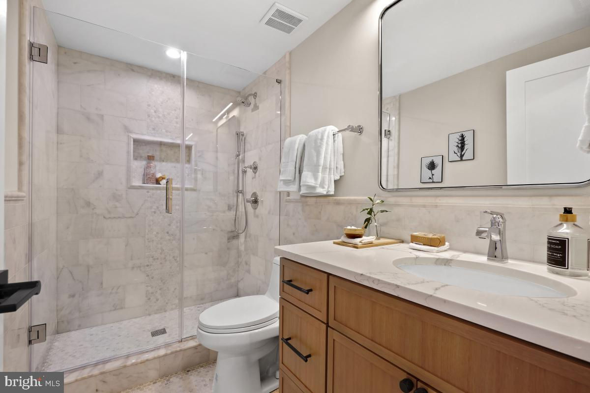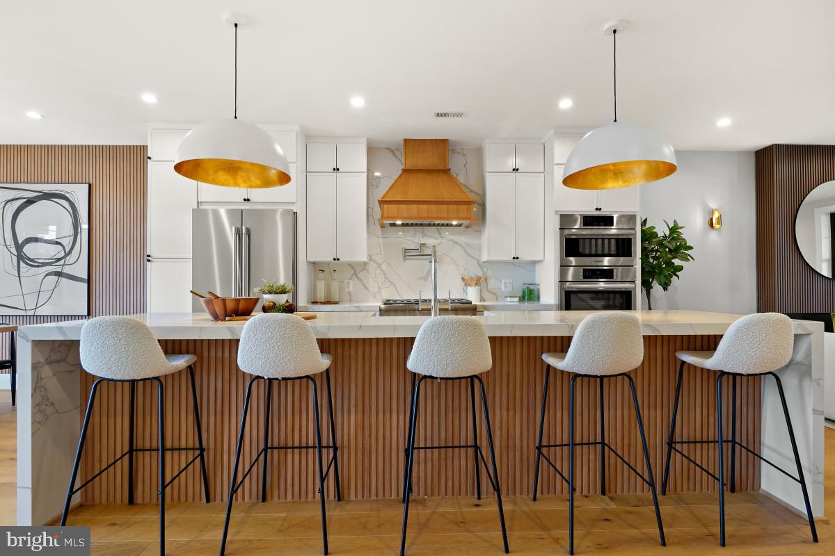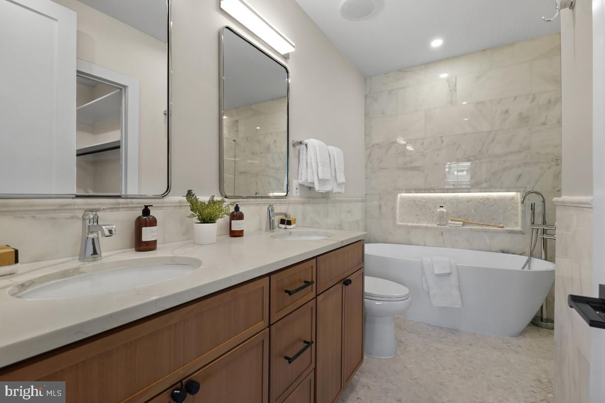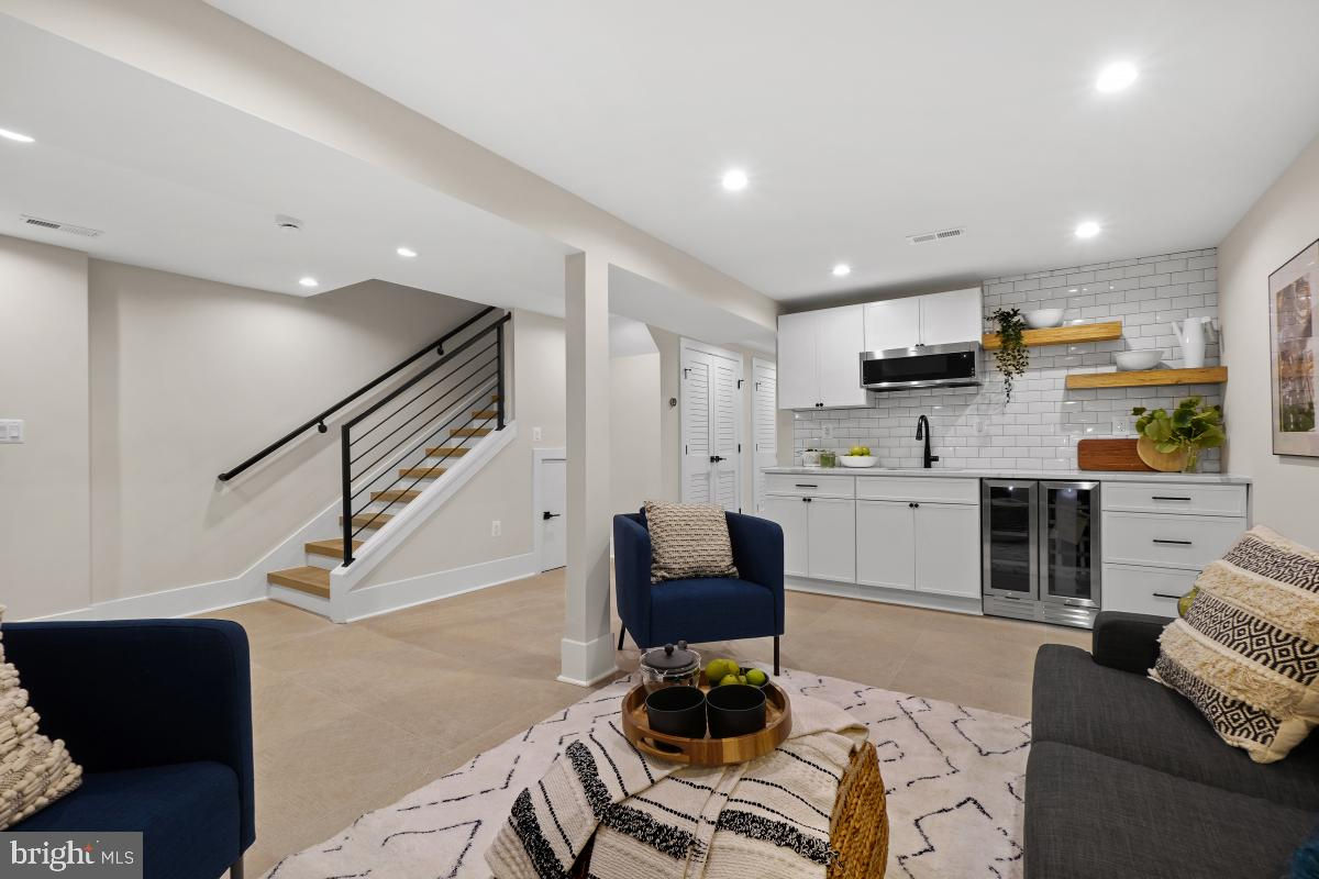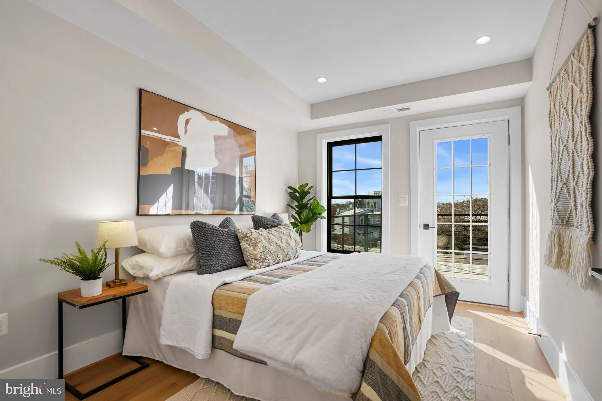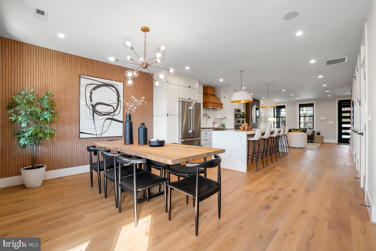MAZING VALUE! Welcome to your dream home. This stunning completely renovated 5-bed, 3.5-bath home is flooded with natural light and boasting an inviting open floor plan. Ideal for entertaining, this gem features wide oak wood floors, a built-in Bluetooth audio system, and recessed lighting throughout. The kitchen is a chef's delight with premium quartz stone countertops, enhanced double floor to ceiling cabinets, upgraded stainless steel appliances including 36” six burner gas stove, chimney hood, pot filler, double oven with convection microwave, and a spacious island with a waterfall edge. Luxurious marble baths with designer finishes. The primary bedroom is a retreat with walk-in closets and a custom-built spiral staircase leading to a light-filled office space. The primary bath is a spa-like oasis with a standalone designer tub, dual sink vanity, and a walk-in shower. The lower level offers family room for entertaining with 2 bedrooms,1 bath, wet bar, built-in microwave, wine-fridge, rear entrance, and patio. This home has laundry on upper and lower levels. All systems in this home are new: plumbing, electrical, dual zoned Carrier HVAC systems, and upgraded tankless water heater. Enjoy a private landscaped yard with dual large decks and 2-car secured parking with a roll-up garage door. Conveniently situated in close proximity to Rock Creek Park, public transportation with easy access to the amenities of Columbia Heights, Petworth, and 16th Street Heights and Mount Pleasant.
