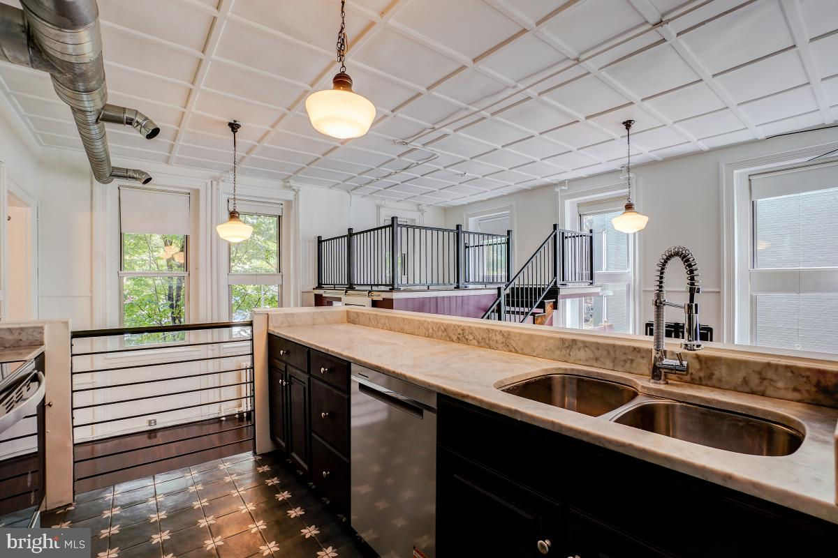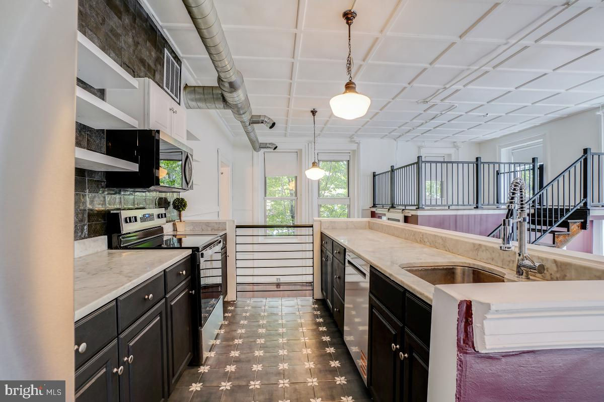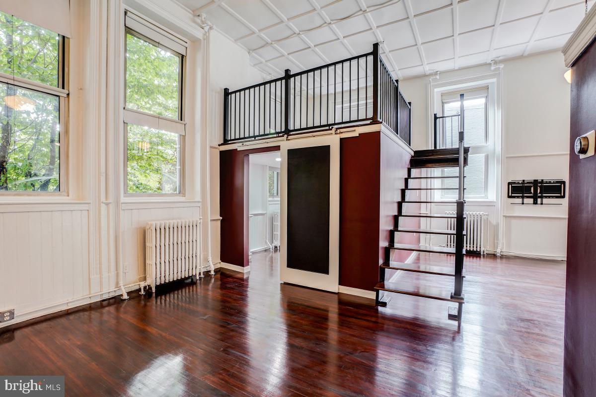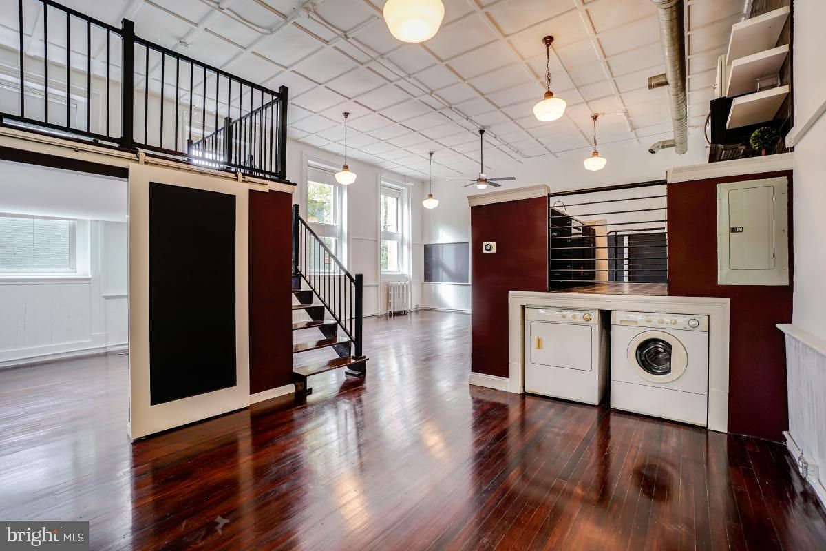 Rarely Available Unit in Historic Pierce School Lofts. Exceptional opportunity to own a unique top-level loft in Capitol Hill’s iconic Pierce School Lofts. Built in 1895 and renovated in 2005, Unit F seamlessly blends historic charm and an abundance of character with modern amenities. This bright and airy residence features 16-foot ceilings, 9-foot windows, original hardwood floors, and 25-foot chalkboards—a nod to the building’s former life as a schoolhouse. The elevated, newly renovated kitchen boasts new appliances, marble countertops and ample storage, ideal for both cooking and entertaining. A custom staircase leads to a spacious lofted king-size bedroom. Below, a sliding barn door opens to a flexible space perfect for a home office or second bedroom. The fully renovated, expansive 24-foot bathroom showcases exposed brick, a frameless glass shower, a 12-foot marble double vanity, and a freestanding clawfoot tub. Outdoor amenities include a 40,000-gallon heated black-bottom pool, year-round jetted jacuzzi, outdoor kitchen with gas and charcoal grills, and ample seating—shared by only 10 units. Building features include secure entry, a full gym, and secure bike storage, and package room. Prime location walkable to Eastern Market, H Street Corridor, Union Station, Lincoln Park, and Union Market.