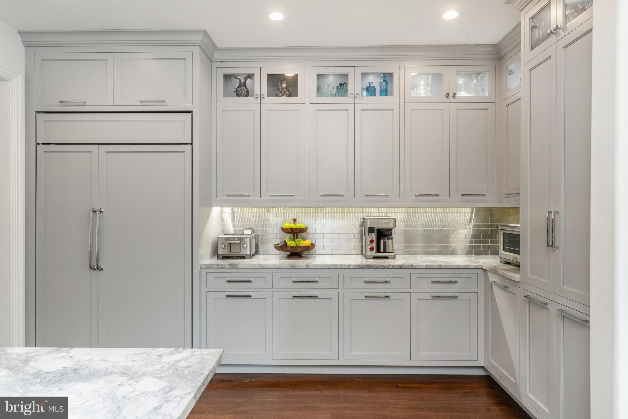 14 Valley View is situated on a rarely traveled side street steps from the dining and shopping of Chestnut Hill. Entering through the oversized front porch, you are greeted with a gracious center hallway flanked by the formal living and dining rooms. The living room is full of light and graces the occupants with the warmth of an oversized fireplace. The graciously sized dining room offers the perfect space to entertain with an expansive adjacent bar area which can double as the perfect serving space. Continuing down the main hallway is the beautifully appointed family room, complete with a tray ceiling and stone surround fireplace. Just beyond the family room is a private study with a vaulted ceiling, custom built-in bookshelves, a third fireplace and custom glass pocket doors which can be closed to create a serene setting to work or relax. One of the two powder rooms on this level is located just off the main hallway with a second located in the mudroom area. Alongside the family room is the kitchen which is outfitted with professional grade Sub-Zero and Wolf appliances, quartzite countertops, and breakfast area. Adjacent to the kitchen is a bonus area which is the perfect homework area/home command center, and a mudroom with custom built-in storage. Elegant sliding glass doors open to a flagstone terrace with a summer kitchen for easy grilling and a convenient location for beverages. The second floor, which can be accessed via the main or back staircase includes a serene primary suite with a spa-like bathroom. Two secondary bedrooms share an oversized Jack and Jill bathroom and two additional bedrooms both include ensuite bathrooms. The third floor consists of a large bonus area which has the flexibility to serve as a playroom, home office or guest suite with a full bath and an additional storage area. The basement has been impeccably finished with a media area, custom bar, and fitness room. A walk-out to the rear yard give the basement an element of natural light and convenient access to the outdoors. Extensive, mature landscaping provides a private park-like setting with a fenced backyard. A three-car attached garage and long driveway offer plenty of parking. Located within walking distance of the train and the trails of Fairmount Park. 14 Valley View offers 3 years left on the tax abatement.
