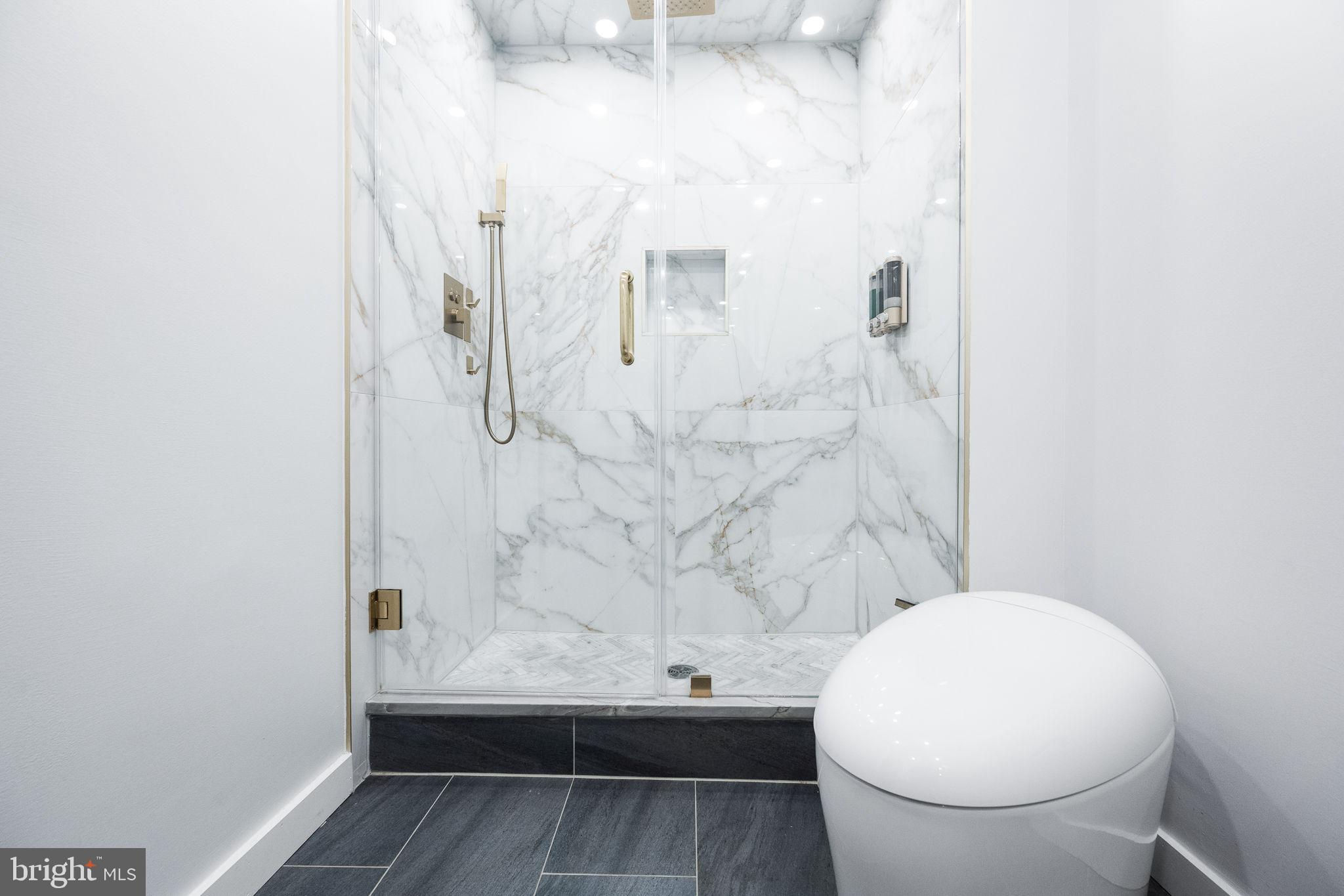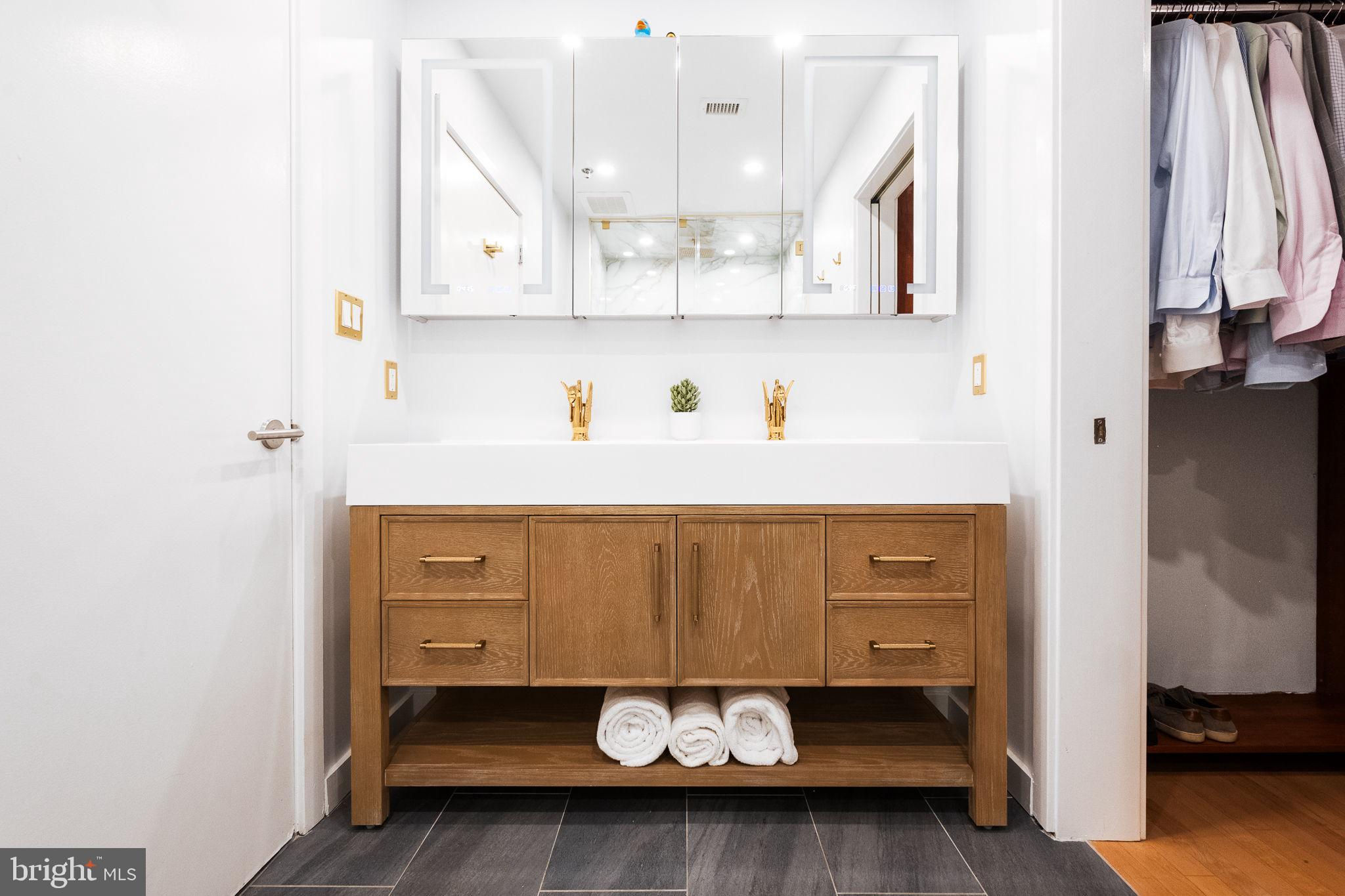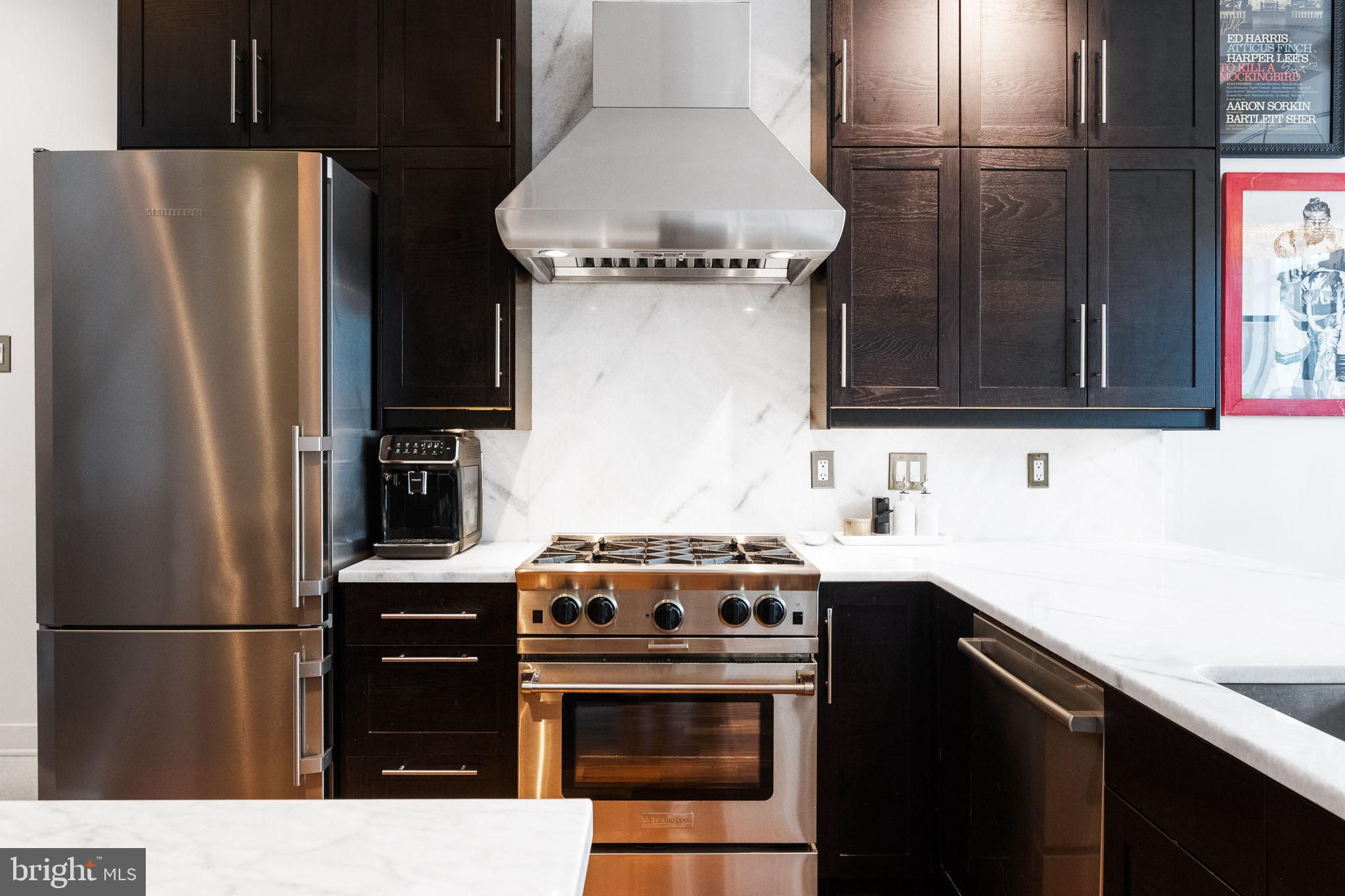 This highly sought after penthouse condo on one of DC's most coveted blocks offers 2 bedrooms + den, 2.5 baths, and a private rooftop terrace graciously laid out over 2 levels. This unit will immediately delight you upon entry - an expanse of southern facing oversized windows, 10+ foot ceilings, hardwood floors, and gas fireplace. Turn to your right and press the button to a secret room, revealing the half bath, laundry, and flex space that can be used as an office, wine storage, pantry, and more. Updated kitchen with stainless steel appliances, gas range, additional separate ice maker, new counter tops, and two moveable islands for additional storage. All bathrooms are fully renovated and thoughtfully carry the design throughout the unit. The primary bedroom includes an en suite full bath with double vanity, plus walk-in closet. Upstairs you'll find the second bedroom, den, a full bathroom, and the stunning rooftop terrace where you can enjoy both sunrise and sunset across the DC skyline. Additional thoughtful upgrades include smart switches throughout the unit and relocating the primary bedroom entrance to create a dedicated dining room space. This offering includes one assigned parking garage space and one assigned storage unit. Logan Circle's Lofts14 offers amenities including: front desk concierge, rooftop deck with lounge, separate package room, and 2 elevators.