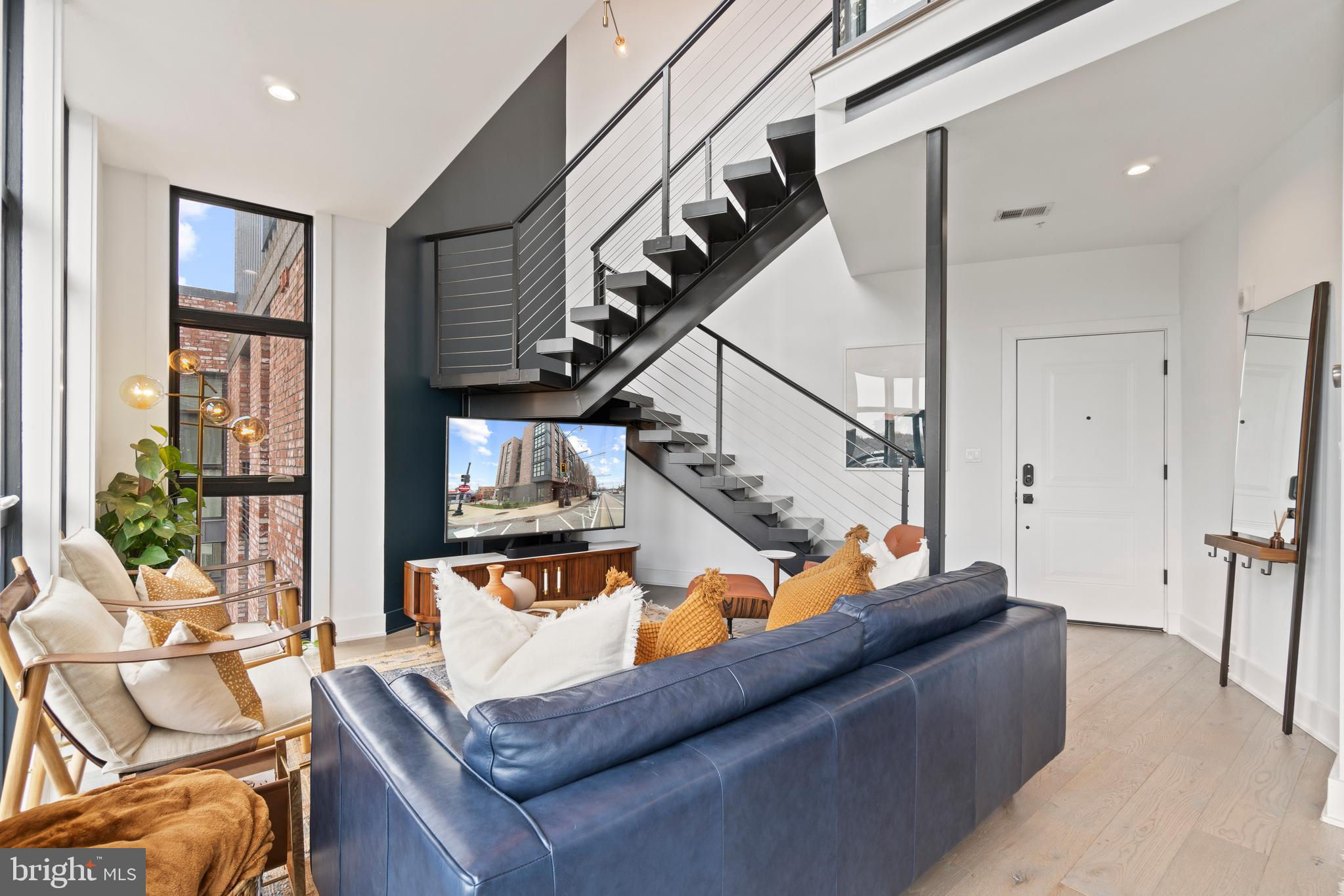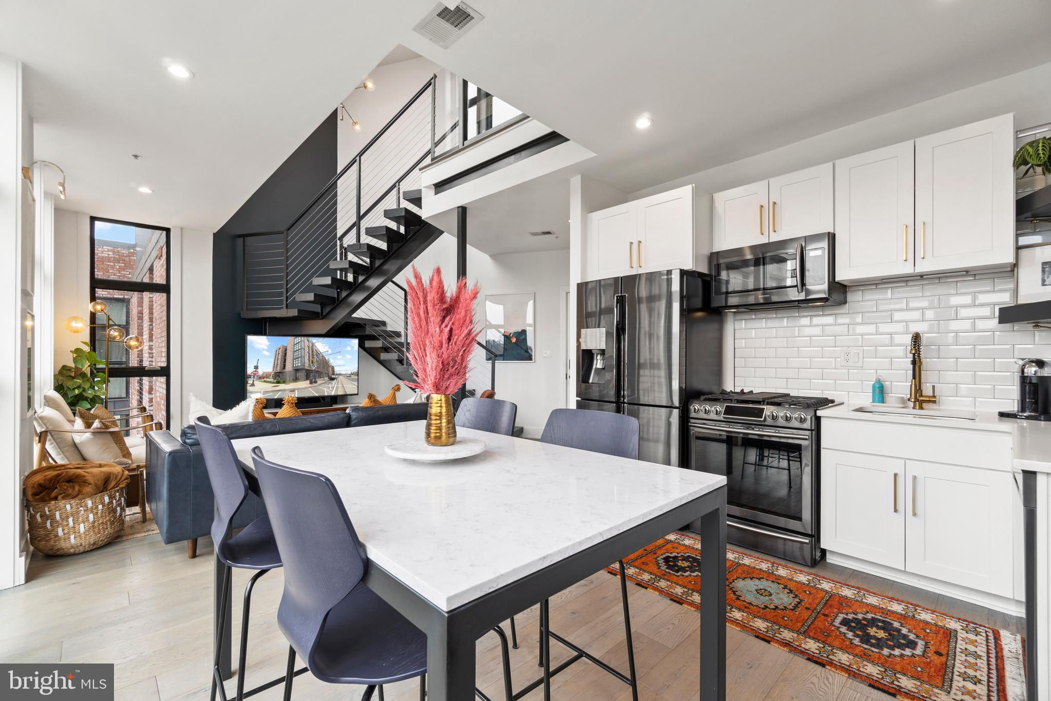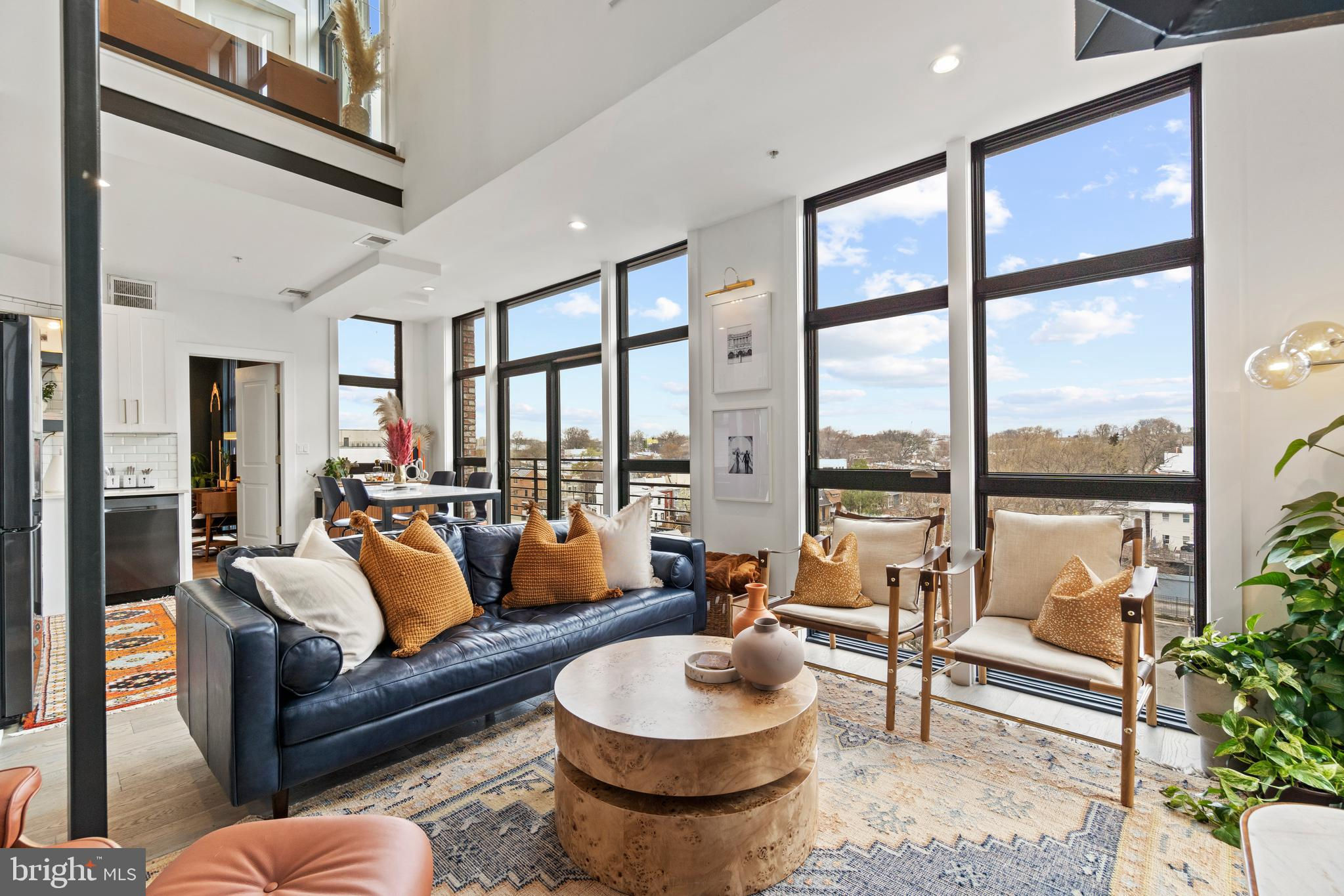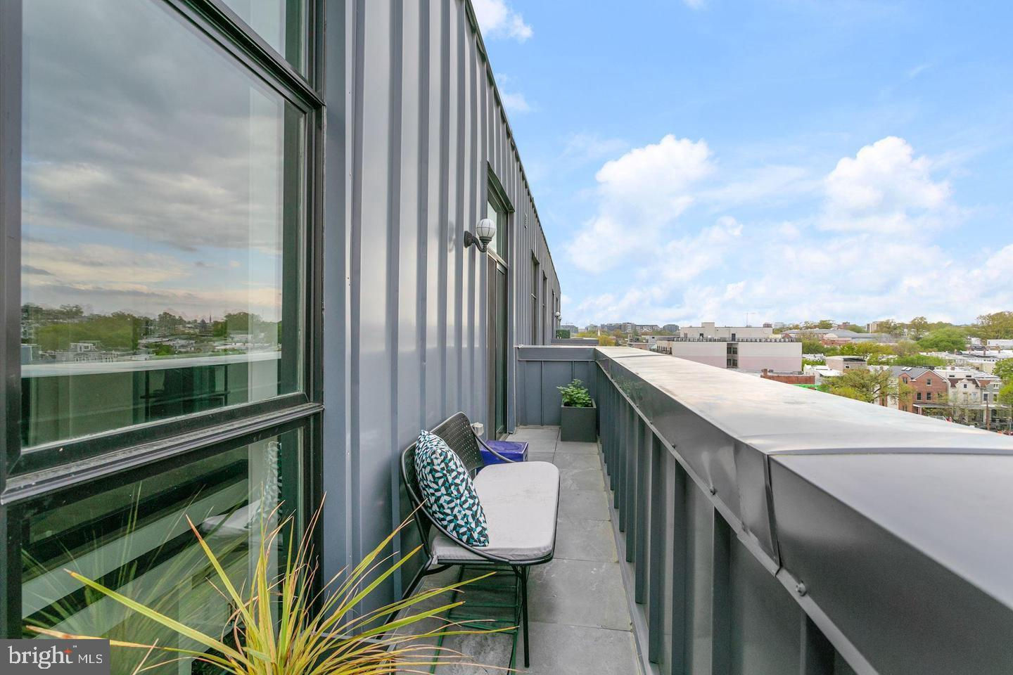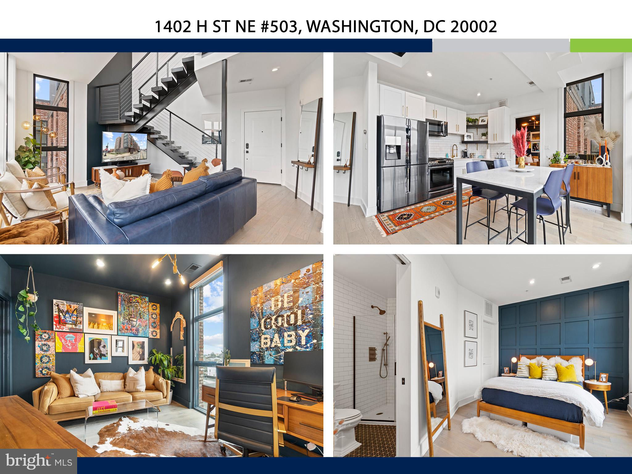 This showstopping two-bedroom penthouse with sweeping city views provides almost 1,300 square feet of sophisticated living space across two spacious floors. Punctuated with sleek luxurious finishes, the bright and airy living spaces are perfect for entertaining and living life to the fullest. Since purchasing, the owner has spent over $20,000 in high-end updates that differentiate this from the usual new construction build. You will love the floor to ceiling windows, modern black floating staircase, glass railings, 20-ft ceilings, and brilliant natural light that pours in from sunrise to sunset. Upon entering, gleaming hardwood floors lead into the ultra-modern, magazine-worthy living space. The open kitchen boasts white shaker cabinetry, white subway tile backsplash, black Samsung appliances, gold hardware, and floating shelves. Completing the main level is one of two bedrooms, which includes custom closets, soundproof insulated windows, recessed lights, high ceilings, chic paint, and an ensuite bathroom. Both the upper and lower bathrooms have recently been upgraded with fogless, dimmable LED mirrors and have glamorous floating vanities and subway tile showers. Upstairs, you will find a primary suite, bonus loft area, laundry room, and access to the private balcony. The gorgeous primary bedroom is complete with a newly installed board and batten accent wall, soundproof windows, huge custom closet space, Hunter Douglas blackout shades, and a spacious primary bathroom. Just off the bedroom is the loft area, which overlooks the two-story living room and is perfect for a home office or workout room. Step outside to your private outdoor terrace and enjoy your morning coffee, an afternoon drink, some fresh air, or perhaps put down turf for your furry friends! This unit comes equipped as a Google smart home and with an integrated Nest keypad lock, thermostat, and smoke detectors. With a location in the heart of the spirited and chic H Street Corridor, access to other sought-after neighborhoods, like Union Market, NoMa, and Capitol Hill, is simplified. Walk to local coffee shops, restaurants, Whole Foods, multiple metro stations and bus lines. Life will be a breeze with everything at your fingertips and a stunning place to call home!