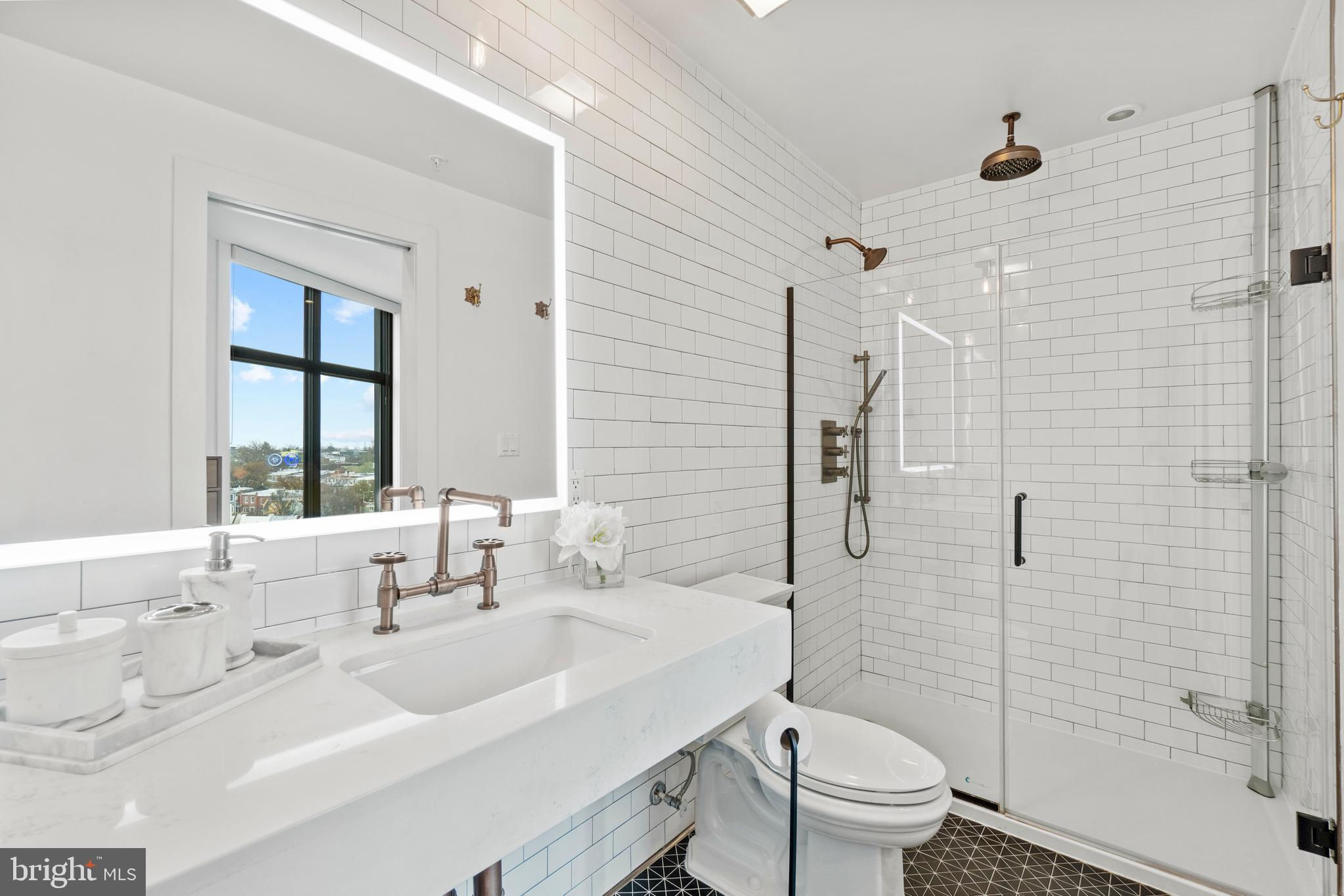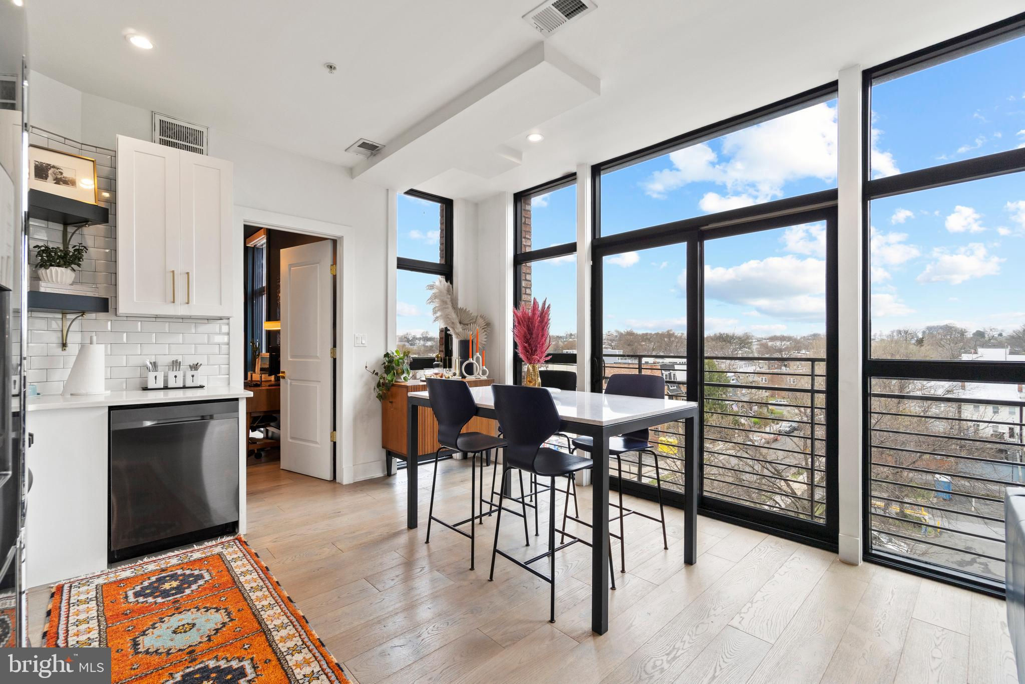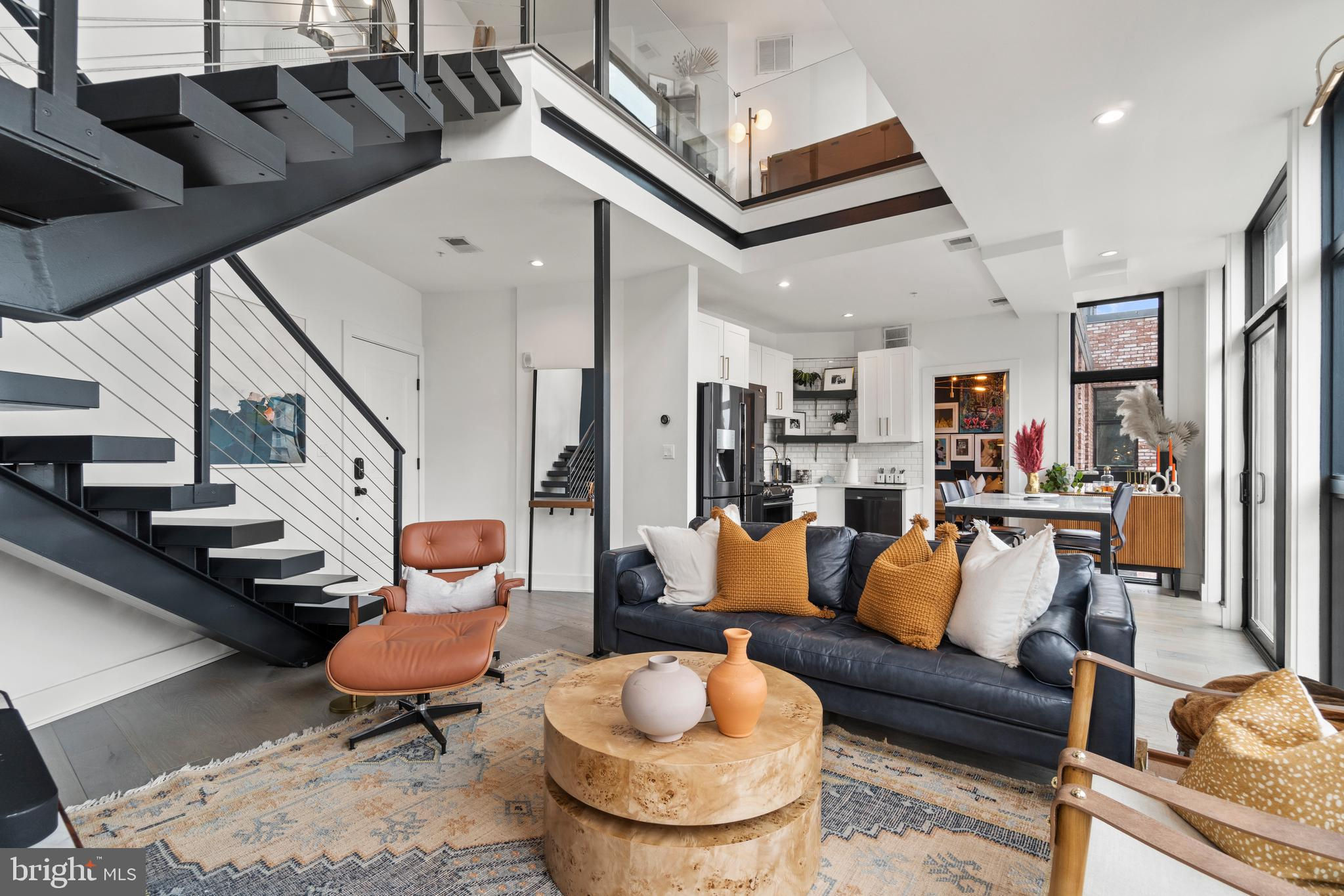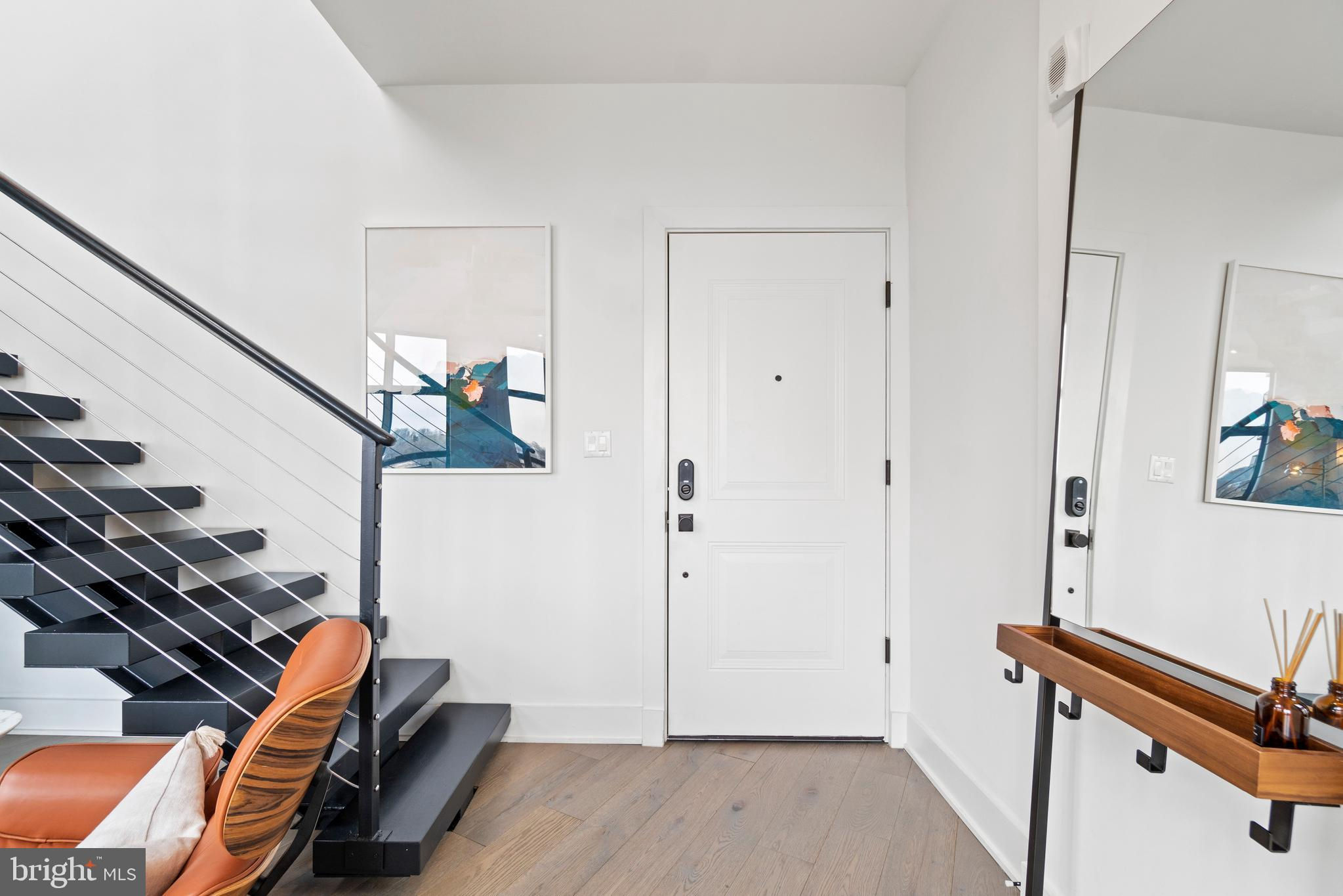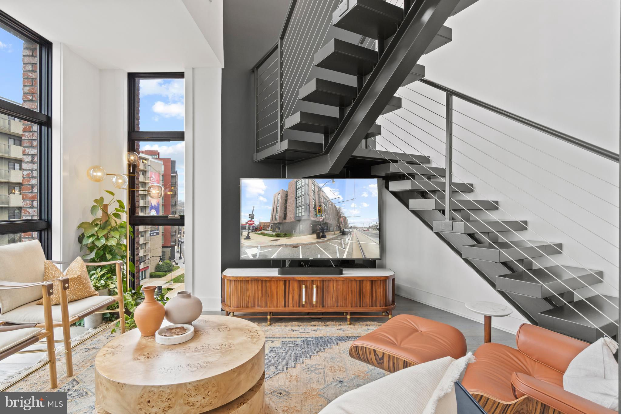 This showstopping two-bedroom penthouse with sweeping city views provides almost 1,300 square feet of sophisticated living space across two spacious floors. Punctuated with sleek luxurious finishes, the bright and airy living spaces are perfect for entertaining and living life to the fullest. Since purchasing, the owner has spent over $20,000 in high-end updates that differentiate this from the usual new construction build. You will love the floor to ceiling windows, modern black floating staircase, glass railings, 20-ft ceilings, and brilliant natural light that pours in from sunrise to sunset. Upon entering, gleaming hardwood floors lead into the ultra-modern, magazine-worthy living space. The open kitchen boasts white shaker cabinetry, white subway tile backsplash, black Samsung appliances, gold hardware, and floating shelves. Completing the main level is one of two bedrooms, which includes custom closets, soundproof insulated windows, recessed lights, high ceilings, chic paint, and an ensuite bathroom. Both the upper and lower bathrooms have recently been upgraded with fogless, dimmable LED mirrors and have glamorous floating vanities and subway tile showers. Upstairs, you will find a primary suite, bonus loft area, laundry room, and access to the private balcony. The gorgeous primary bedroom is complete with a newly installed board and batten accent wall, soundproof windows, huge custom closet space, Hunter Douglas blackout shades, and a spacious primary bathroom. Just off the bedroom is the loft area, which overlooks the two-story living room and is perfect for a home office or workout room. Step outside to your private outdoor terrace and enjoy your morning coffee, an afternoon drink, some fresh air, or perhaps put down turf for your furry friends! This unit comes equipped as a Google smart home and with an integrated Nest keypad lock, thermostat, and smoke detectors. With a location in the heart of the spirited and chic H Street Corridor, access to other sought-after neighborhoods, like Union Market, NoMa, and Capitol Hill, is simplified. Walk to local coffee shops, restaurants, Whole Foods, multiple metro stations and bus lines. Life will be a breeze with everything at your fingertips and a stunning place to call home!