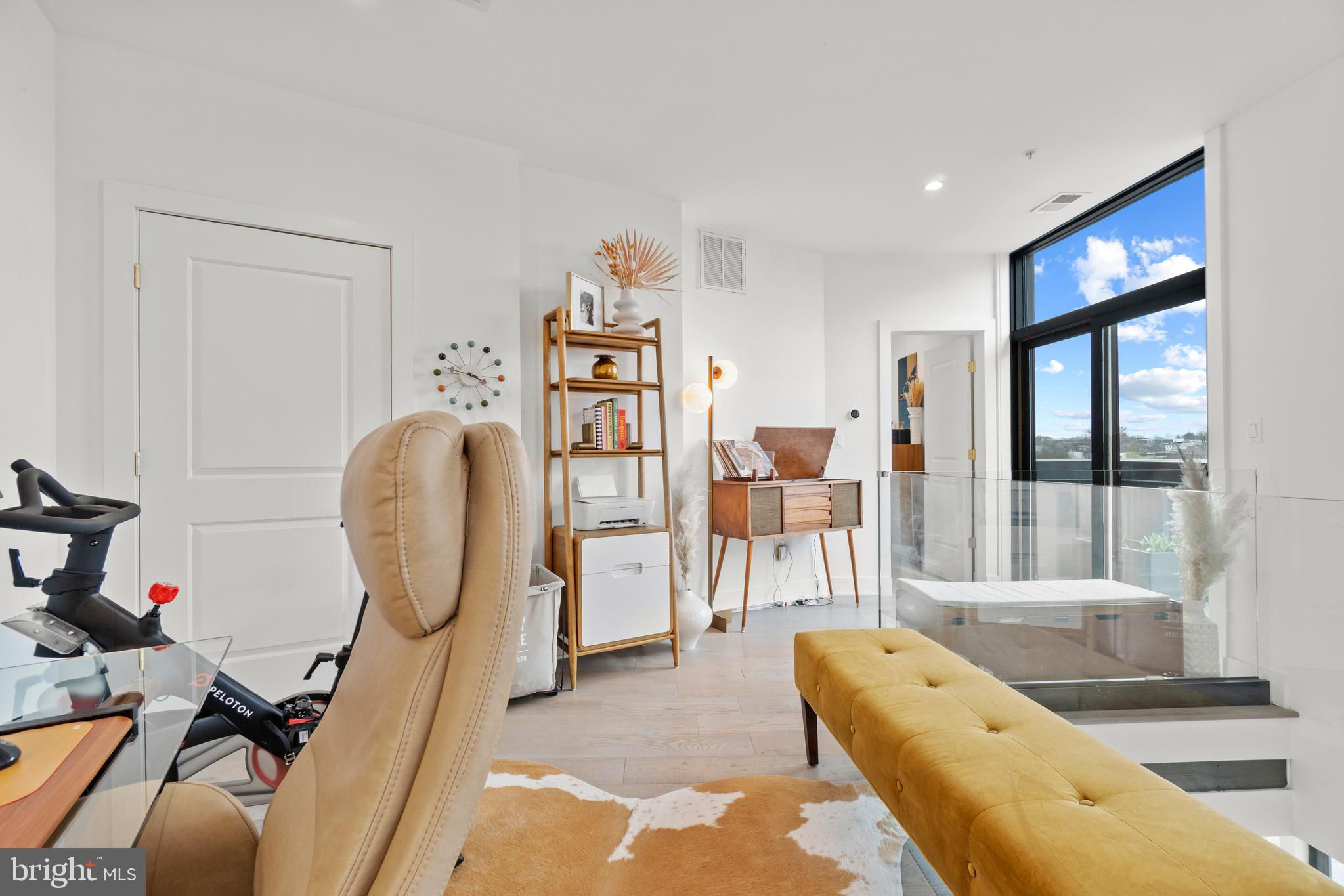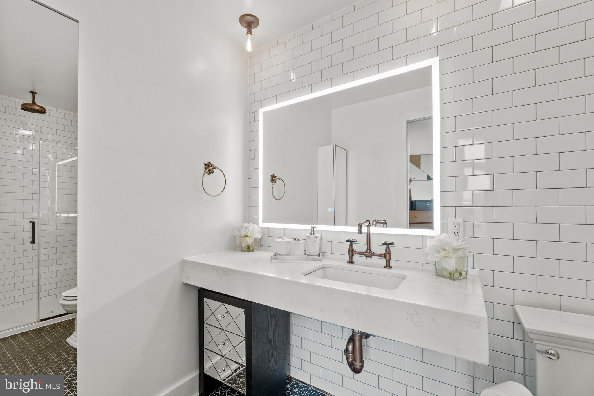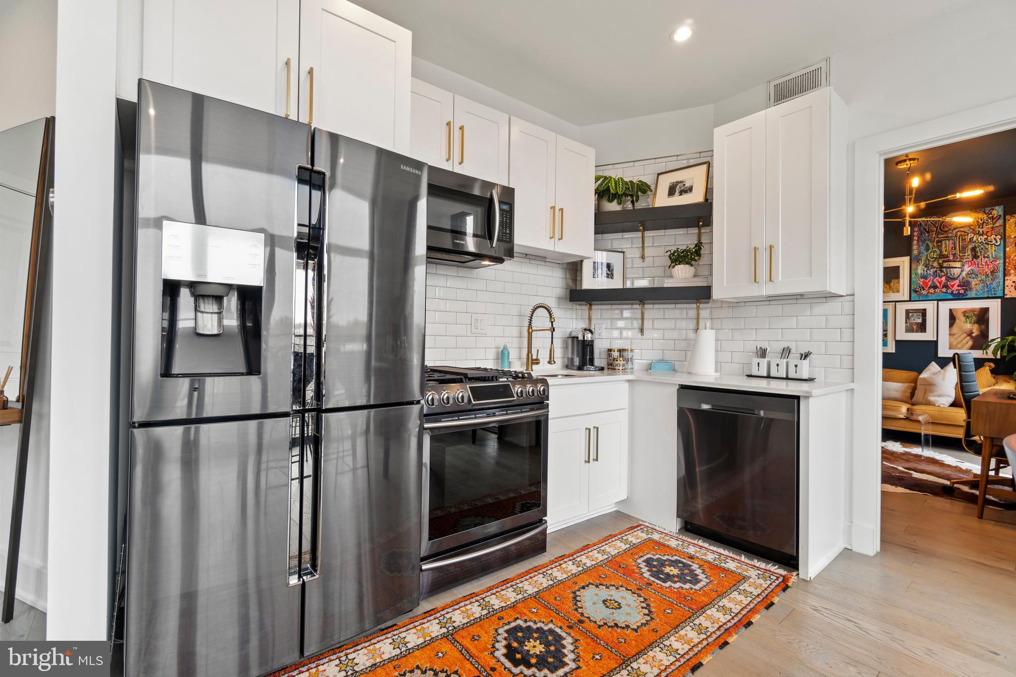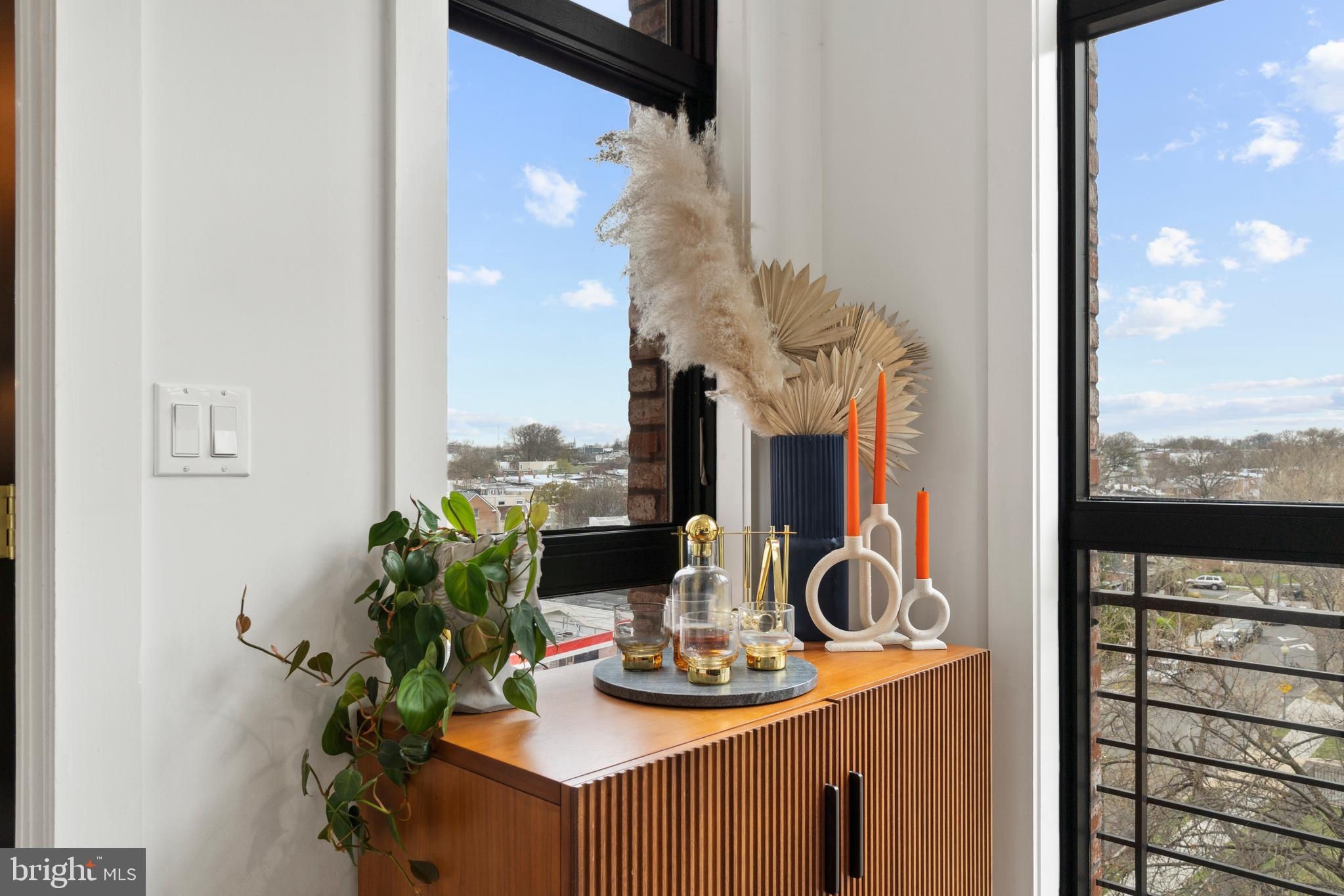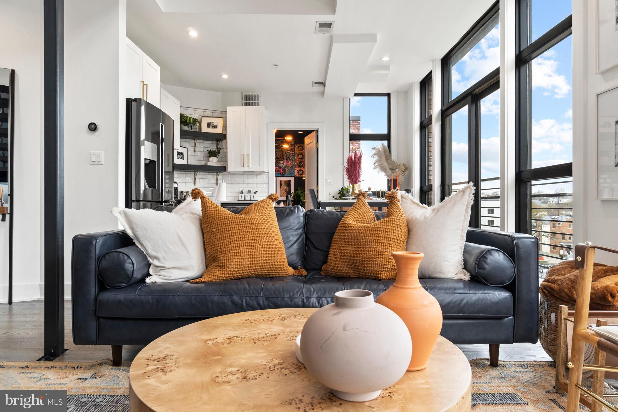 This showstopping two-bedroom penthouse with sweeping city views provides almost 1,300 square feet of sophisticated living space across two spacious floors. Punctuated with sleek luxurious finishes, the bright and airy living spaces are perfect for entertaining and living life to the fullest. Since purchasing, the owner has spent over $20,000 in high-end updates that differentiate this from the usual new construction build. You will love the floor to ceiling windows, modern black floating staircase, glass railings, 20-ft ceilings, and brilliant natural light that pours in from sunrise to sunset. Upon entering, gleaming hardwood floors lead into the ultra-modern, magazine-worthy living space. The open kitchen boasts white shaker cabinetry, white subway tile backsplash, black Samsung appliances, gold hardware, and floating shelves. Completing the main level is one of two bedrooms, which includes custom closets, soundproof insulated windows, recessed lights, high ceilings, chic paint, and an ensuite bathroom. Both the upper and lower bathrooms have recently been upgraded with fogless, dimmable LED mirrors and have glamorous floating vanities and subway tile showers. Upstairs, you will find a primary suite, bonus loft area, laundry room, and access to the private balcony. The gorgeous primary bedroom is complete with a newly installed board and batten accent wall, soundproof windows, huge custom closet space, Hunter Douglas blackout shades, and a spacious primary bathroom. Just off the bedroom is the loft area, which overlooks the two-story living room and is perfect for a home office or workout room. Step outside to your private outdoor terrace and enjoy your morning coffee, an afternoon drink, some fresh air, or perhaps put down turf for your furry friends! This unit comes equipped as a Google smart home and with an integrated Nest keypad lock, thermostat, and smoke detectors. With a location in the heart of the spirited and chic H Street Corridor, access to other sought-after neighborhoods, like Union Market, NoMa, and Capitol Hill, is simplified. Walk to local coffee shops, restaurants, Whole Foods, multiple metro stations and bus lines. Life will be a breeze with everything at your fingertips and a stunning place to call home!