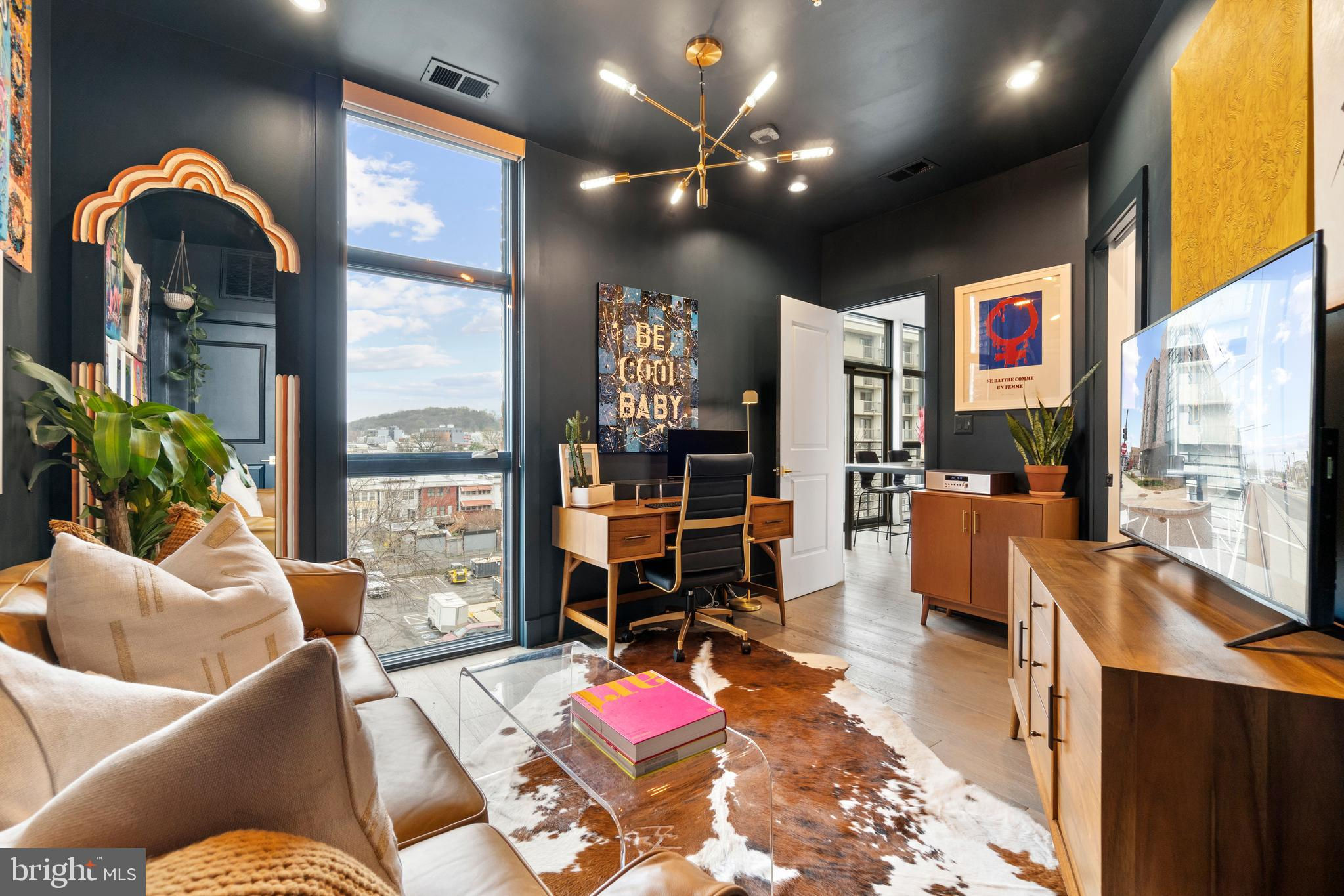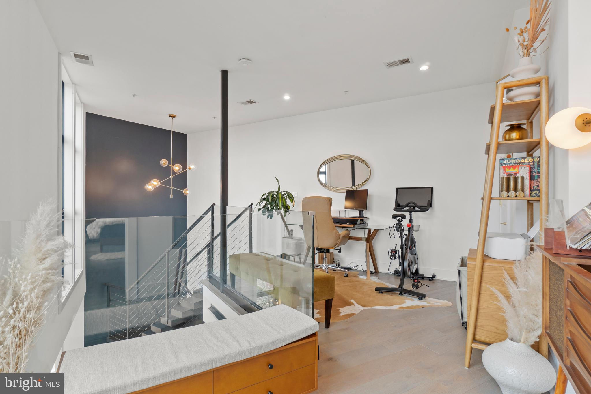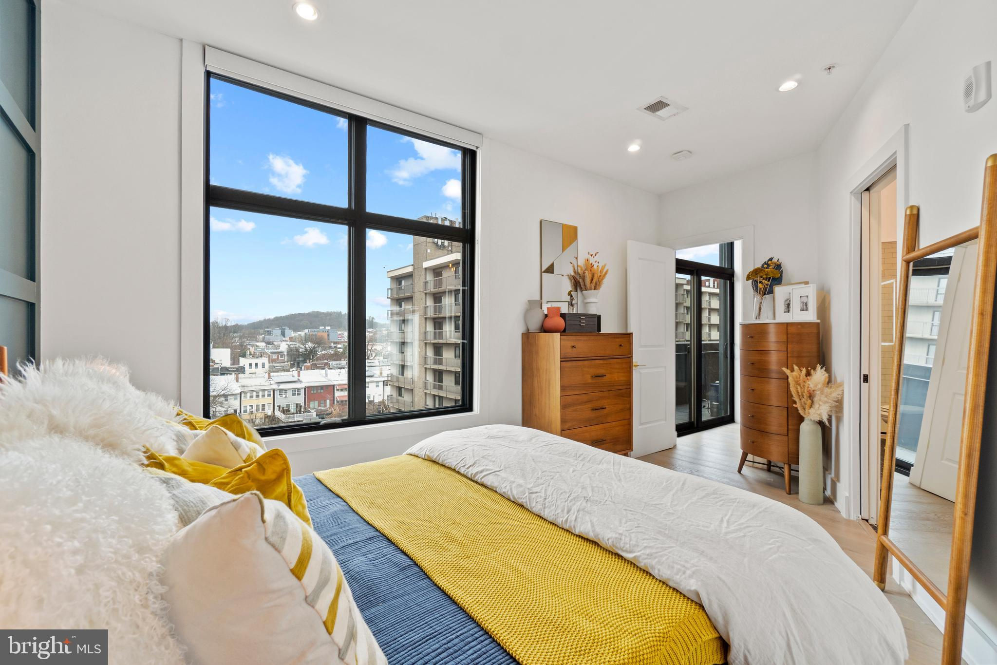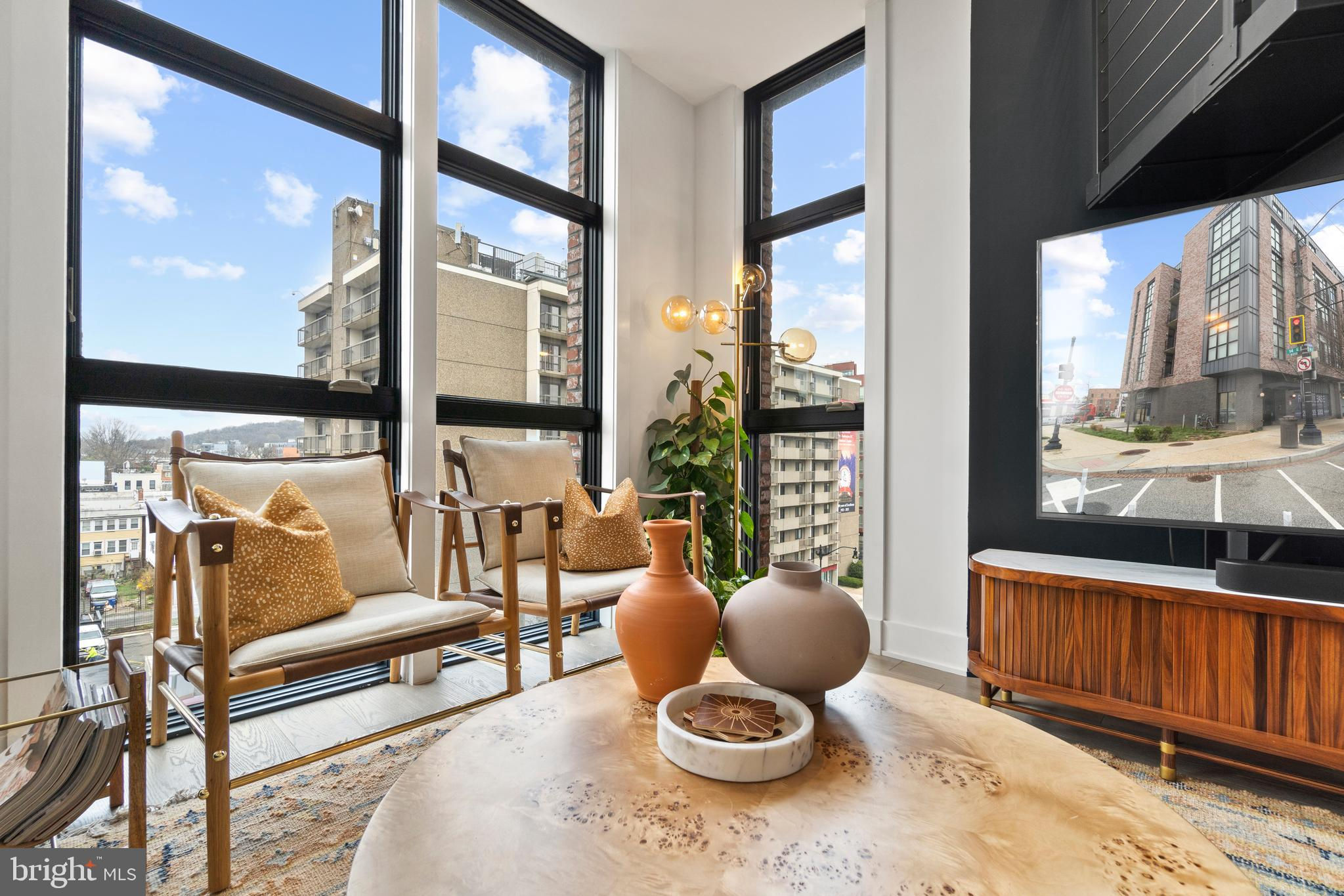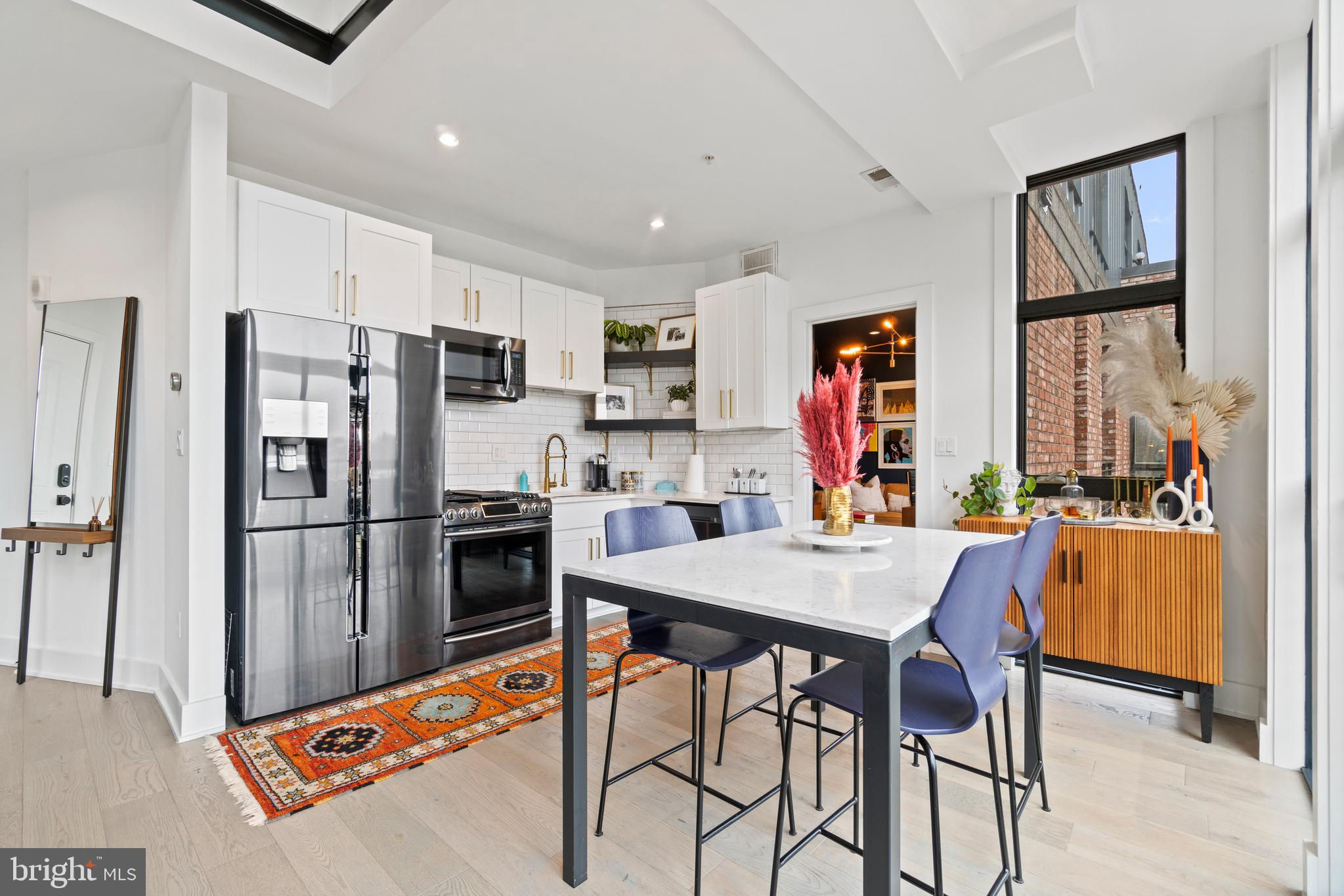 This showstopping two-bedroom penthouse with sweeping city views provides almost 1,300 square feet of sophisticated living space across two spacious floors. Punctuated with sleek luxurious finishes, the bright and airy living spaces are perfect for entertaining and living life to the fullest. Since purchasing, the owner has spent over $20,000 in high-end updates that differentiate this from the usual new construction build. You will love the floor to ceiling windows, modern black floating staircase, glass railings, 20-ft ceilings, and brilliant natural light that pours in from sunrise to sunset. Upon entering, gleaming hardwood floors lead into the ultra-modern, magazine-worthy living space. The open kitchen boasts white shaker cabinetry, white subway tile backsplash, black Samsung appliances, gold hardware, and floating shelves. Completing the main level is one of two bedrooms, which includes custom closets, soundproof insulated windows, recessed lights, high ceilings, chic paint, and an ensuite bathroom. Both the upper and lower bathrooms have recently been upgraded with fogless, dimmable LED mirrors and have glamorous floating vanities and subway tile showers. Upstairs, you will find a primary suite, bonus loft area, laundry room, and access to the private balcony. The gorgeous primary bedroom is complete with a newly installed board and batten accent wall, soundproof windows, huge custom closet space, Hunter Douglas blackout shades, and a spacious primary bathroom. Just off the bedroom is the loft area, which overlooks the two-story living room and is perfect for a home office or workout room. Step outside to your private outdoor terrace and enjoy your morning coffee, an afternoon drink, some fresh air, or perhaps put down turf for your furry friends! This unit comes equipped as a Google smart home and with an integrated Nest keypad lock, thermostat, and smoke detectors. With a location in the heart of the spirited and chic H Street Corridor, access to other sought-after neighborhoods, like Union Market, NoMa, and Capitol Hill, is simplified. Walk to local coffee shops, restaurants, Whole Foods, multiple metro stations and bus lines. Life will be a breeze with everything at your fingertips and a stunning place to call home!