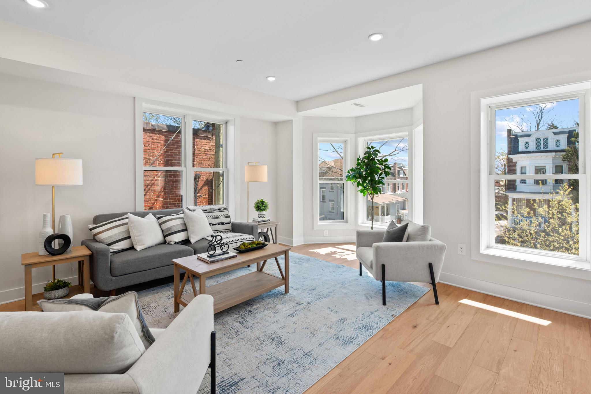 Be stunned by this 1,920sf three-bedroom, three-bathroom penthouse with its own private entrance! Bonus are THREE private decks (soaring roof deck PLUS two decks. The expansive living room with bay windows, open dining room and endless quartz kitchen island beckons entertaining and lingering. On the main floor is the first of 3 bedrooms, perfect for a media gathering room or an office. All three bedroom have their own ensuite bathrooms! The primary bedroom has a private deck and a walk-in closet. The roof deck is a top-of-world sanctuary with panoramic city views. At east is the block of 14th St NW undergoing infusion of new retail spaces and at west are 16th St NW, Rock Creek Park, Carter Barron Soccer Center and Rock Creek Tennis Center. The location is short mintues to 14th St NW Metro and retail amenities.