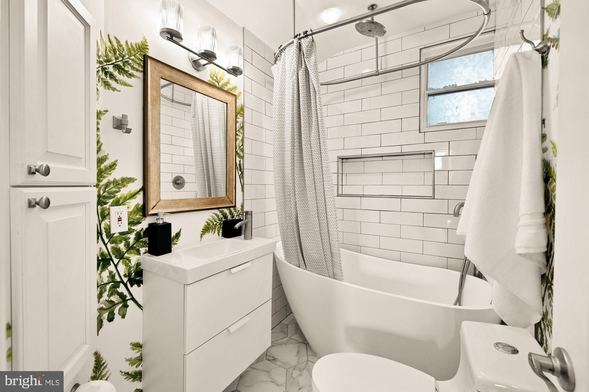 *** OPEN HOUSE Sunday Nov 16th 1-3 pm *** Perched on a gentle hill in the heart of beautiful Brookland is this tastefully renovated 4BD/3.5BA brick home just a short walk from the Brookland-CUA Metro station. There’s a delightful flow to the open first floor, where rich floors guide you through two sitting rooms (including one with a fireplace), an elegant dining room, and a masterful kitchen complete with spacious island and SS appliances. In back is a family room overlooking a private, fenced-in backyard. The heart of the upper level is undoubtedly the tree-top-level deck, where views of the neighborhood invite you to relax and pretend for a moment as if you’re in a private treehouse. The upper level also hosts three bedrooms, one of which is an elegant primary bedroom with lofty ceilings, dual walk-in closets, sitting area, and en-suite bathroom. A fourth bedroom—plus separate entrance and full bathroom—transforms the finished basement into the perfect in-law suite. At 1406 Lawrence Street NE, you can walk to everything Brookland has to offer, from everyday amenities like CVS and Trader Joe’s to acclaimed restaurants like Primrose and Menomale. Plus, be on the Red Line and the Met Branch Trail in minutes. (When you can pull yourself away from the incredible second-floor deck, that is.)