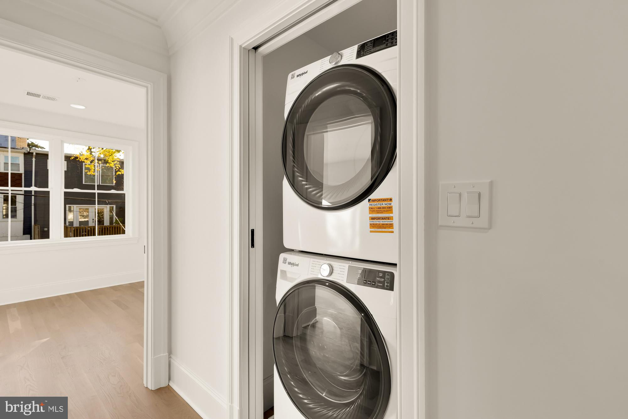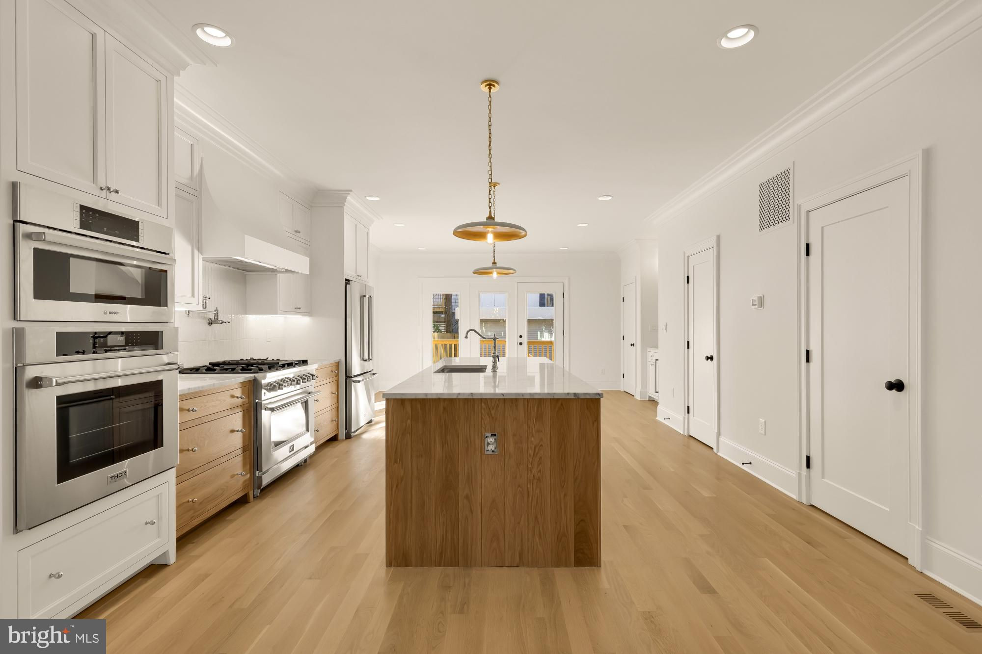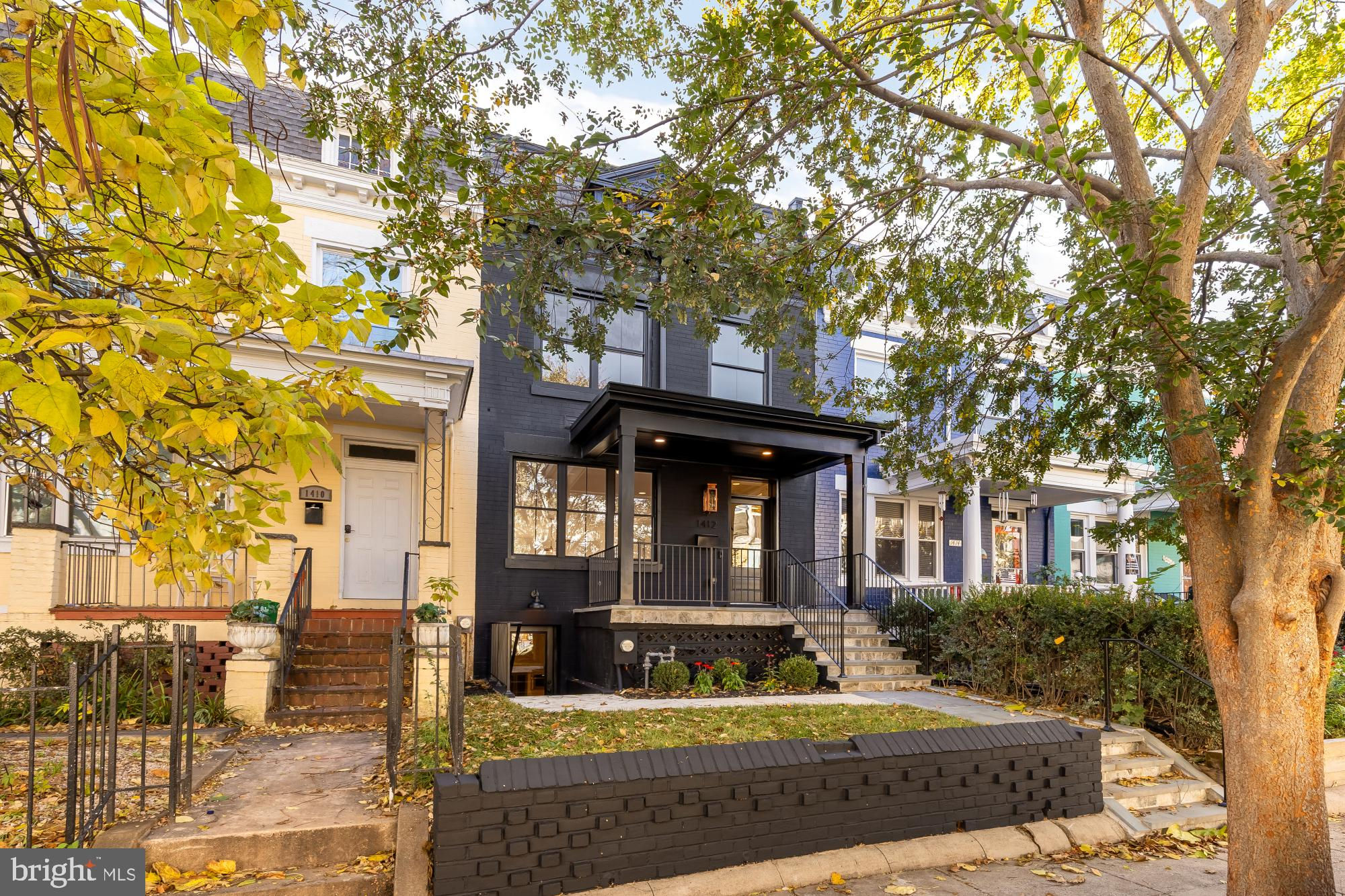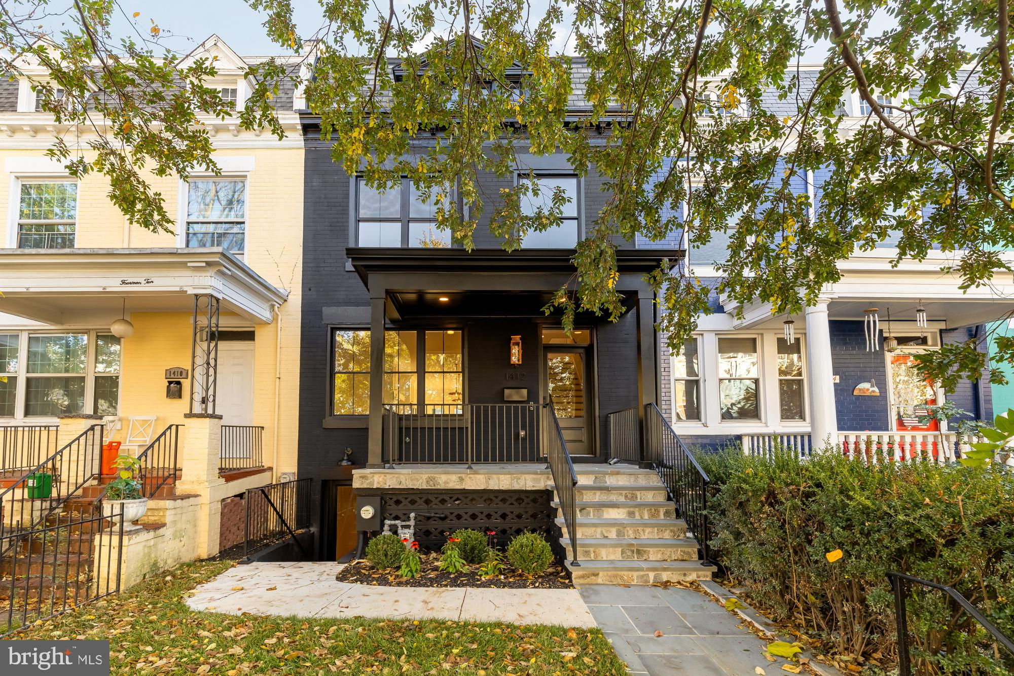 Welcome to 1412 Perry Place NW, an Urban Restoration masterpiece, situated on a leafy, tree-lined street with sidewalks in vibrant Columbia Heights! This LARGE home boasts 4 bedroom, 3.5 bathroom and approximately 2,400 SF on 3 fully-finished levels and features only the finest materials and custom everything, plus incredible curb appeal! As you approach the home, you'll notice the beautiful stone steps leading the welcoming front porch, perfect for sitting and enjoying a refreshing drink! As you step inside, you'll notice the open floor plan, perfect for entertaining, the stunning white oak hardwood floors, the tall ceilings, and the abundant natural light that filters through the new Windows and LowE Therma-Tru doors. The gourmet kitchen features custom inset cabinets, marble countertops, large kitchen island wrapped in white oak, and polished nickel fixtures. High-end professional appliances include a dual fuel range, a wall oven, and 2 built-in microwaves! Just beyond the kitchen is the dining area featuring a dry bar with wine fridge and extra storage, and direct access to the large deck, providing a perfect flow for entertaining! The deck overlooks a private, secure 2-car parking pad with garage door! Finishing off the main level is a convenient powder room, perfect for guests! Upstairs, the large primary suite features TALL ceilings, a HUGE walk-in closet and a spa-like en-suite bath featuring a frameless glass shower door and a double vanity. There are 2 additional bedrooms upstairs, each of good size and with ample storage, and a full-size W/D finish off the upper level. The fully finished English basement with FRONT & REAR entrances features a bedroom, full bath plus W/D hook-up! GREAT LOCATION! You're just moments to the shops and eateries along 14th st NW, and Columbia Heights, Adams Morgan, and Downtown DC! EZ Commute less than a half mile away from 2 Metro stations and near major commuter routes, too! Don't miss your opportunity to own this truly stunning home in a most enviable location. Welcome Home!