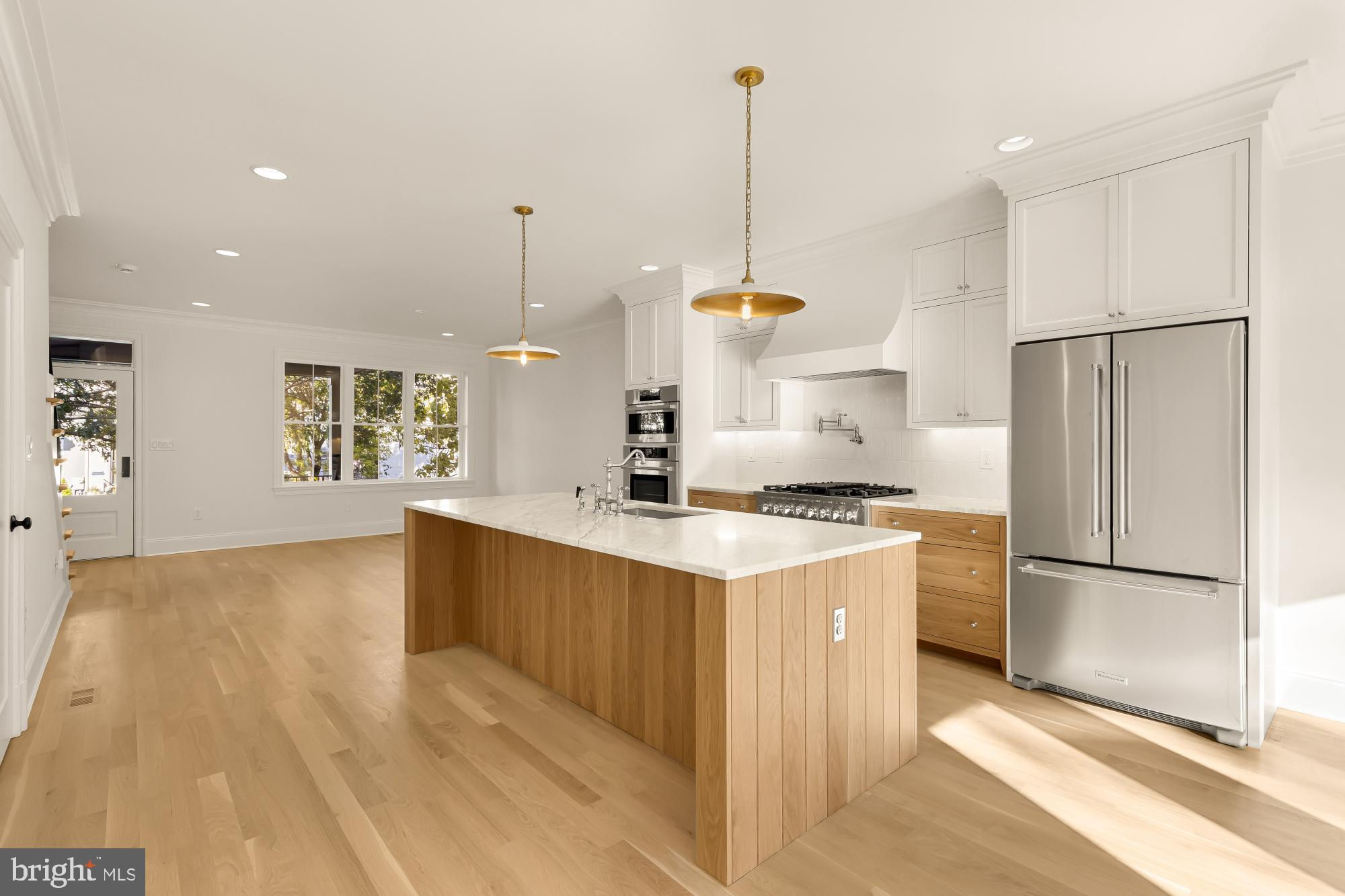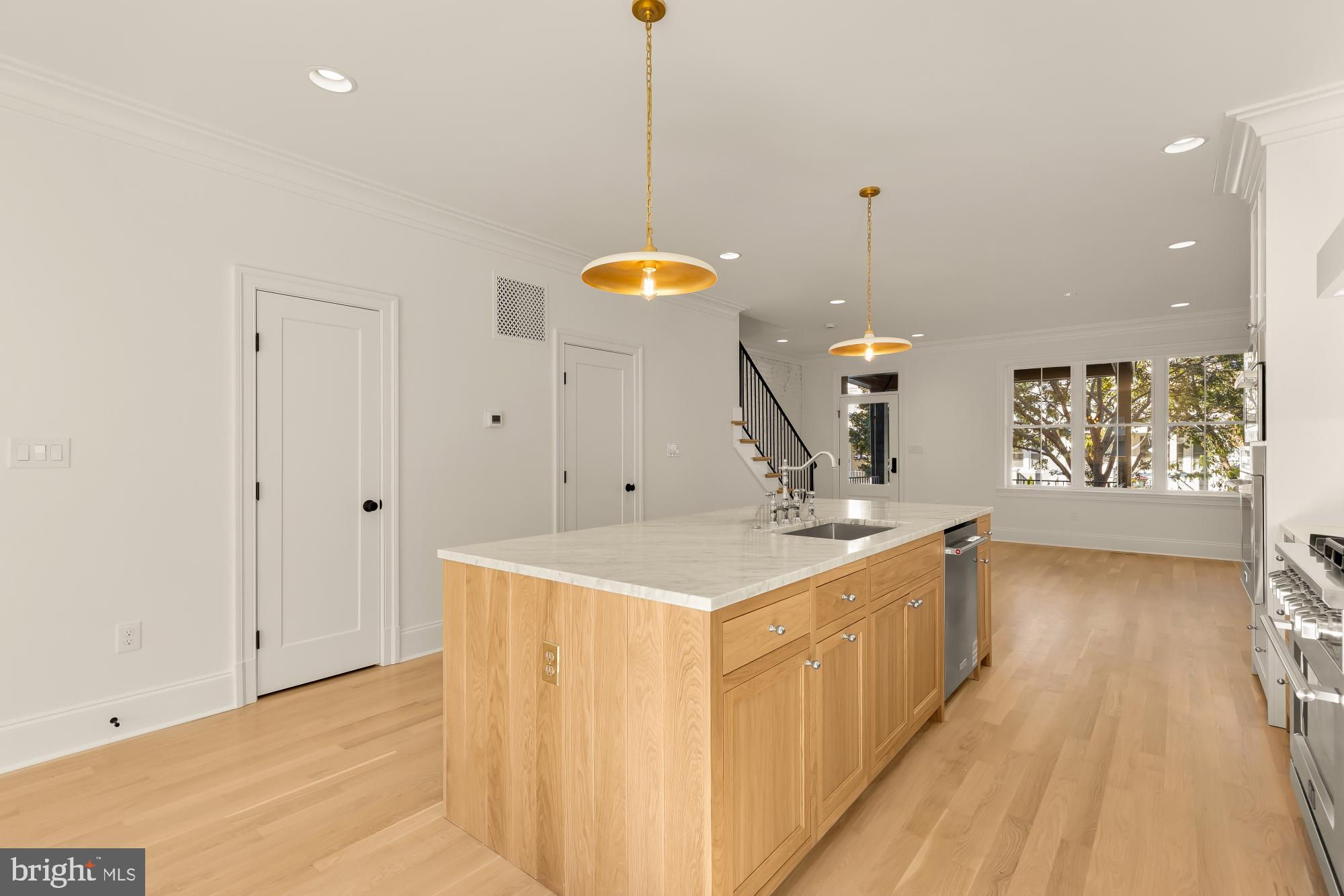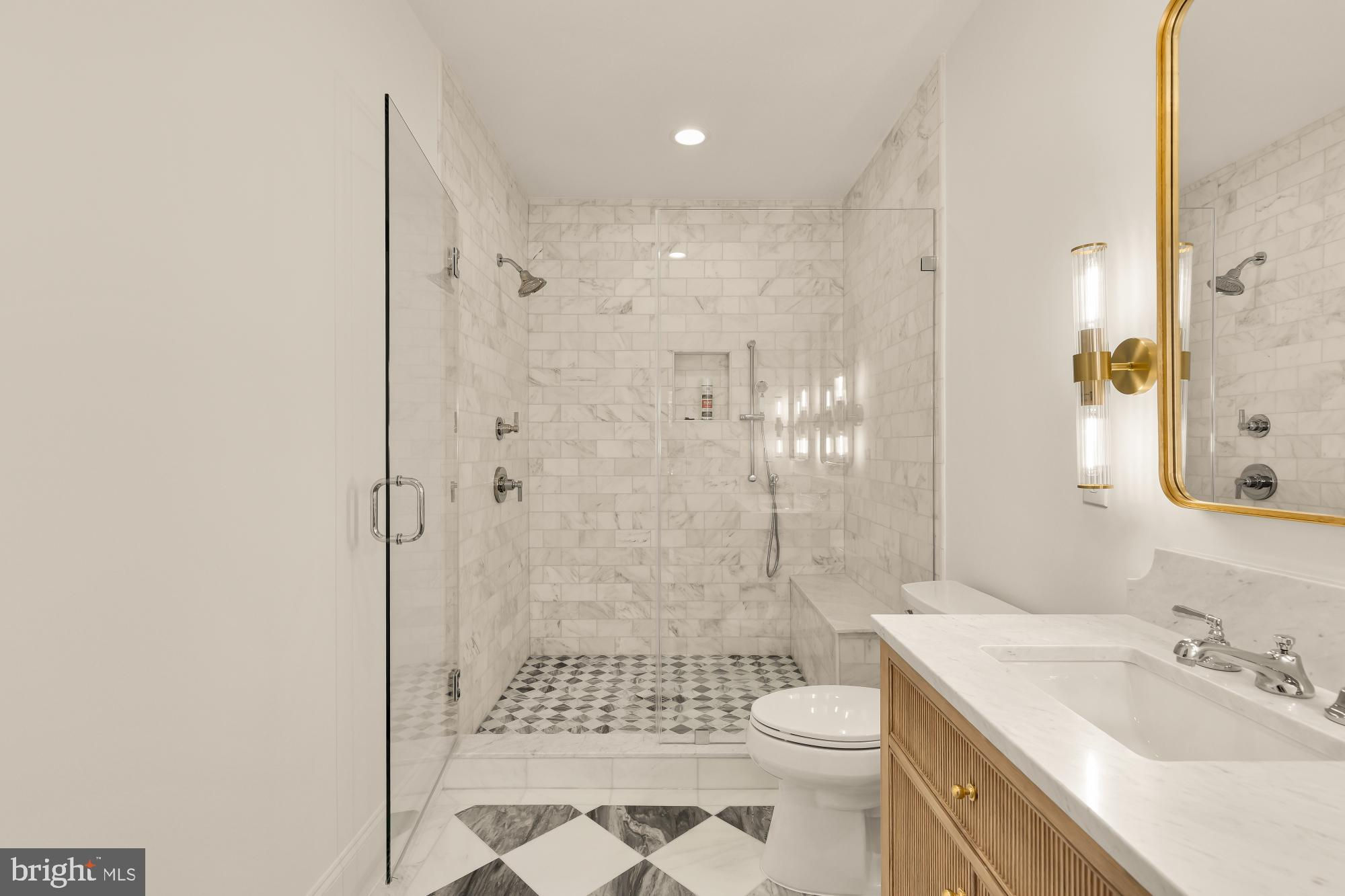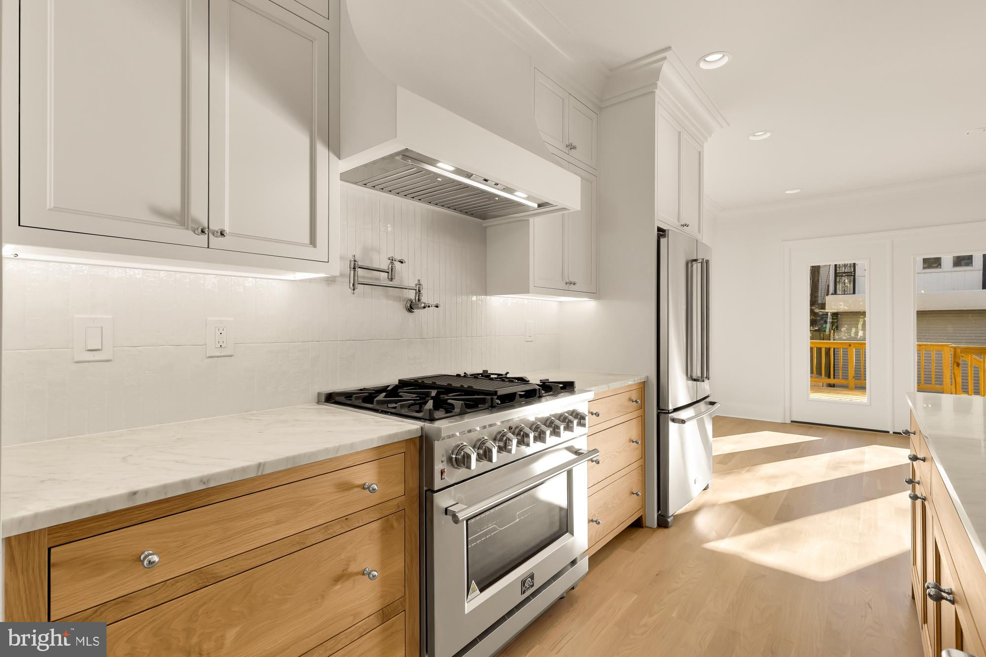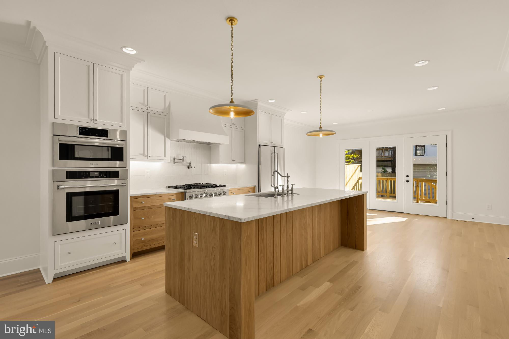 Welcome to 1412 Perry Place NW, an Urban Restoration masterpiece, situated on a leafy, tree-lined street with sidewalks in vibrant Columbia Heights! This LARGE home boasts 4 bedroom, 3.5 bathroom and approximately 2,400 SF on 3 fully-finished levels and features only the finest materials and custom everything, plus incredible curb appeal! As you approach the home, you'll notice the beautiful stone steps leading the welcoming front porch, perfect for sitting and enjoying a refreshing drink! As you step inside, you'll notice the open floor plan, perfect for entertaining, the stunning white oak hardwood floors, the tall ceilings, and the abundant natural light that filters through the new Windows and LowE Therma-Tru doors. The gourmet kitchen features custom inset cabinets, marble countertops, large kitchen island wrapped in white oak, and polished nickel fixtures. High-end professional appliances include a dual fuel range, a wall oven, and 2 built-in microwaves! Just beyond the kitchen is the dining area featuring a dry bar with wine fridge and extra storage, and direct access to the large deck, providing a perfect flow for entertaining! The deck overlooks a private, secure 2-car parking pad with garage door! Finishing off the main level is a convenient powder room, perfect for guests! Upstairs, the large primary suite features TALL ceilings, a HUGE walk-in closet and a spa-like en-suite bath featuring a frameless glass shower door and a double vanity. There are 2 additional bedrooms upstairs, each of good size and with ample storage, and a full-size W/D finish off the upper level. The fully finished English basement with FRONT & REAR entrances features a bedroom, full bath plus W/D hook-up! GREAT LOCATION! You're just moments to the shops and eateries along 14th st NW, and Columbia Heights, Adams Morgan, and Downtown DC! EZ Commute less than a half mile away from 2 Metro stations and near major commuter routes, too! Don't miss your opportunity to own this truly stunning home in a most enviable location. Welcome Home!