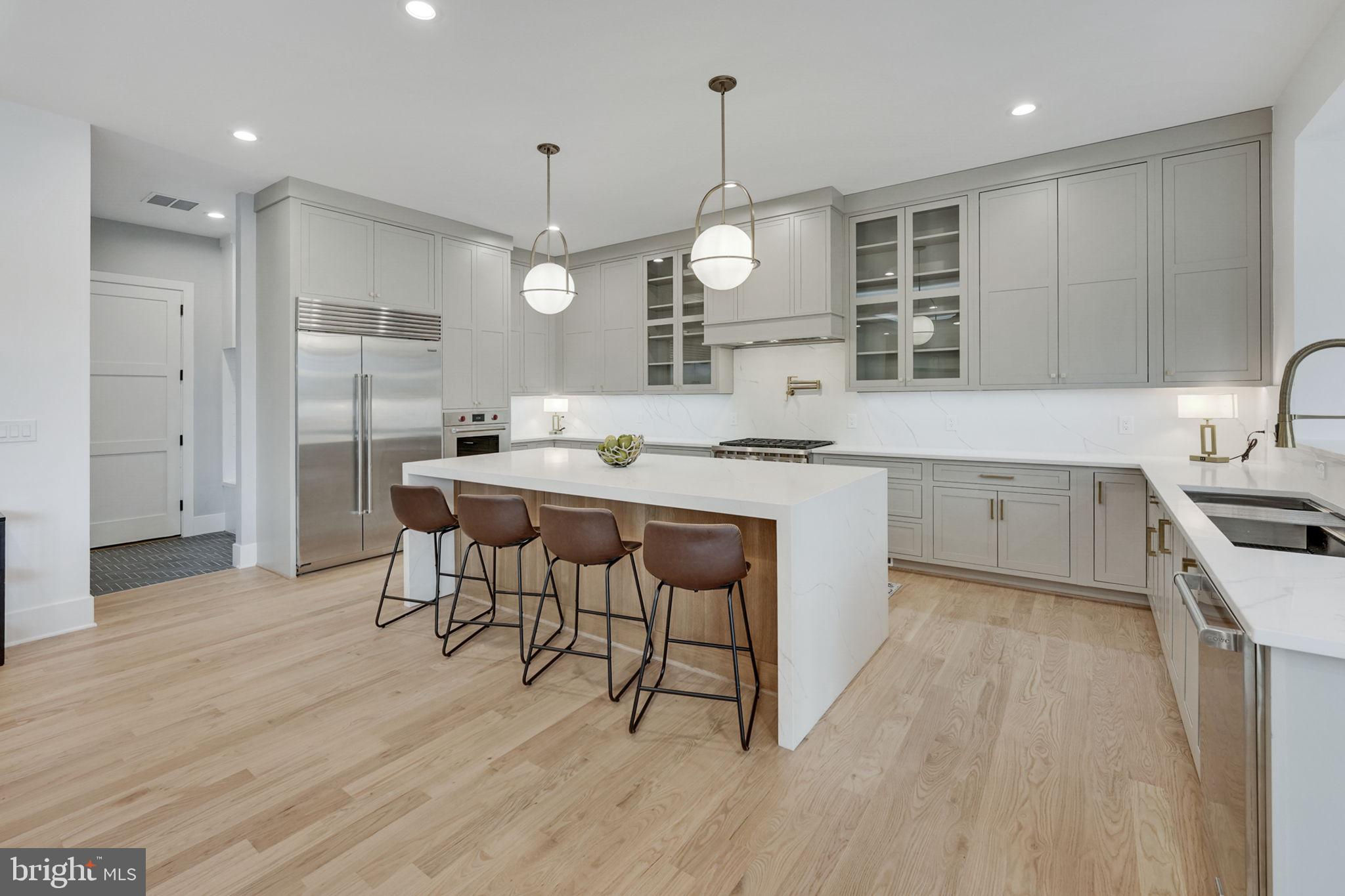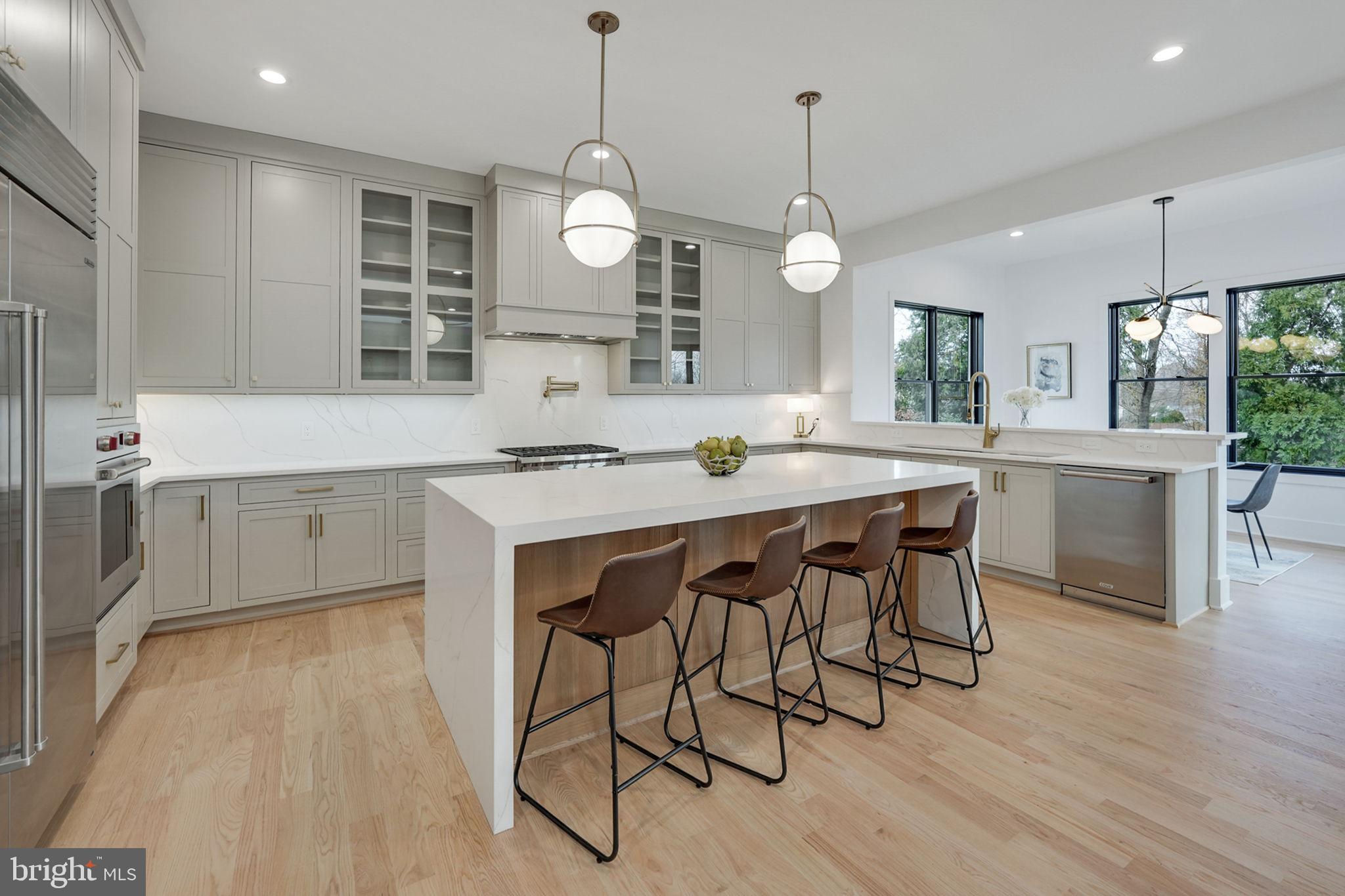 Just completed, this home is waiting for you! This nearly 7,000 sq ft home by YR Design and Build has 7 Bedrooms, all with their own private en-suite full bathroom, and 1 half bath. The main level is spacious, with a formal living room and dining room at the front of the home, and a large kitchen and family room on the back of the house. A main level bedroom with private bathroom makes this home very attractive. The added breakfast room and access to a large deck make the home so bright with two sliding doors and many windows on all sides. The island kitchen features a gourmet stainless suite of appliances from Wolf, SubZero and Cove, with a Ruvati Workstation sink and Kohler Faucet. The designer touches like tray ceilings and custom trim are noted throughout, with additional luxurious touches included in the design like a butler's pantry and plentiful storage on all levels. The upper level has 4 bedrooms and 4 full bathrooms. The large primary bedroom on the rear of the home has a massive walk in closet with built-ins, leading to a spacious primary en-suite with soaking tub, enclosed shower, and dual vanities. The three other bedrooms are roomy and bright, each with spacious closets and private bathrooms. There is also a sitting area, as well as the laundry room for the home. The lower level of the home has a fully finished basement with a walk-up access to the rear yard. There is a wet bar with space for appliances and seating. There is a bedroom on this level with a private bathroom, as well as a gym room, rec room, mechanical room, and a full bathroom.