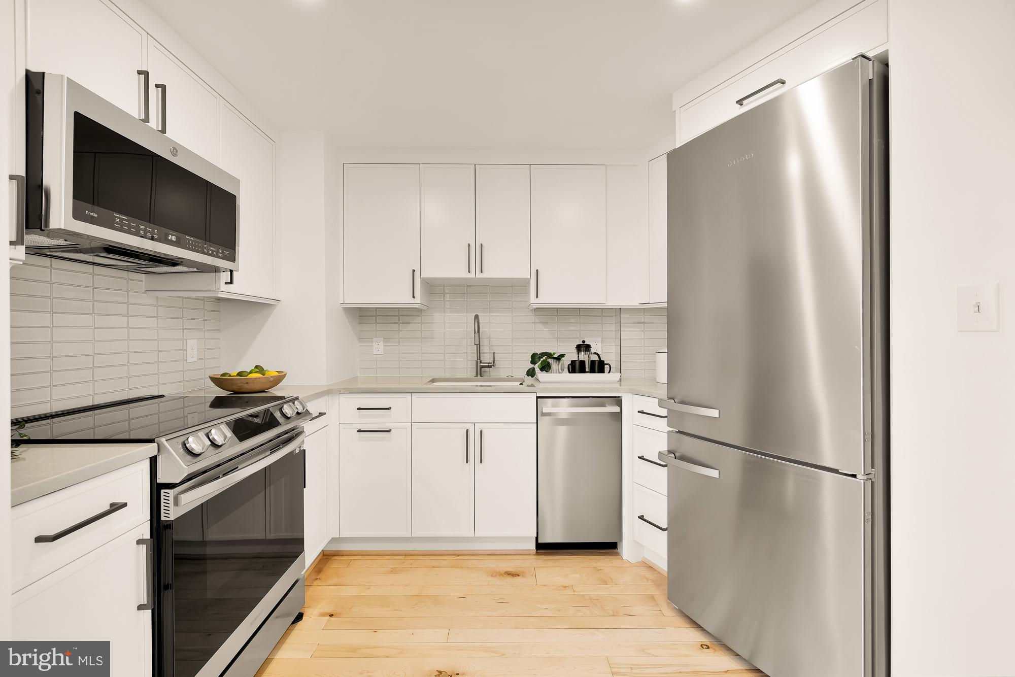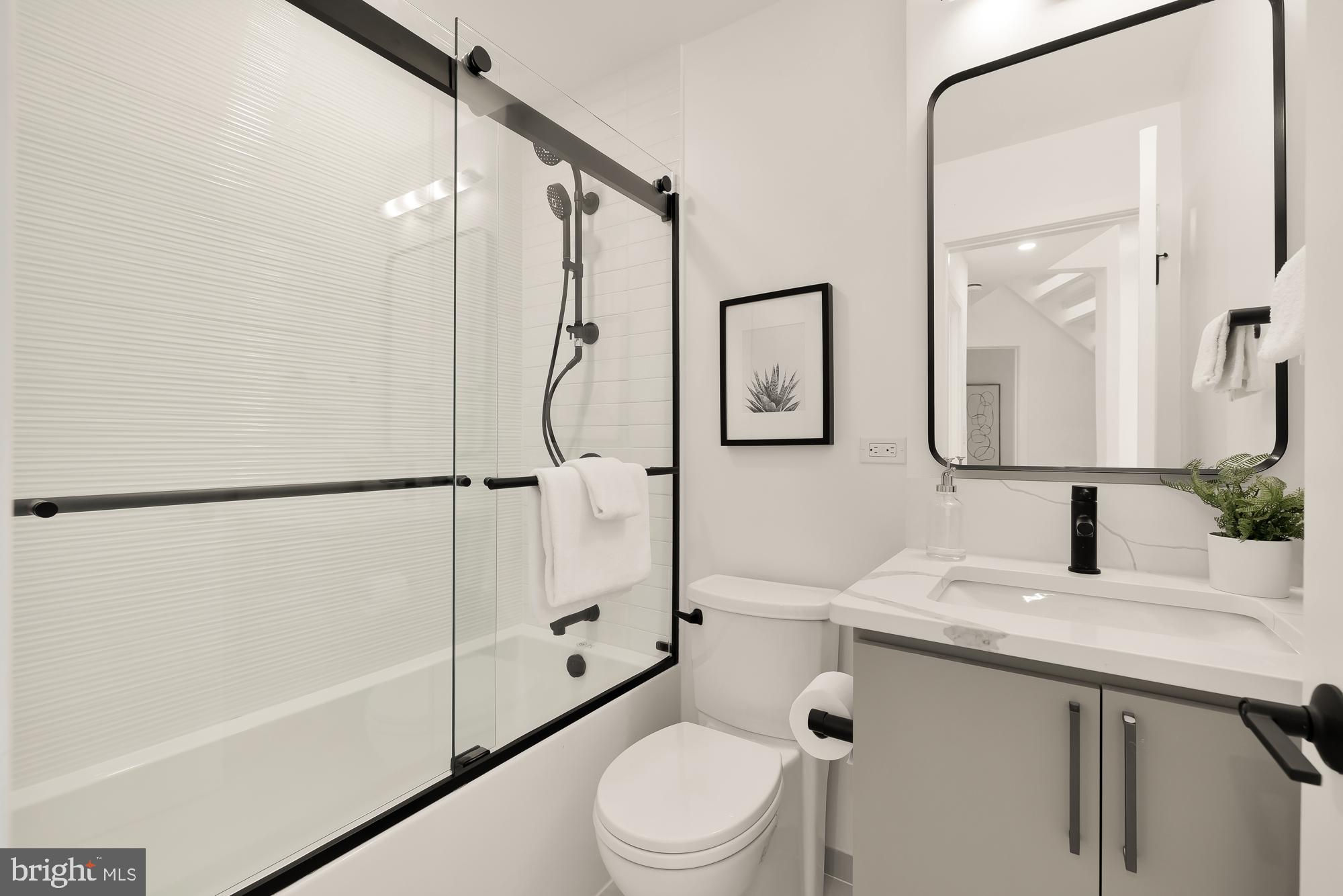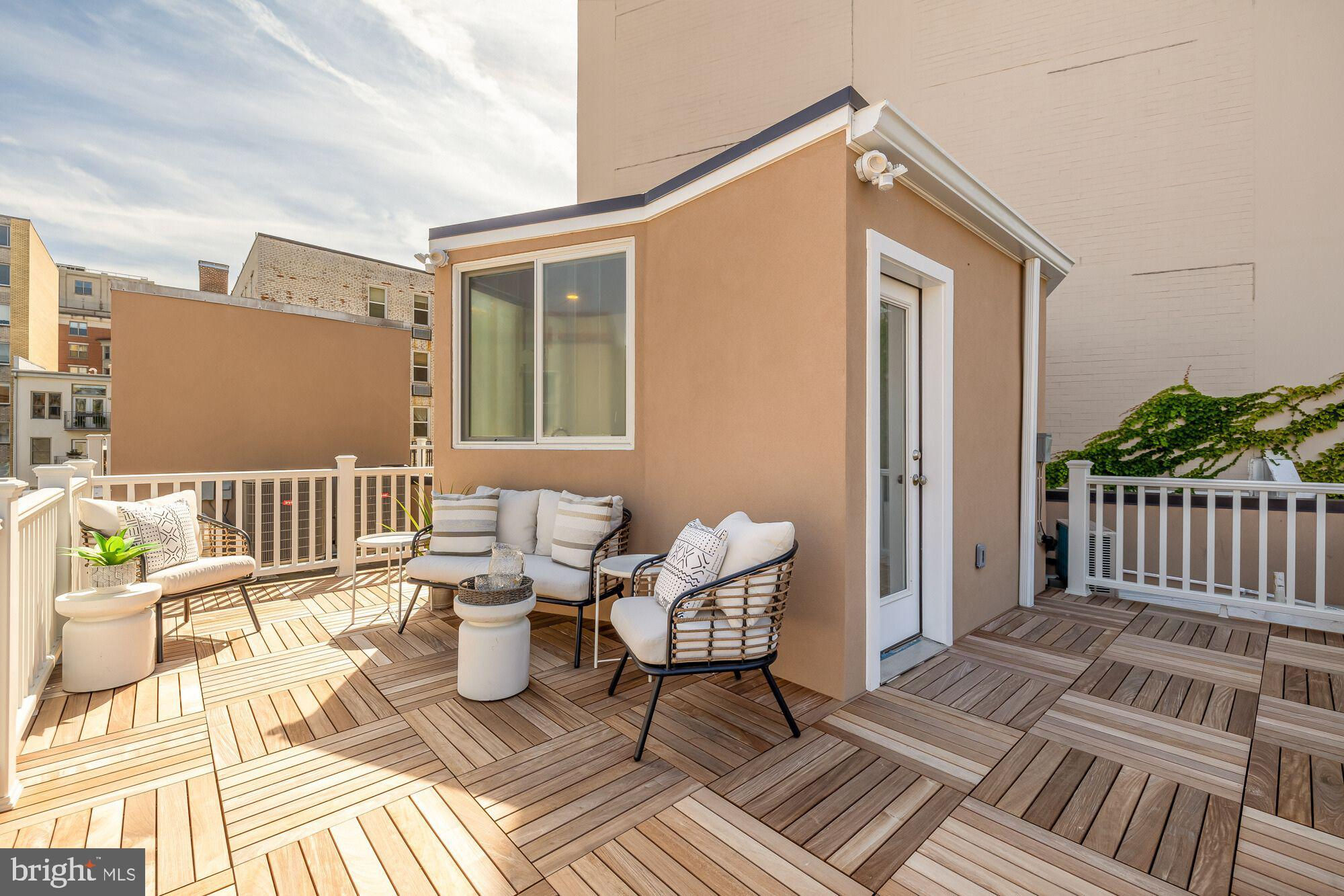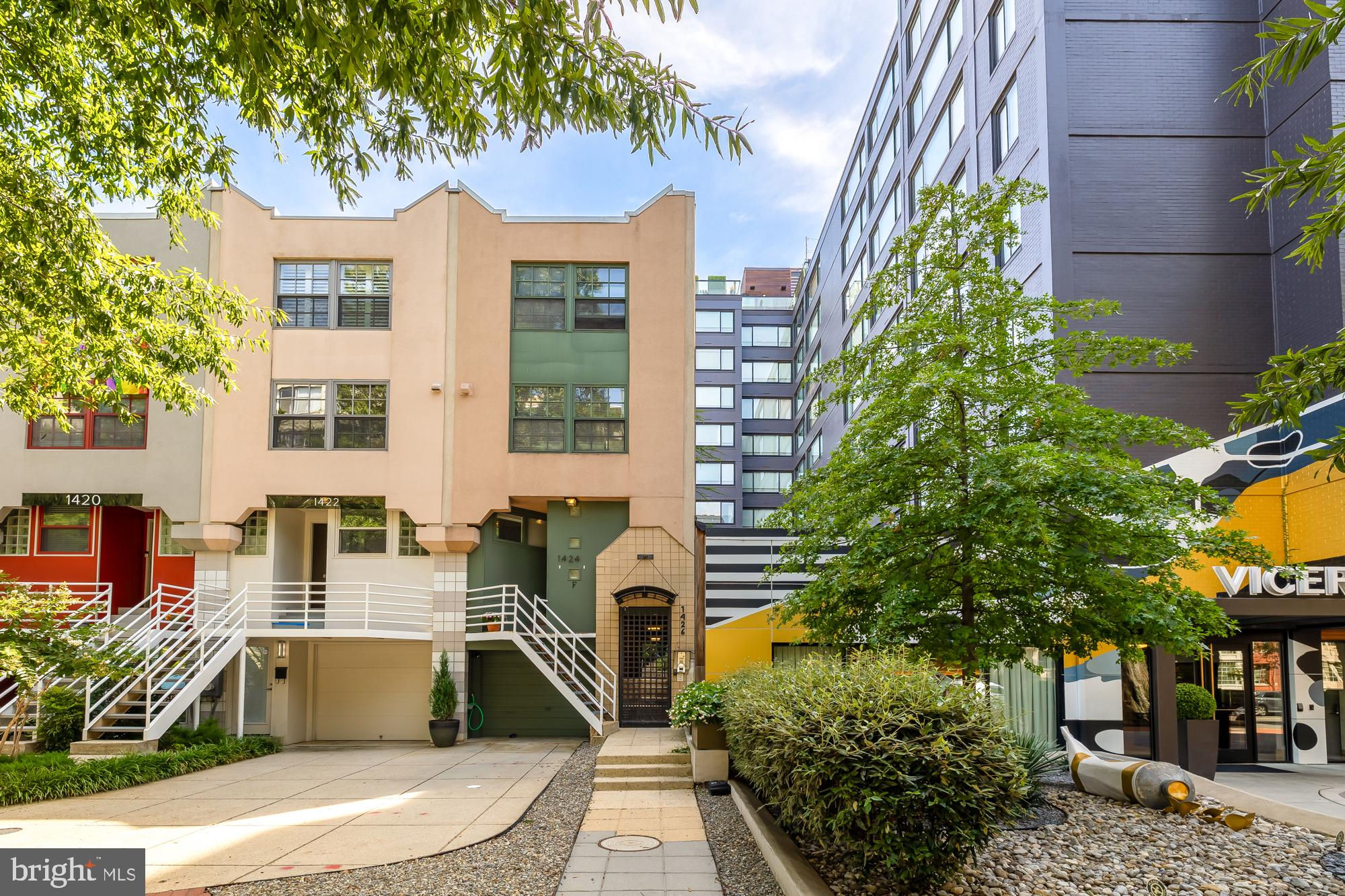 Discover an exclusive opportunity to own this meticulously renovated condo in the heart of Logan Circle. This stunning 4-level home offers 3 bedrooms, a den, 3.5 bathrooms, a private rooftop terrace, and an attached garage. The open-concept main level is an entertainer’s dream, showcasing soaring two-story windows that bathe the space in natural light, paired with sophisticated, modern touches like newly installed railings. Impeccable details, including designer lighting, fresh custom paint, and beautifully refinished hardwood floors, elevate the ambiance throughout. The newly designed kitchen combines sleek custom cabinetry with state-of-the-art, high-end appliances, offering both style and functionality. Its thoughtful layout seamlessly transitions into an elegant formal dining area, making it the perfect space for hosting intimate dinners or entertaining guests in style. The second floor is a private oasis of comfort and elegance. The sun-drenched primary suite offers a serene retreat, with oversized windows that flood the space with natural light. Its luxurious en-suite bath delivers a spa-like experience, featuring a generous walk-in shower and premium designer finishes, creating the perfect sanctuary for relaxation. A spacious second bedroom and second bathroom, also awash with natural light, completes the floor. Every detail has been thoughtfully crafted to embody sophistication and provide a peaceful haven for unwinding.The lower level offers flexibility as a private in-law suite or potential income-generating unit. This space includes a combined living and bedroom area, a kitchenette, washer/dryer, bathroom, and its own private entrance, making it both convenient and versatile. No detail was spared in the stunning rooftop transformation, which features newly installed structural beams, pristine decking and railings, a newly installed HVAC unit, and an expanded penthouse that includes a chic wet bar with sweeping views of the city. This rare and refined residence offers an unparalleled living experience in one of Washington, DC's most coveted neighborhoods, where luxury meets lifestyle. Surrounded by countless cafes and world-class restaurants, residents enjoy an endless array of dining options right outside their door. The vibrant neighborhood also boasts an abundance of outdoor spaces, perfect for leisurely strolls, pet-friendly activities, and social gatherings with friends. For fitness enthusiasts, top-tier gyms are conveniently located nearby, along with boutique shopping destinations for every style. Easy access to the Metro makes commuting a breeze, further enhancing the appeal of this dynamic, walkable community.