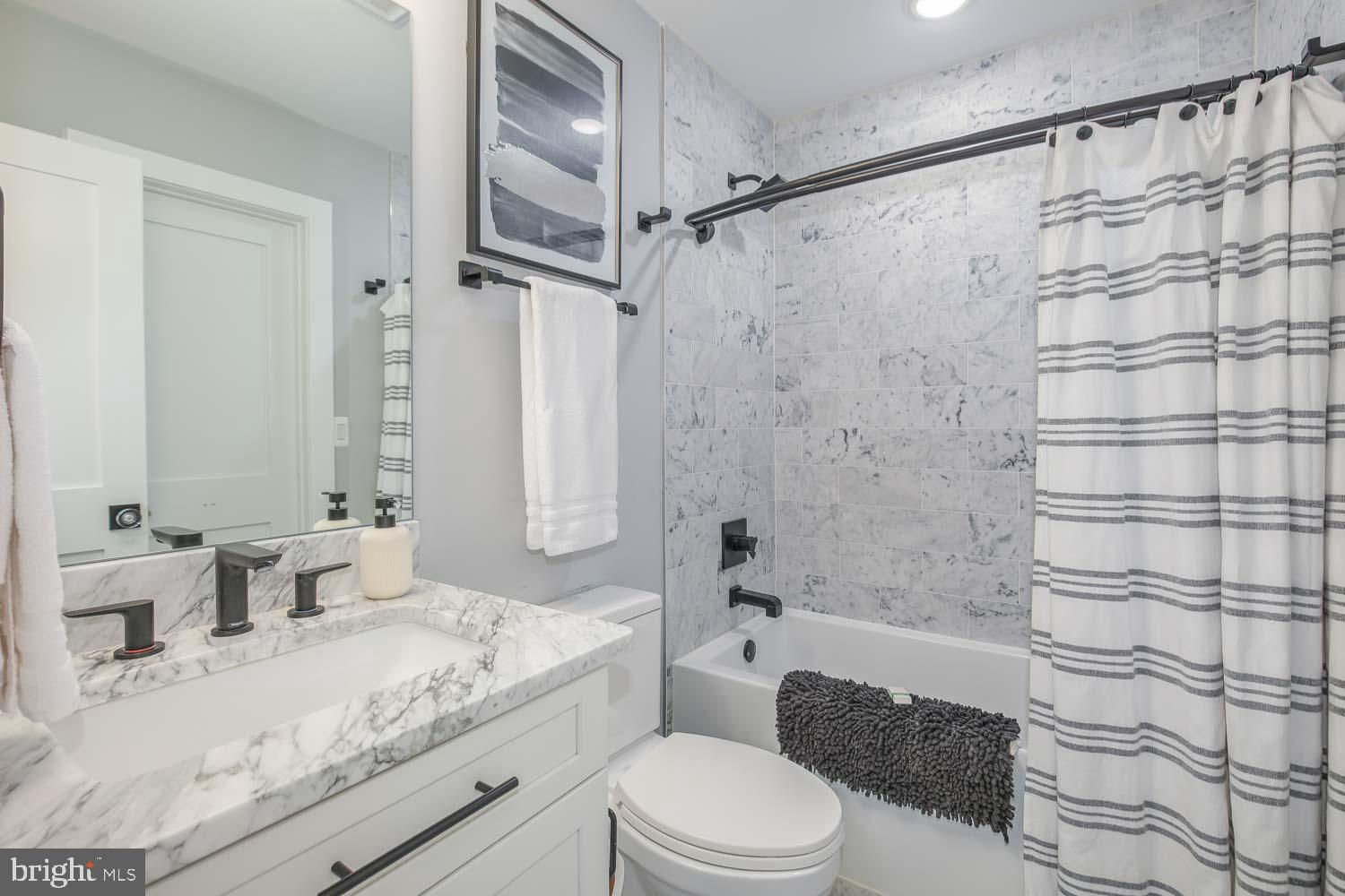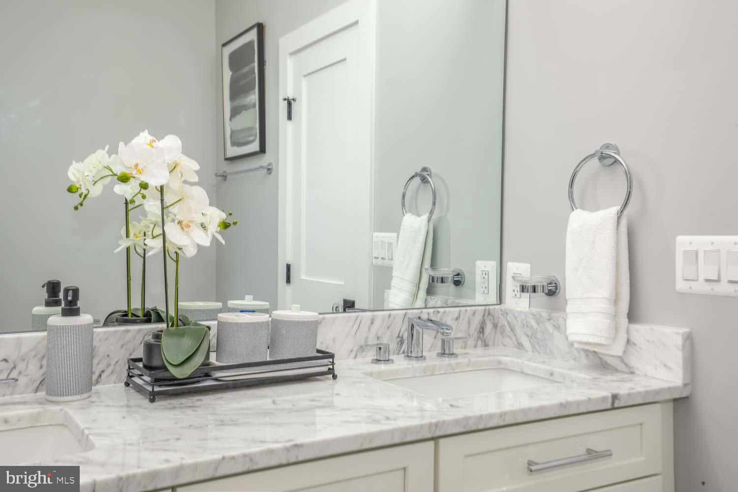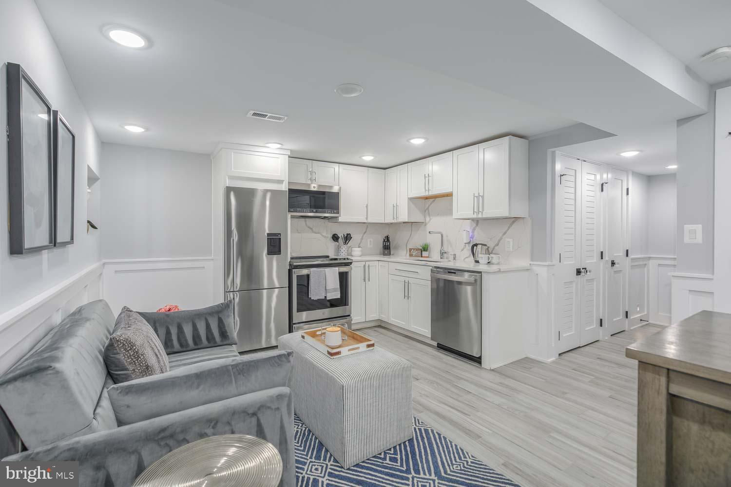 WOW .. barely lived in large and Exceptionally renovated (2022) home over 3,000 sq ft across four finished levels – the 3 level main house .. and ... a separate 2-bedroom + 2 bathroom basement rental with a C of O (can be an Airbnb or a full-time rental for as much as $3,000 a month). Main house is flooded with natural light w/ an open concept living and dining space, a designer kitchen w/ a large deck off the living area and an inviting front porch for a perfect layout for indoor + outdoor entertaining. The 2nd floor has two guest bedrooms sharing a full bath, plus an expansive primary suite w/ a full ensuite bathroom with striking walk-in shower & lots of closet space. **ALL Bathrooms are Carrara Marble .. so beautiful! BONUS 3rd floor w/ a large living area w/ ANOTHER full bathroom that leads to a ROOF DECK. **The property also has a room for two cars to be parked securely**