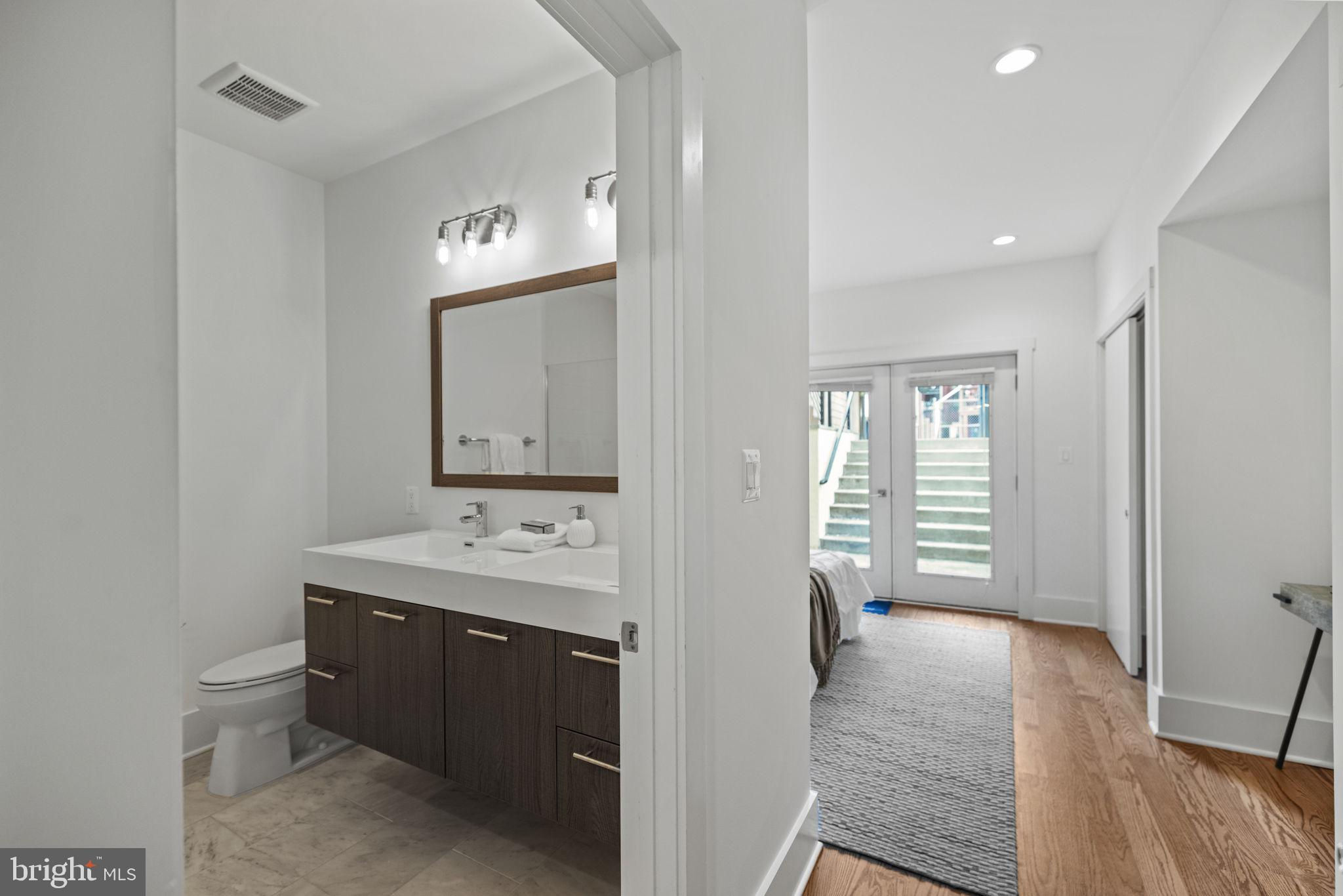 Offers due by Wednesday 12n. 10k price adjustment! Over 1700 sq ft on two floors!! Spacious two-level condo unit w/3 BR + DEN, 3 full baths in the heart of Bloomingdale just steps from dining/ shopping, Red Hen, yoga, and Bloomingdale's Farmer's Market! Completely renovated in 2017, this sun-filled unit features kitchen w/island, gas stove and stainless steel appliances, hardwood floors on both levels, soaring ceilings, TWO patios. Don't miss!