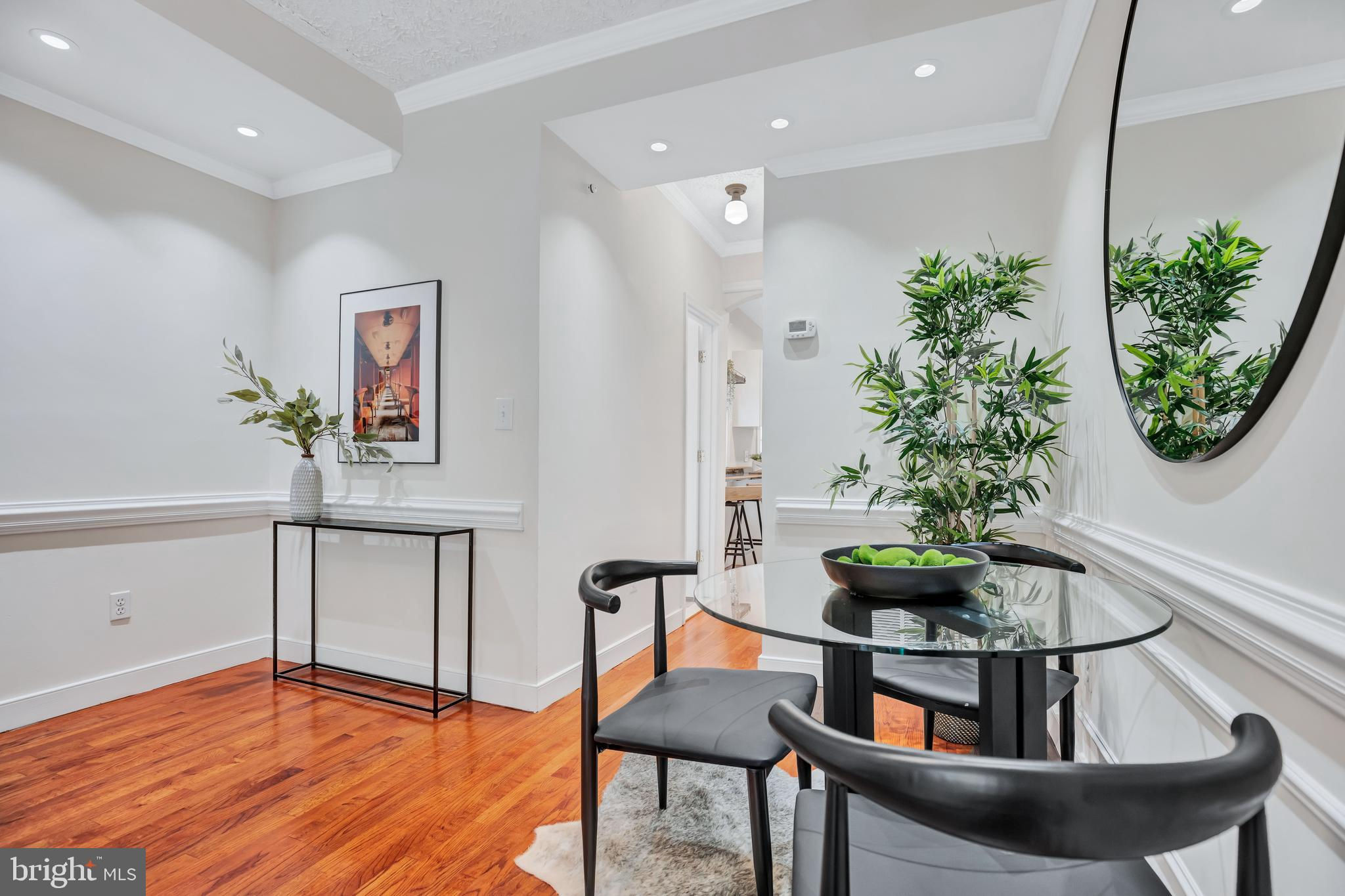 Nestled in a prime location, this charming two-story twin-row house offers a harmonious blend of elegance and functionality. As you step inside, you're greeted by gleaming hardwood floors that flow seamlessly throughout, creating an inviting atmosphere. The main living area seamlessly connects to the kitchen, which features stainless steel appliances, a gas range, and a convenient breakfast bar ideal for casual dining. The front-loading washer and dryer, adding convenience, are located in the kitchen. Beyond the kitchen, a private fenced patio beckons, providing a serene outdoor space for al fresco dining or enjoying morning coffee in the fresh air. Natural light floods every corner of this home, enhancing its warm and welcoming ambiance. Upstairs, discover two bedrooms, each offering comfort and tranquility, perfect for unwinding after a long day. A full bath on the main level adds to the home's functionality. This home's location is a commuter's dream, with swift access to major highways such as I-495, 395, and 95, making travel to nearby destinations effortless. Explore the vibrant Alexandria community with its diverse dining, shopping, and entertainment options just moments away. With its excellent location, this property is a fantastic starter home or a wonderful investment opportunity that has a history of quickly renting. Embrace the captivating beauty and untapped potential of this remarkable property – an embodiment of comfort, style, and convenience. Schedule a showing today and envision the lifestyle that awaits you in this Alexandria treasure.