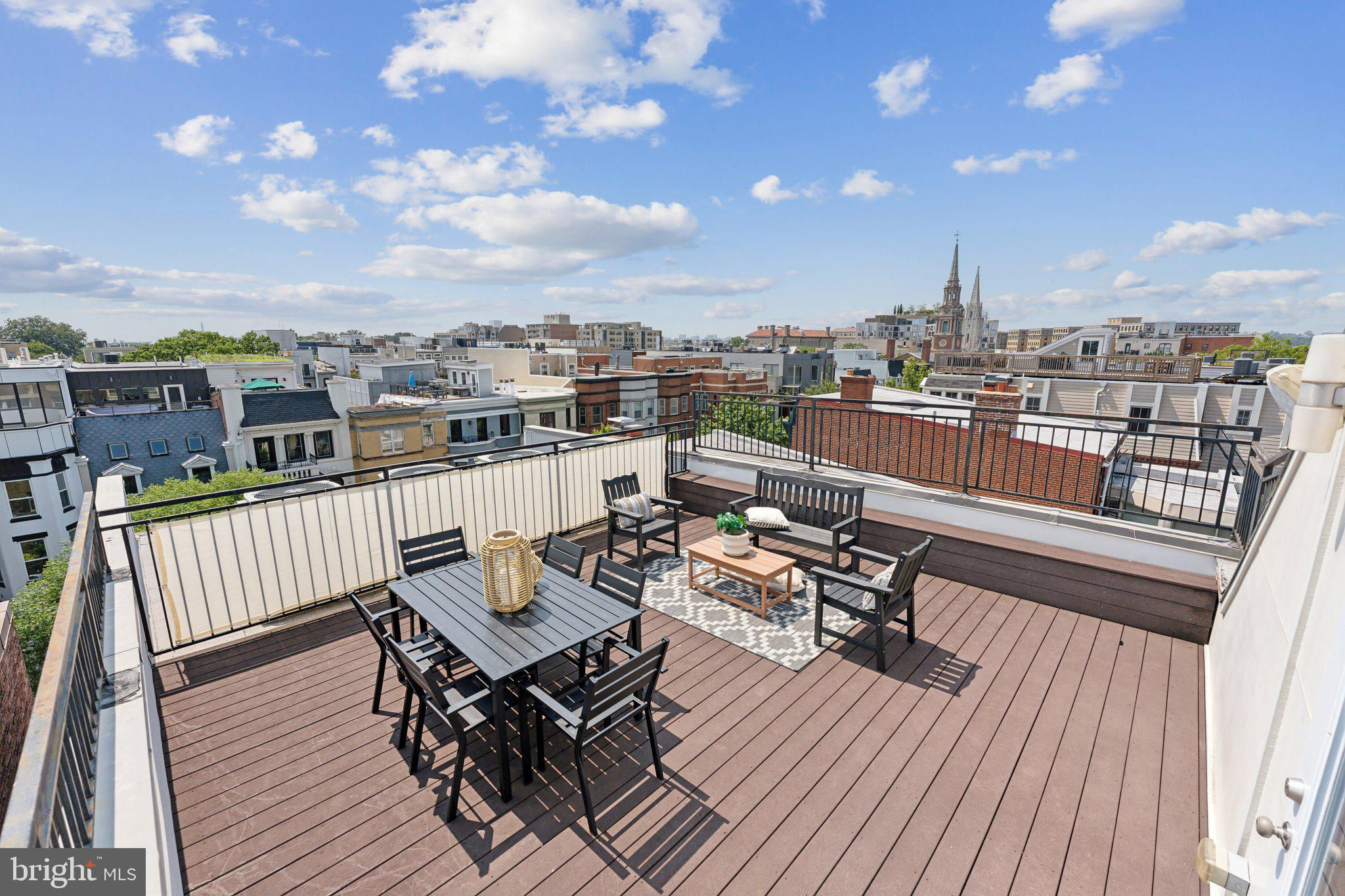 Welcome to your dream home! This stunning penthouse condo spans three luxurious levels and offers an unparalleled living experience in Washington, D.C. Meticulously renovated by the renowned Lock 7 developers and lovingly maintained by its current owners, this residence boasts exceptional quality and modern elegance throughout. Upon entering, you'll be greeted by soaring 17 foot ceilings that create an open, airy atmosphere with abundant natural light. The beautiful open-concept design includes an upgraded kitchen with top-of-the-line appliances, seamlessly flowing into the dining and living areas, perfect for entertaining and daily living. This home features two spacious bedrooms, each with its own en-suite bathroom, and an in-unit washer/dryer providing ultimate convenience and privacy. Additionally, a versatile den offers ample space for work or relaxation, and the half bath is perfect for guests. This home offers ample storage with extra-wide and tall closets, along with spacious pantries throughout. As you ascend the stairs to your exclusive rooftop oasis, you'll find a wet bar, and oversized deck offering 365-degree views of Washington, D.C., including iconic landmarks like the Washington Monument and the National Cathedral. This private rooftop terrace is ideal for summer BBQs, evening gatherings, or quiet morning coffee with breathtaking views. And there's more - the garage of this property features a roller electric garage door, providing convenient and secure parking for your vehicle. This home offers a unique blend of luxury, comfort, and convenience in one of the most sought-after locations in the city. Steps from the Metro, Rock Creek Park, entertainment and restaurants, and so much more! Don’t miss the opportunity to make this exceptional property your new home. Schedule a viewing today!