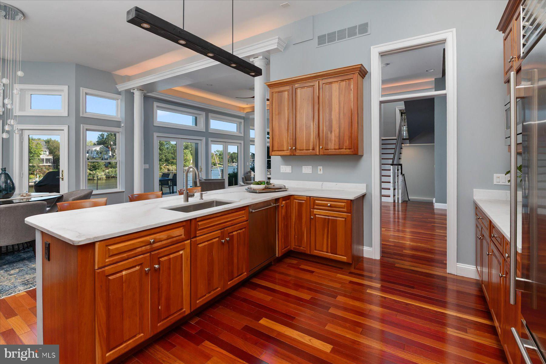 Waterfront Luxury with Unmatched Views – 145 Spa Drive, Annapolis, MD Nestled along the tranquil shores of Spa Creek, this exceptional residence offers a rare opportunity to own a slice of Annapolis waterfront paradise. With 87 feet of pristine water frontage and sweeping views that stretch across the creek, this 4-bedroom, 4-bathroom home is a masterclass in elegance, comfort, and coastal sophistication. From the moment you arrive, the curb appeal is undeniable—classic architectural lines, mature landscaping, and a stately oversized two-car garage welcome you home. Step inside to discover a thoughtfully designed interior that blends timeless charm with modern luxury. The open-concept living spaces are bathed in natural light, with expansive windows framing the water like living art. At the heart of the home lies a gourmet kitchen that will delight culinary enthusiasts and entertainers alike. Outfitted with high-end appliances (Wolf and Subzero), custom cabinetry, and sleek countertops (Calacatta Marble), it flows seamlessly into the dining and living areas, creating a perfect setting for intimate dinners or lively gatherings. The primary suite is a sanctuary of serenity, featuring a spa-inspired steam bath, heated floors, soaking tub, a spacious layout, and a secure walk-in closet designed for both style and discretion. Additional bedrooms offer flexibility for guests, home offices, or creative spaces, with the potential for a fifth bedroom to suit your lifestyle needs. Step outside to enjoy the true magic of this property. Whether you're sipping coffee on the deck, hosting sunset cocktails, or launching your boat from one of two private lifts, the waterfront lifestyle here is second to none. The property is equipped with an indoor sprinkler system, a backyard irrigation system ensuring lush greenery year-round, and the gentle lapping of Spa Creek provides a soothing soundtrack to daily life. Located just minutes from downtown Annapolis, this home offers the perfect balance of privacy and proximity. Enjoy easy access to world-class dining, boutique shopping, historic charm, and vibrant maritime culture—all while retreating to your own peaceful haven at day’s end. Key Features: - 4–5 Bedrooms 4 Bathrooms - 87 Feet of Spa Creek Waterfront - Gourmet Kitchen with Premium Appliances - Secure Primary Bedroom Closet - Luxury Steam Bath, soaking tub and heated floors - Oversized Two-Car Garage - Two Private Boat Lifts 40,000 lb and 10,000 lb - Indoor Sprinkler System - Breathtaking Water Views from Multiple Rooms This is more than a home—it’s a lifestyle. Schedule your private tour today and experience the unmatched beauty and tranquility of 145 Spa Drive.