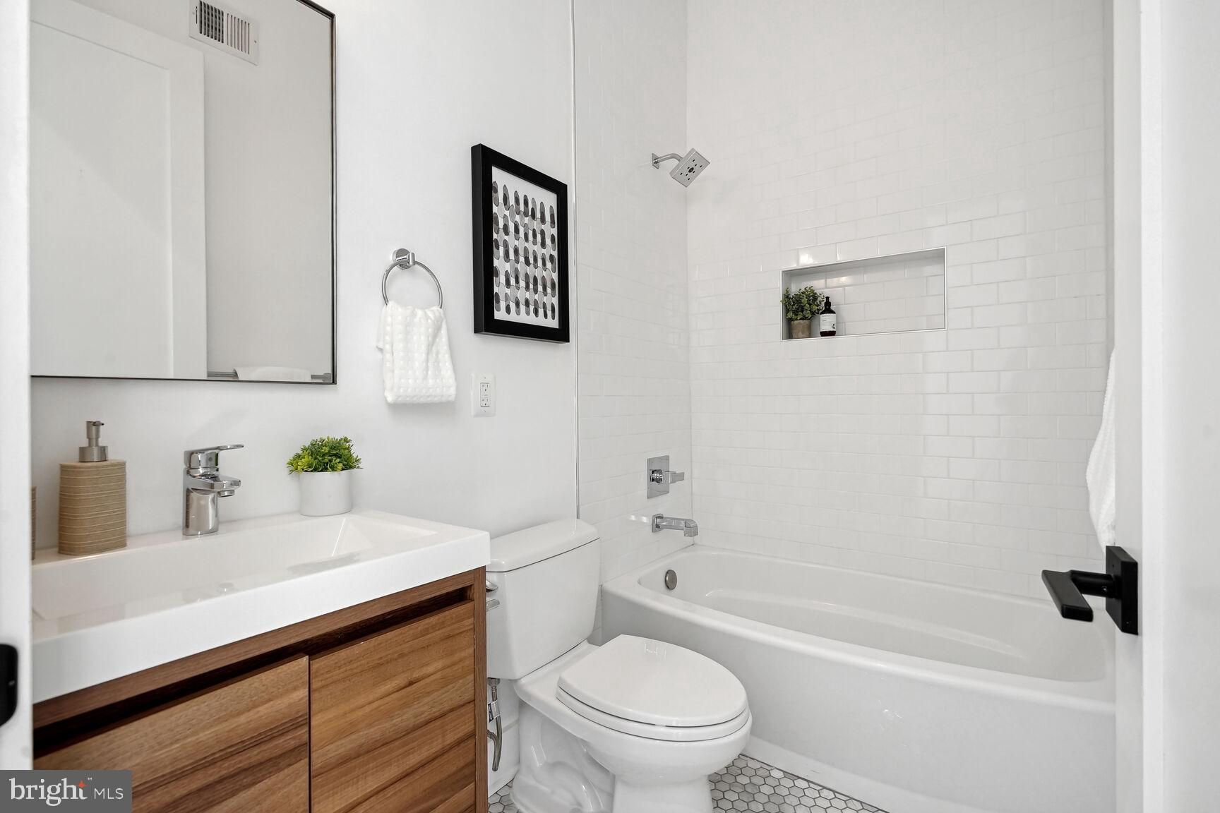 Welcome to the heart of Columbia Heights! A contemporary gem with three bedrooms, two full and one half baths. There is also the added convenience of off-street parking, for a fee. Step inside and be greeted by the meticulously designed main level, featuring custom cabinetry, high-end stainless steel appliances, and a beautiful tiled backsplash in the gourmet kitchen. The perfect blend of style and functionality. Venture to the rear of the home, where a private porch and yard await you, providing an urban oasis to unwind and enjoy the outdoors right in the heart of the city. This home goes above and beyond with energy-efficient features, including a tankless water heater, recessed LED lighting, and solar panels that dramatically reduce your monthly electricity bill, giving you both comfort and sustainability. Convenience is key, and with off-street parking spaces directly across the street, you'll have peace of mind knowing your vehicles are well taken care of. Perfectly situated near an array of restaurants and shops, including the DC USA Shopping Center, Giant Food, Tequila & Mezcal, Hook Hall, and more, you'll have everything you need at your fingertips. Certificate of Occupancy has been issued, assuring a smooth and hassle-free transition into your new home. While all square footage and dimensions are estimates compiled from reliable sources, rest assured that this residence is a true treasure in the heart of Columbia Heights. Don't miss this incredible opportunity to experience modern urban living at its finest! Seller credit offered for landscaping at settlement.