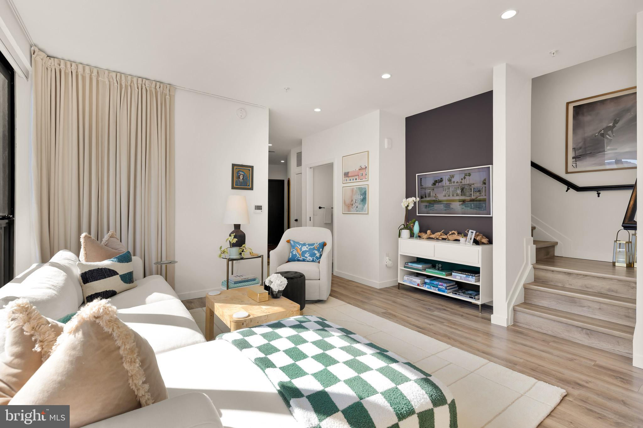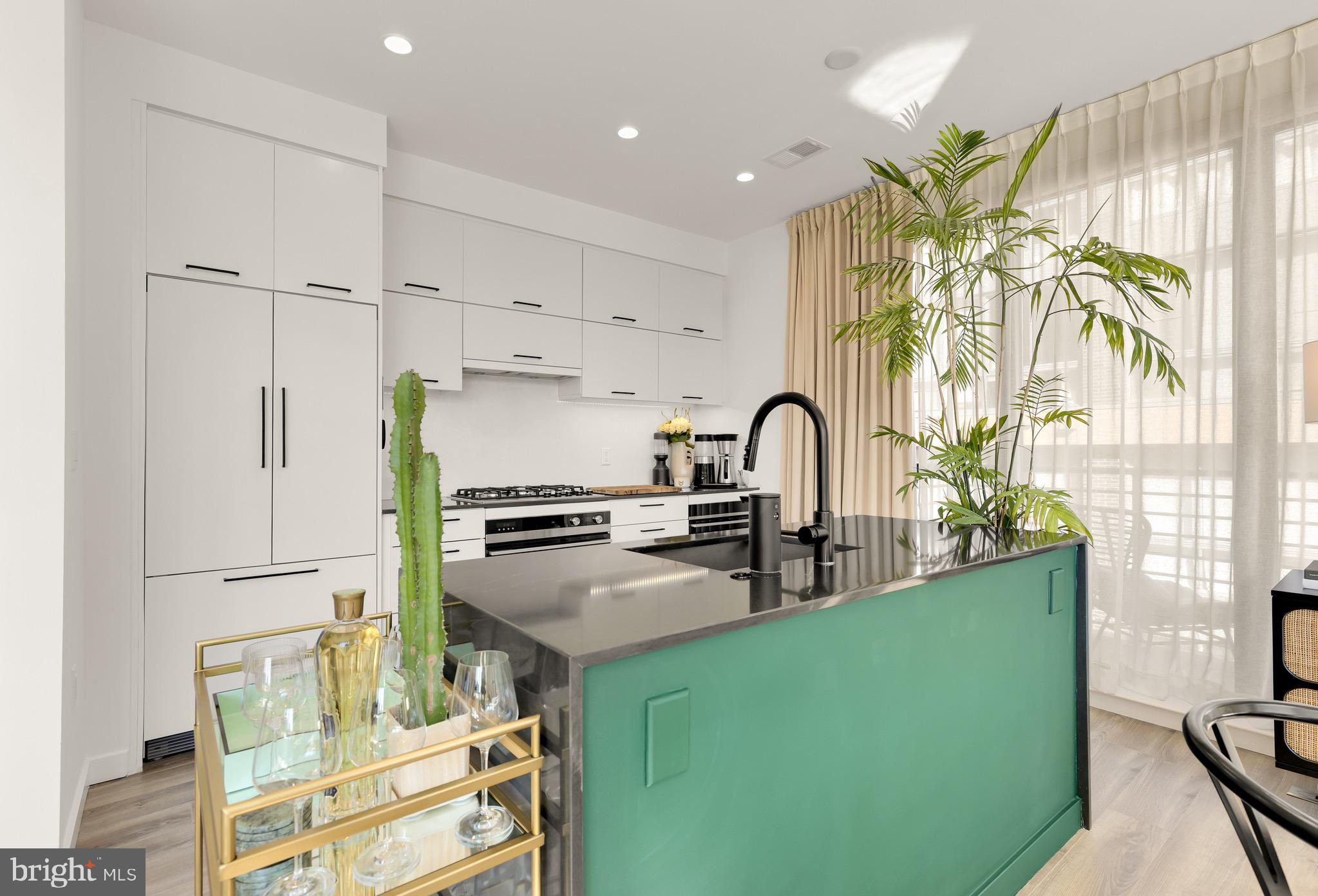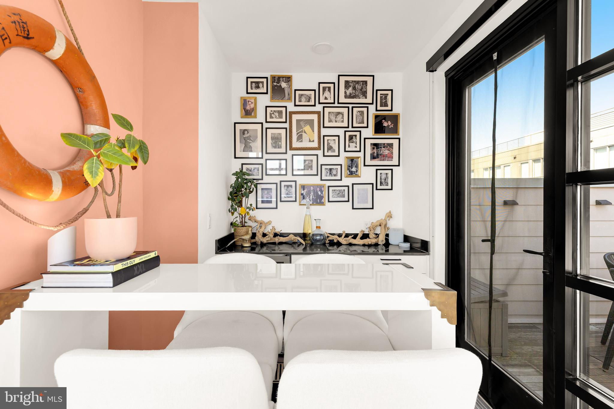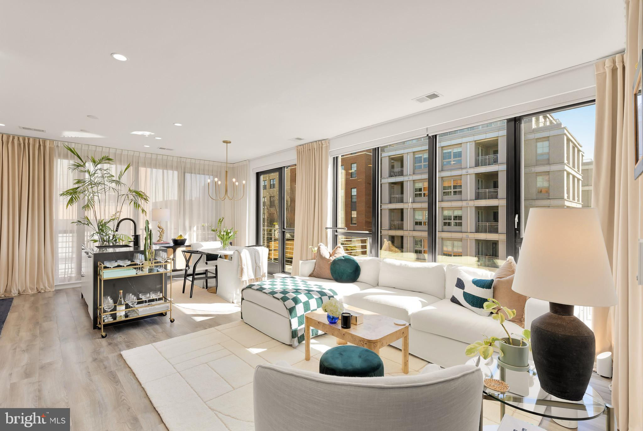 THE PREMIER RESIDENCE IN THE COMMUNITY! Discover the best of modern living in this remarkable three-story, end-unit penthouse at City Homes—where townhome-style design meets the convenience of condominium amenities. Boasting three private outdoor spaces totaling 525 sqft. and sophisticated interiors, this 3-bedroom, 3.5-bathroom residence showcases high-end finishes and thoughtful details throughout. The main level features an open-concept living and dining area, flooded with natural light from oversized east-facing casement windows and a wraparound balcony. The state-of-the-art kitchen is equipped with custom soft-close cabinetry, sleek matte black hardware, Fisher & Paykel appliances with gas cooking, quartz countertops, a full-height quartz backsplash, and LED under-cabinet lighting. A powder room completes this level. Upstairs, the primary bedroom offers a serene retreat with a walk-in closet and an ensuite Porcelanosa-tiled bathroom featuring a dual vanity and a walk-in shower. A well-appointed guest bedroom provides a functional space, ideal for visitors or a home office, and is complemented by a full bath. Step outside onto the second outdoor space—a peaceful terrace overlooking the park. The top floor features an additional bedroom and full bathroom, along with the perfect indoor-outdoor entertaining space. A built-in bar and beverage center complement the expansive wraparound roof terrace—creating a true one-of-a-kind urban oasis. Additional features include warm wide-plank flooring, an LG Smart WiFi washer and dryer, multiple closets with ELFA systems, dimmable LED lighting, and custom blinds and curtains. Secure underground parking for one vehicle is also included. The building offers secure access with intercom, a package room, bike storage and EV charging stations. Located across the street from Alethia Tanner Park and the Metropolitan Branch Trail, surrounded by the Quincy Lane Development and just steps from Union Market and the Metro (Red Line), this community seamlessly blends convenience with contemporary living. With its elevated design, prime location, and modern amenities, this exceptional residence presents a rare opportunity.