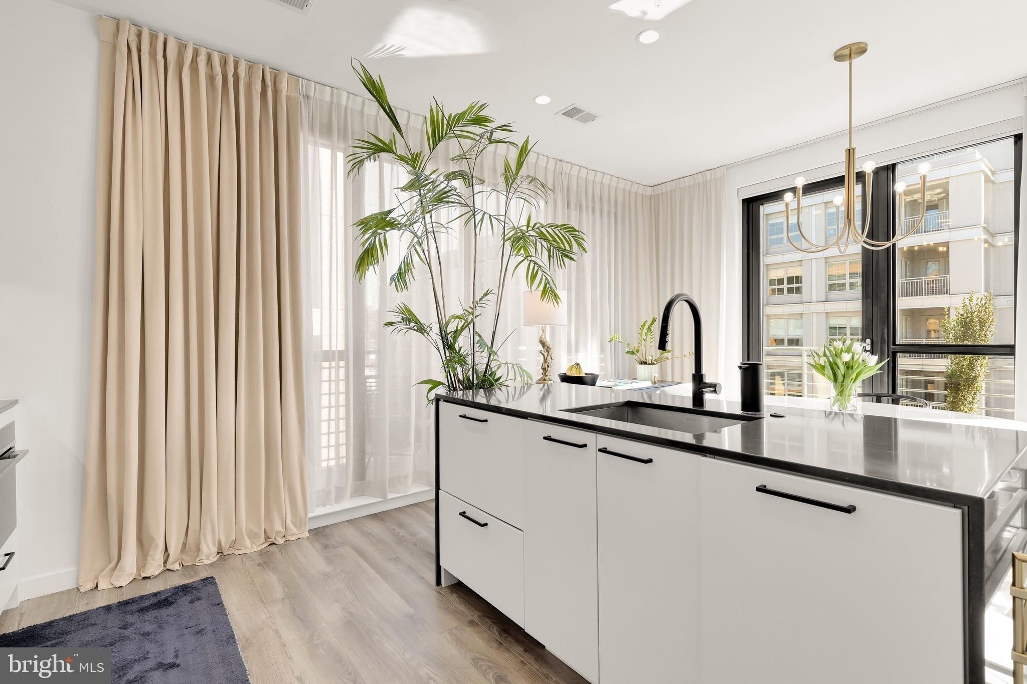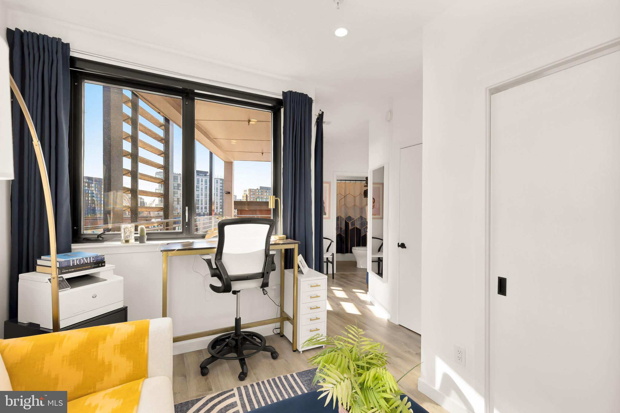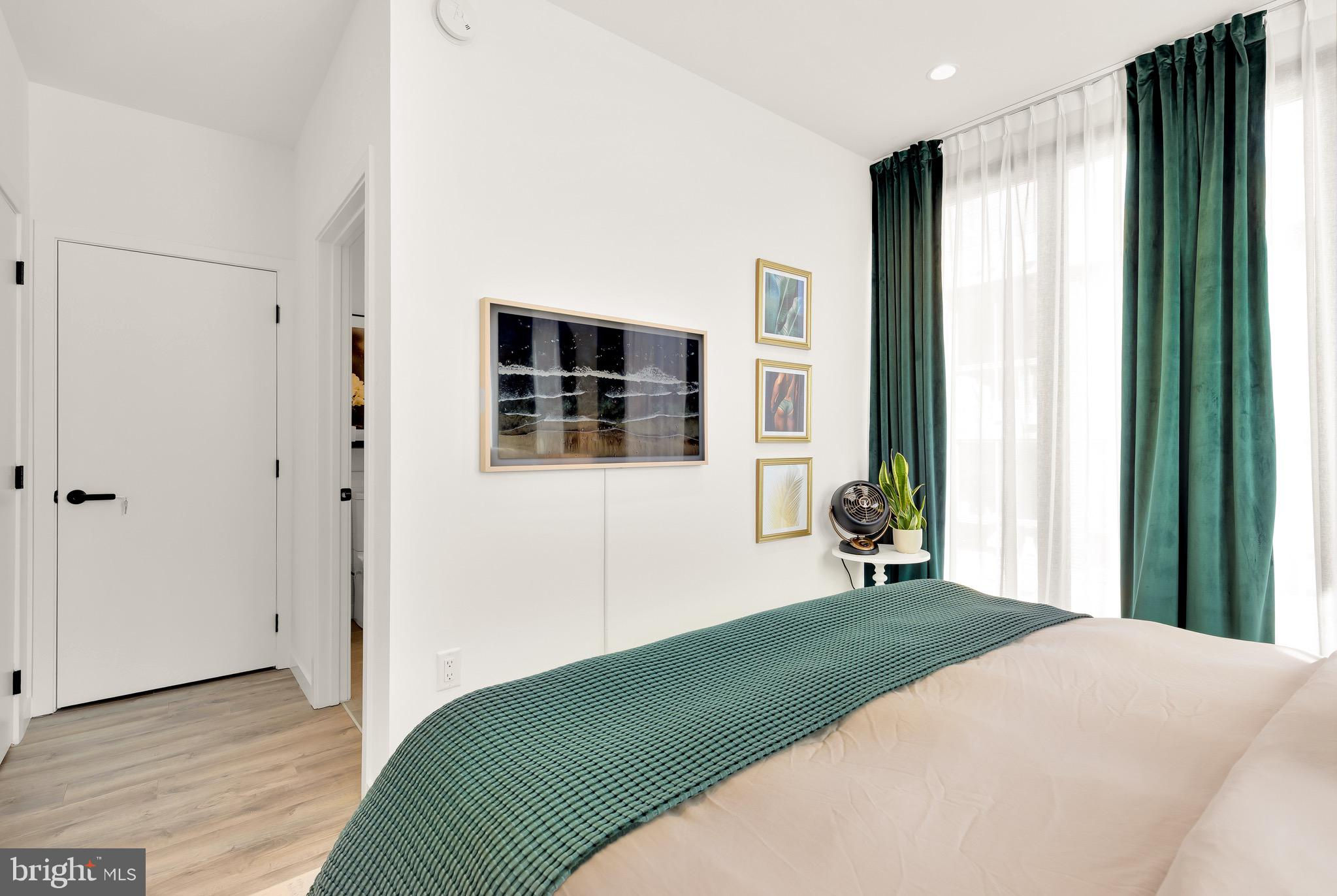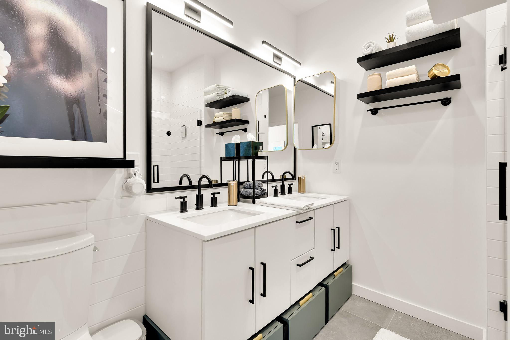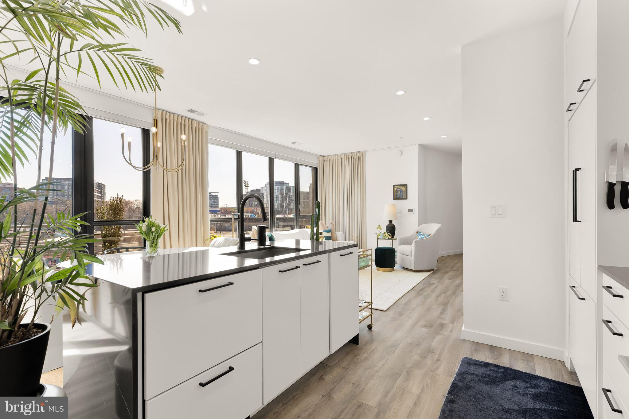 THE PREMIER RESIDENCE IN THE COMMUNITY! Discover the best of modern living in this remarkable three-story, end-unit penthouse at City Homes—where townhome-style design meets the convenience of condominium amenities. Boasting three private outdoor spaces totaling 525 sqft. and sophisticated interiors, this 3-bedroom, 3.5-bathroom residence showcases high-end finishes and thoughtful details throughout. The main level features an open-concept living and dining area, flooded with natural light from oversized east-facing casement windows and a wraparound balcony. The state-of-the-art kitchen is equipped with custom soft-close cabinetry, sleek matte black hardware, Fisher & Paykel appliances with gas cooking, quartz countertops, a full-height quartz backsplash, and LED under-cabinet lighting. A powder room completes this level. Upstairs, the primary bedroom offers a serene retreat with a walk-in closet and an ensuite Porcelanosa-tiled bathroom featuring a dual vanity and a walk-in shower. A well-appointed guest bedroom provides a functional space, ideal for visitors or a home office, and is complemented by a full bath. Step outside onto the second outdoor space—a peaceful terrace overlooking the park. The top floor features an additional bedroom and full bathroom, along with the perfect indoor-outdoor entertaining space. A built-in bar and beverage center complement the expansive wraparound roof terrace—creating a true one-of-a-kind urban oasis. Additional features include warm wide-plank flooring, an LG Smart WiFi washer and dryer, multiple closets with ELFA systems, dimmable LED lighting, and custom blinds and curtains. Secure underground parking for one vehicle is also included. The building offers secure access with intercom, a package room, bike storage and EV charging stations. Located across the street from Alethia Tanner Park and the Metropolitan Branch Trail, surrounded by the Quincy Lane Development and just steps from Union Market and the Metro (Red Line), this community seamlessly blends convenience with contemporary living. With its elevated design, prime location, and modern amenities, this exceptional residence presents a rare opportunity.