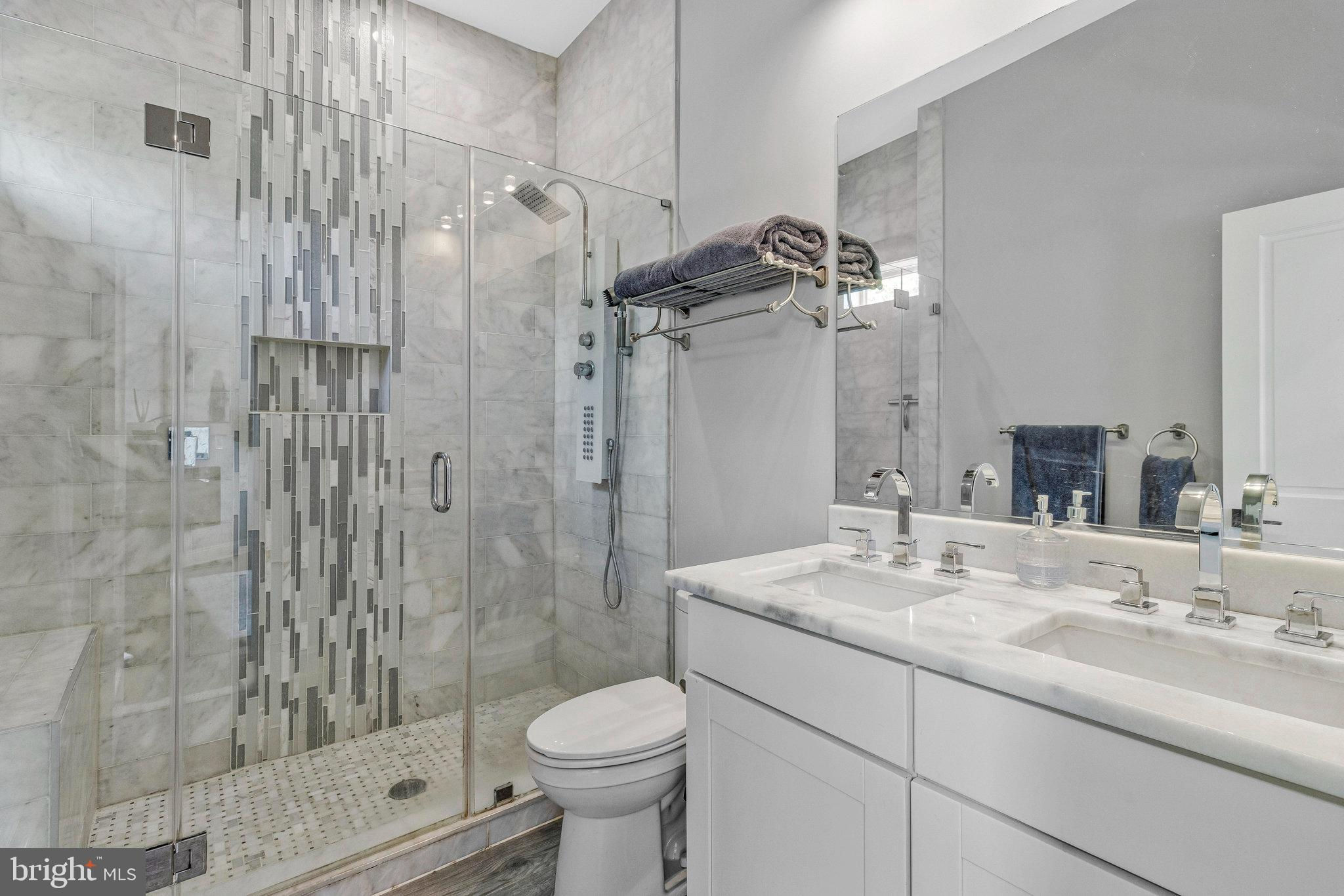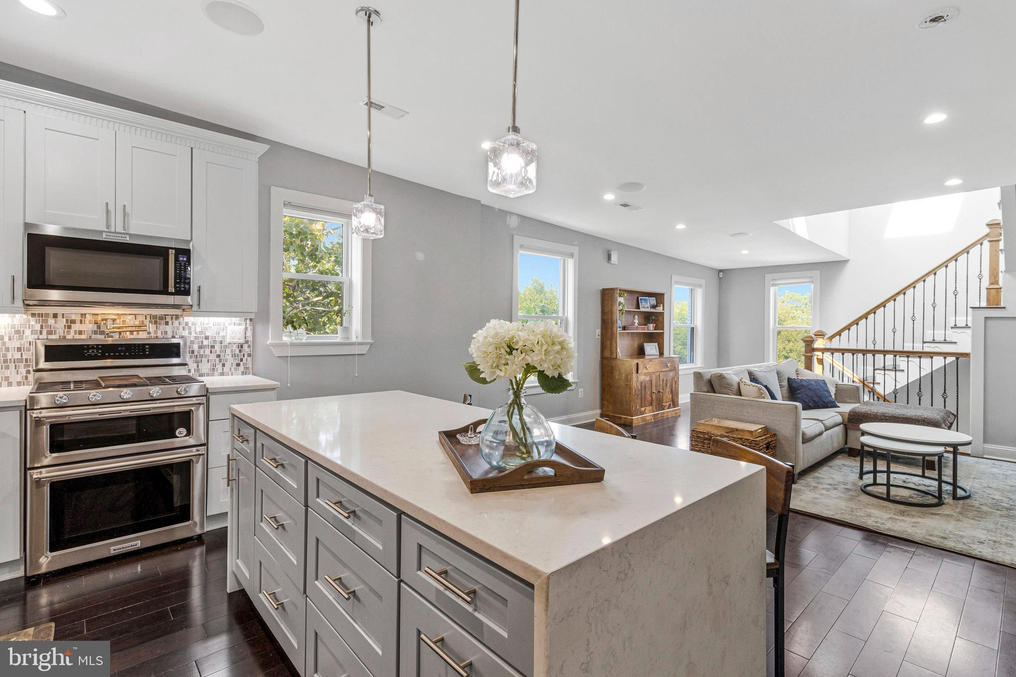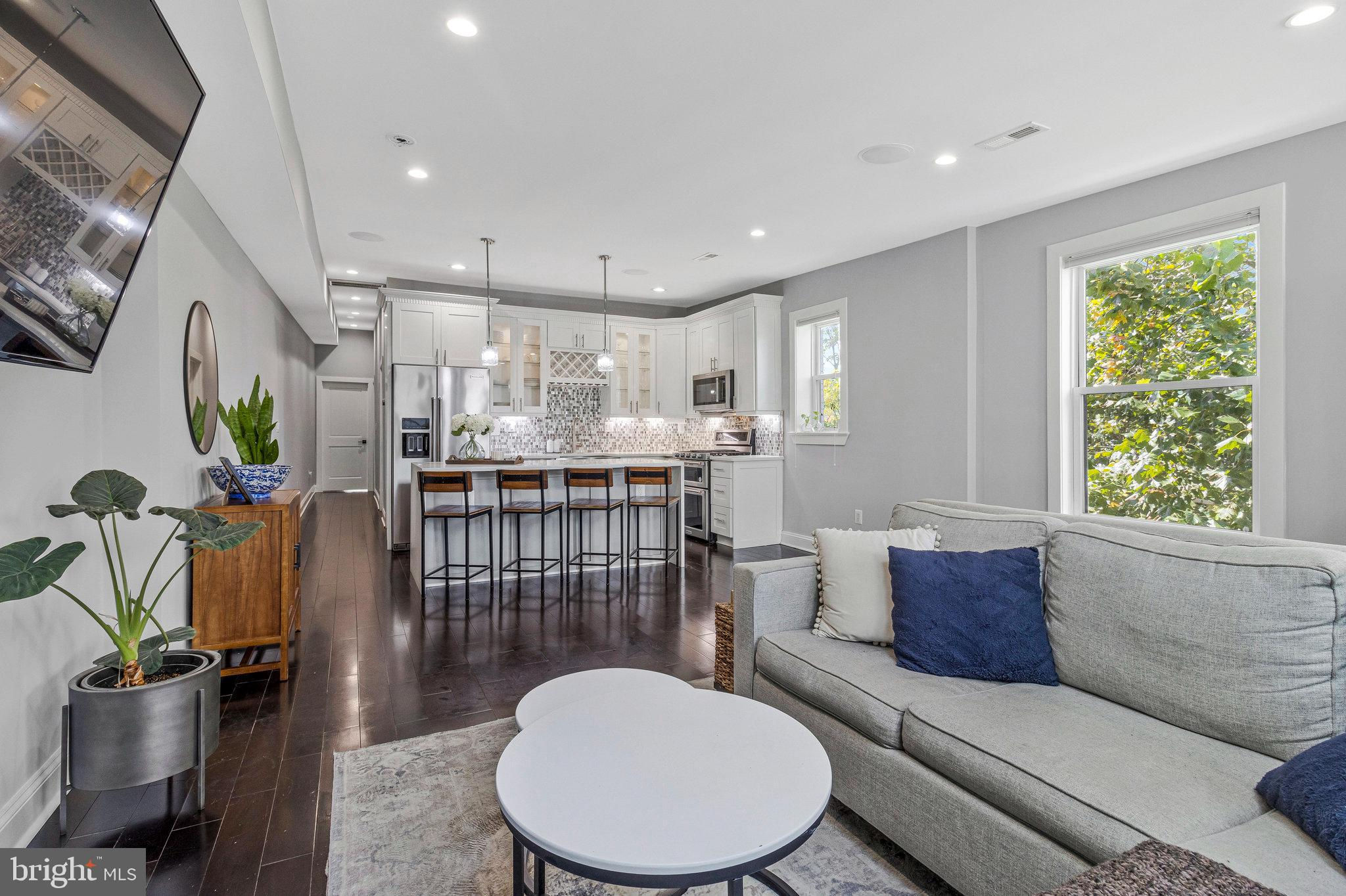 Experience modern city living at its finest in this stunning contemporary residence that perfectly balances style, comfort, and convenience. Nestled in a prime DC location, this beautifully designed home features an open layout ideal for both entertaining and everyday living. The sun-filled main level boasts oversized windows, recessed lighting, and gleaming hardwood floors throughout. A chef’s kitchen anchors the space, showcasing sleek quartz countertops, stainless steel appliances, a center island, and a breakfast bar for casual dining or conversation. The open-concept design seamlessly connects the kitchen, dining, and living areas, creating a bright and inviting flow. The spacious primary suite offers a relaxing retreat with a large walk-in closet and a private bath featuring a separate shower. Additional bedrooms are generous and versatile—perfect for guests, a home office, or a fitness area. Take in sweeping city skyline views from the expansive rooftop deck—ideal for morning coffee, weekend gatherings, or evening sunsets. Parking is effortless with both a private driveway and an assigned space, a rare city luxury. Conveniently located near acclaimed restaurants, coffee shops, parks, and Metro access, this home offers the very best of modern DC living in the heart of it all.