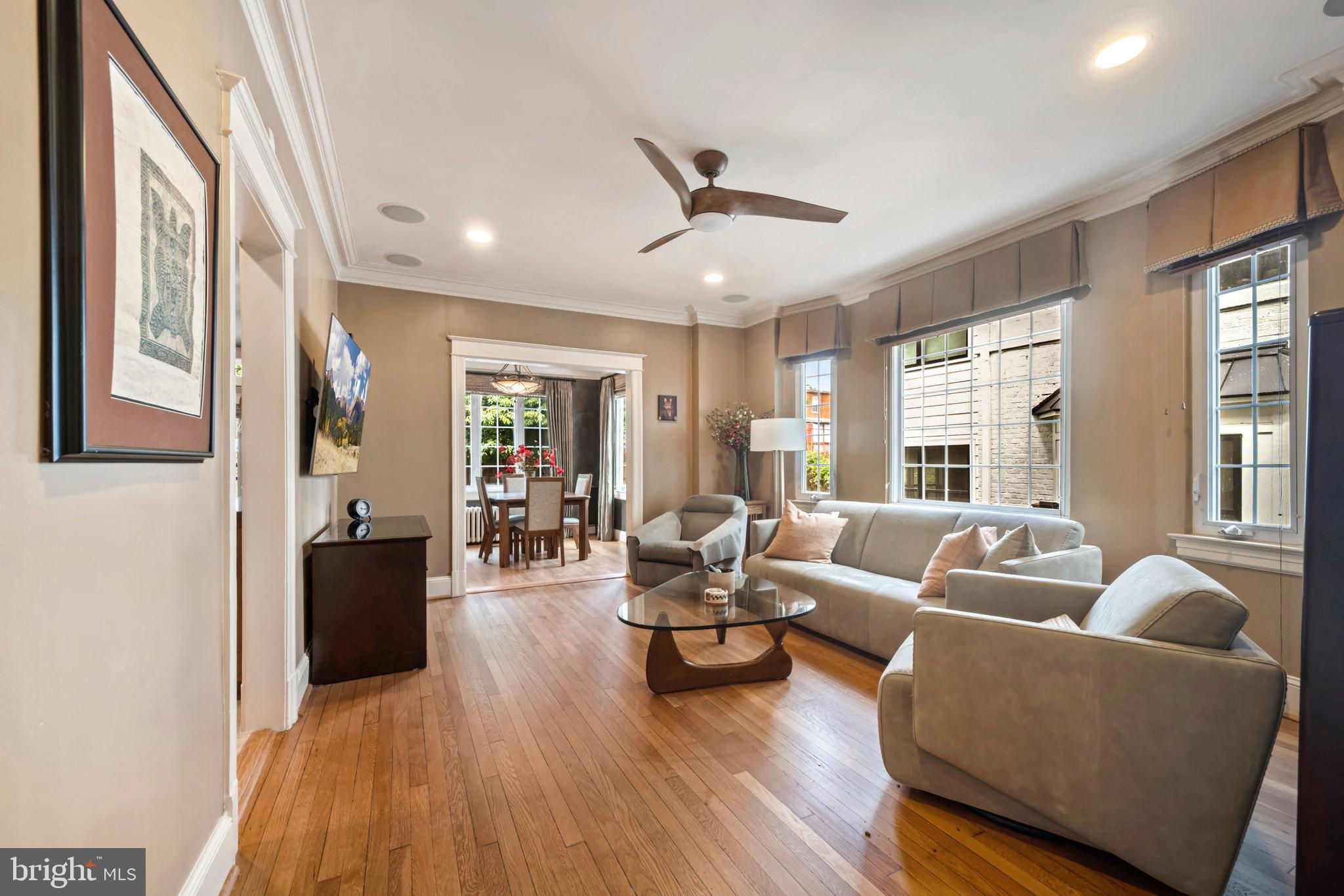 Rock Creek Park and Timeless DC Architecture Meets Modern Luxury Welcome to this stunning, fully renovated Washington, DC row home offering the perfect balance of classic character and contemporary design. Ideally situated just steps from Rock Creek Park and moments from the city’s most sought after destinations, this 5 bed, 4 bath residence delivers over 3,000 square feet of sophisticated living space and unmatched curb appeal. Inside, discover soaring ceilings, expansive windows, and gleaming hardwood floors that create a warm, inviting atmosphere filled with natural light. The open-concept main level showcases a grand living room anchored by a wood-burning fireplace, built in's, an elegant formal dining area, and a designer chef’s kitchen featuring rich custom cabinetry, premium appliances, abundant counter space, and a built-in wine cooler. A spacious rear family room flows seamlessly to the large fenced backyard perfect for entertaining or relaxing, plus 3 car off-street parking via the rear alley. Upstairs, the primary suite serves as a private sanctuary with a spa inspired bath, generous closets, and oversized windows that frame treetop views. Two additional bedrooms and a full bath complete the second level. The top floor offers incredible flexibility ideal as a guest suite, home office, or creative retreat with two bedrooms, a full bath, and sweeping views of the surrounding neighborhood. The lower level provides even more versatility with a separate entrance, half bath, full laundry, and ample storage, perfect for a gym, playroom, or potential in-law suite. Located in one of DC’s most desirable neighborhoods, this home offers urban convenience and natural tranquility. Enjoy direct access to Rock Creek Park’s trails, proximity to downtown DC landmarks, and easy reach to the vibrant new Parks at Walter Reed development, featuring restaurants, shops, grocery stores and community amenities. With a Walking Score over 80, this home captures the essence of modern DC living, historic charm, refined design, and everyday convenience in one extraordinary address.