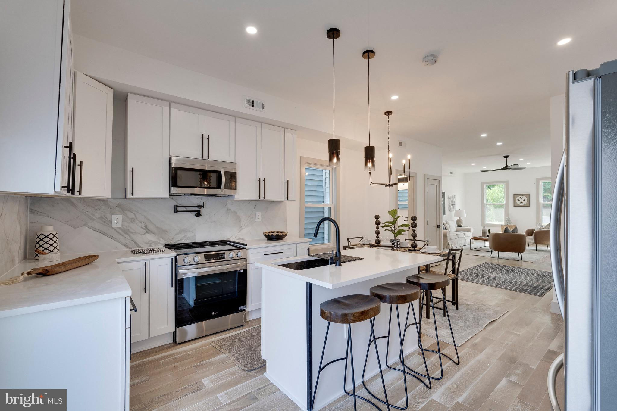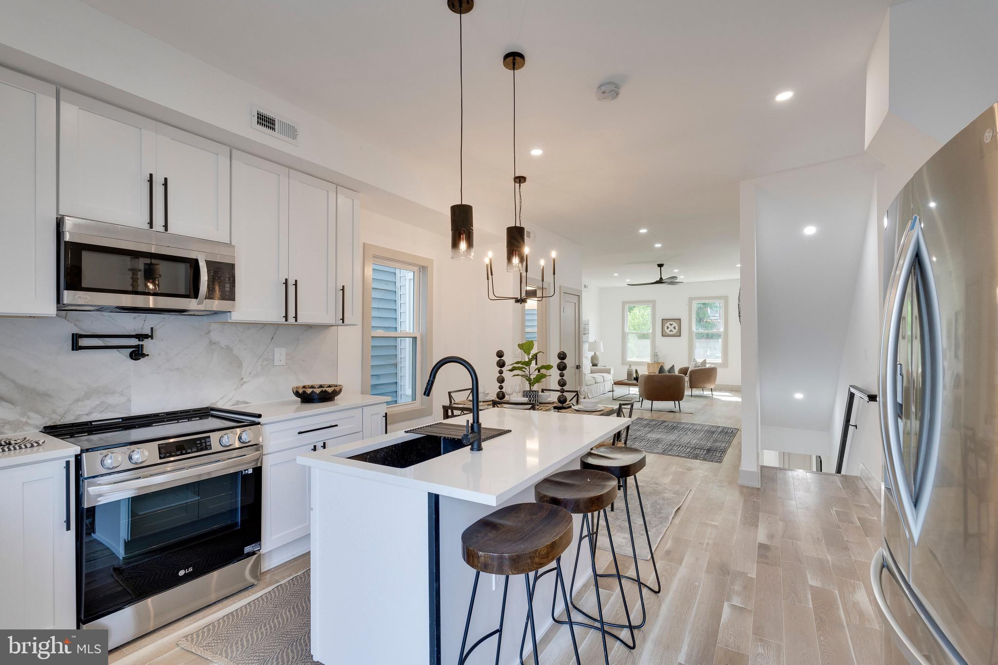 CITY LIVING, Stretch out in this Newly renovated home with incredible space and attention to details . Lovely interior upgrades . Perfectly situated steps to Metro /Union Market, H St, dining, retail and all the City has to offer. Upon entry the neutral tone of white and taupe accents, 9 foot ceilings , light color hardwood floors and spacious living room ,will create a zen atmosphere that will demand you call it home.. A Timeless Kitchen that includes custom built ins, contemporary white cabinets sparkling white quartz countertops with a magnificent Island perfect for Hosting,or swing Open the Doors and take the Party to the Lovely Rear Deck. 2nd Level 3 Generous size bedrooms 2 Full Baths Walk in Closet in the Master . Spacious Basement suited for Many Options as it includes a wet bar, additional bedroom, full bath Space for Washer/Dyer Front and Rear entrance . Perfect for entertaining , renting or a in-law suite! A Cherry on top is the 2 car parking in the rear , electronic garage door to be installed. Definitely a must see.