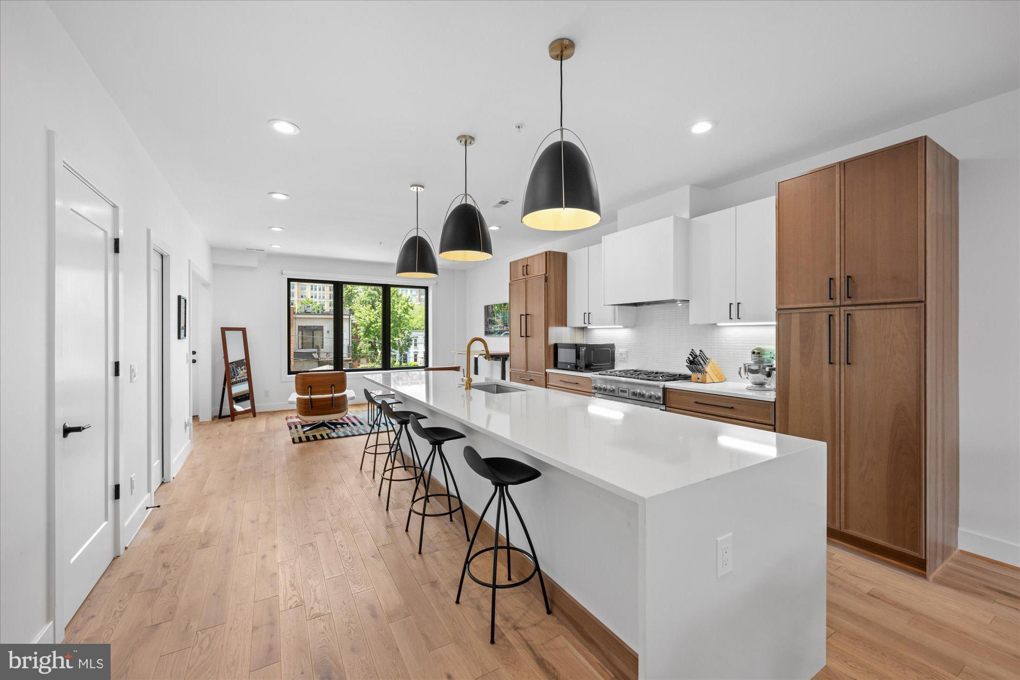 NEW PRICE! 1512 6th Street NW is stunning, nearly-new construction. Perfectly situated in the heart of Shaw, this penthouse is a multi-level, 3 bedroom/3.5 bathroom condominium. Throughout the unit there are beautiful finishes, including oak hardwood floors, stainless steel appliances, and quartz countertops, which compliment the clean and modern style. The spacious outdoor roof deck and the private off-street parking make this unit a true gem. Residents of Shaw enjoy the urban convenience like no other, with shops, restaurants, nightlife, and historical landmarks nearby. This condo offers the ideal blend of sophistication and urban living within one of DC’s most exciting neighborhoods.