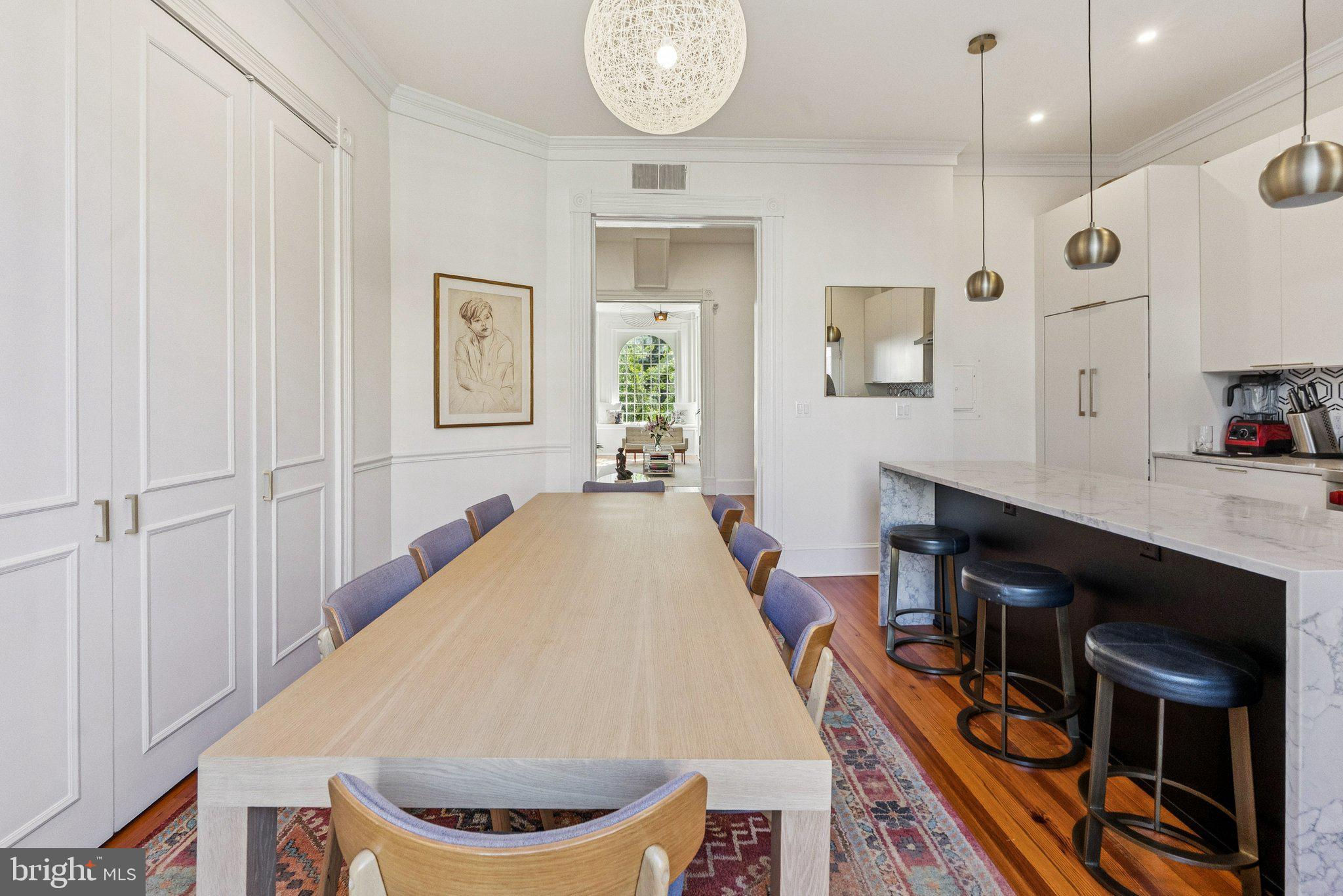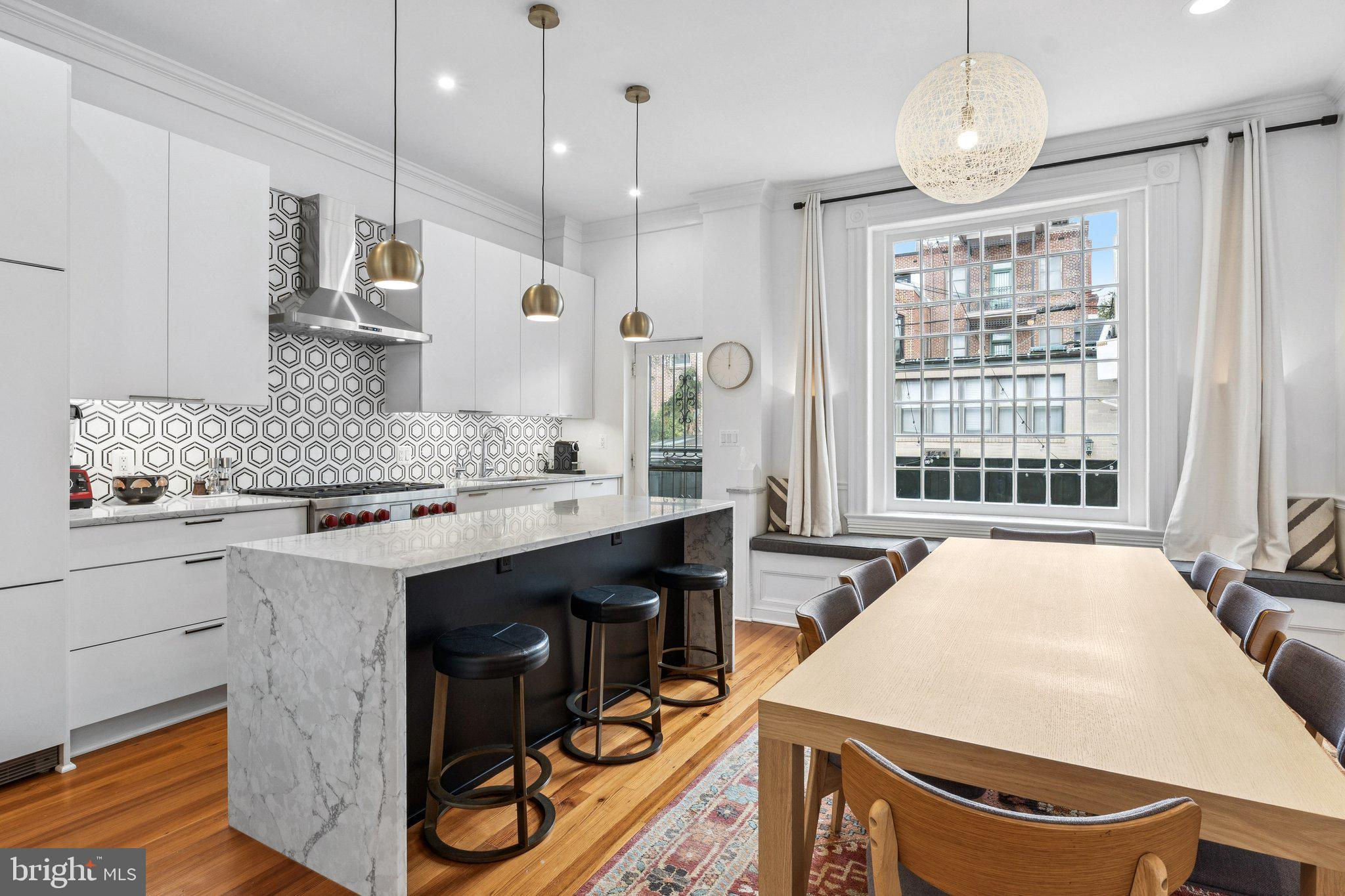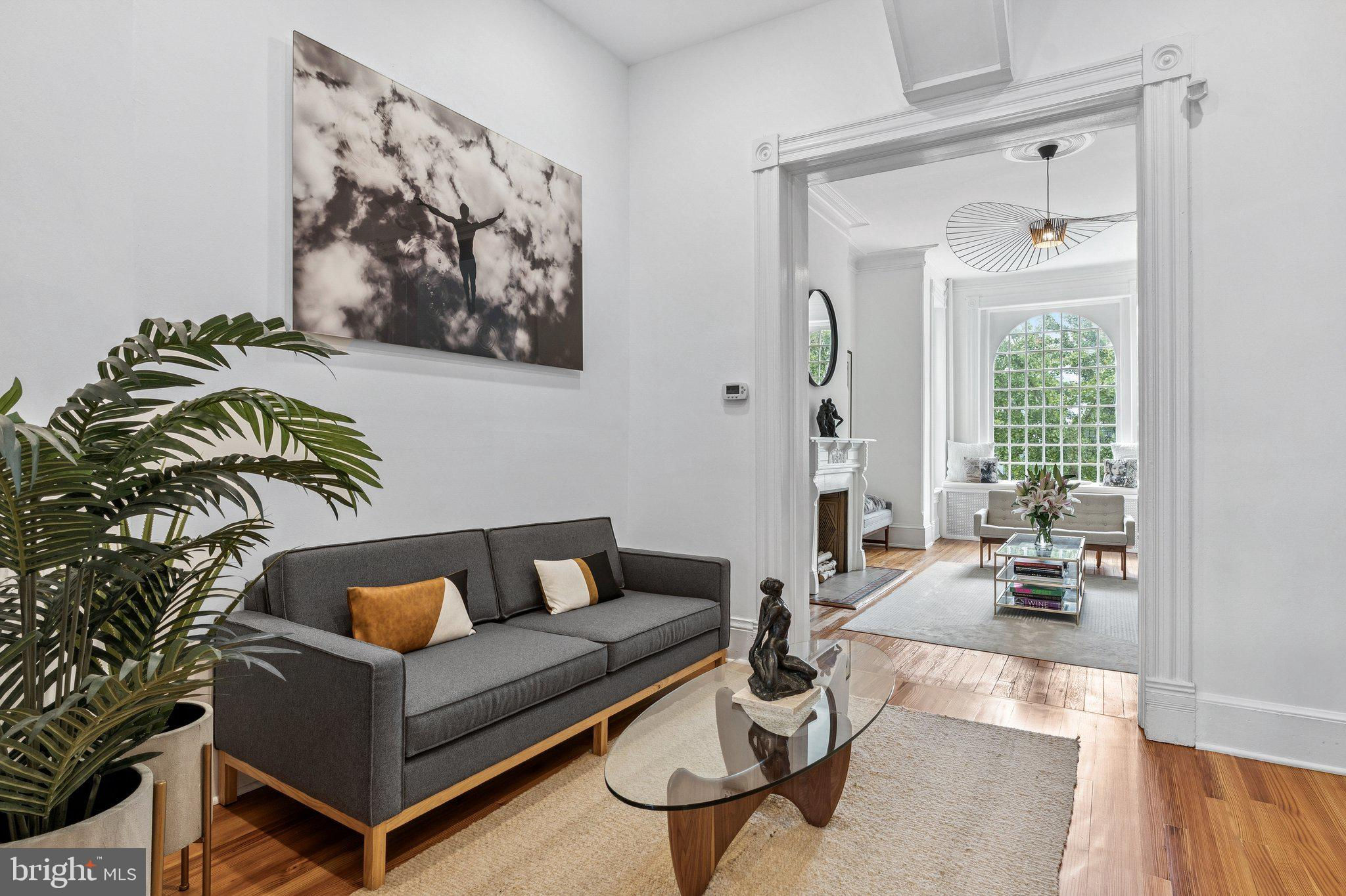 NEW PRICE! Welcome to 1517 Corcoran Street, an exquisite 1875 townhouse tucked along one of Dupont Circle’s most treasured one-way blocks. Behind a picture-perfect façade rich in historic character, this 5 Bedroom, 4.5 Bathroom residence spans approximately 3,705 square feet showcasing grand proportions with soaring ceilings, oversized windows that flood the interiors with natural light, beautifully restored original wood floors, and a restored four-story central staircase dating back to 1875. The newly completed chef’s kitchen impresses with a Wolf range, custom-paneled appliances, bespoke cabinetry, and stunning quartzite marble countertops and backsplash. Luxurious, newly renovated baths and designer lighting are found throughout, along with a new HVAC system for modern comfort. Outdoors, a completely reimagined backyard features two stone terraces, two custom iron staircases, and a 9-foot custom paneled fence—perfect for entertaining or relaxing in privacy. Private two-car parking completes this exceptional offering. A separate lower-level unit provides exceptional versatility with its own living/dining area, full kitchen, bedroom, bath, laundry, and private entrance—ideal for guests, an au pair, or potential rental income opportunities. Don’t miss out on this rare opportunity to own a truly special home that marries historic character with modern luxuries and sophistication on one of Washington’s most coveted blocks. OPEN HOUSE SUNDAY, 11/9 | 1:00-3:00PM
