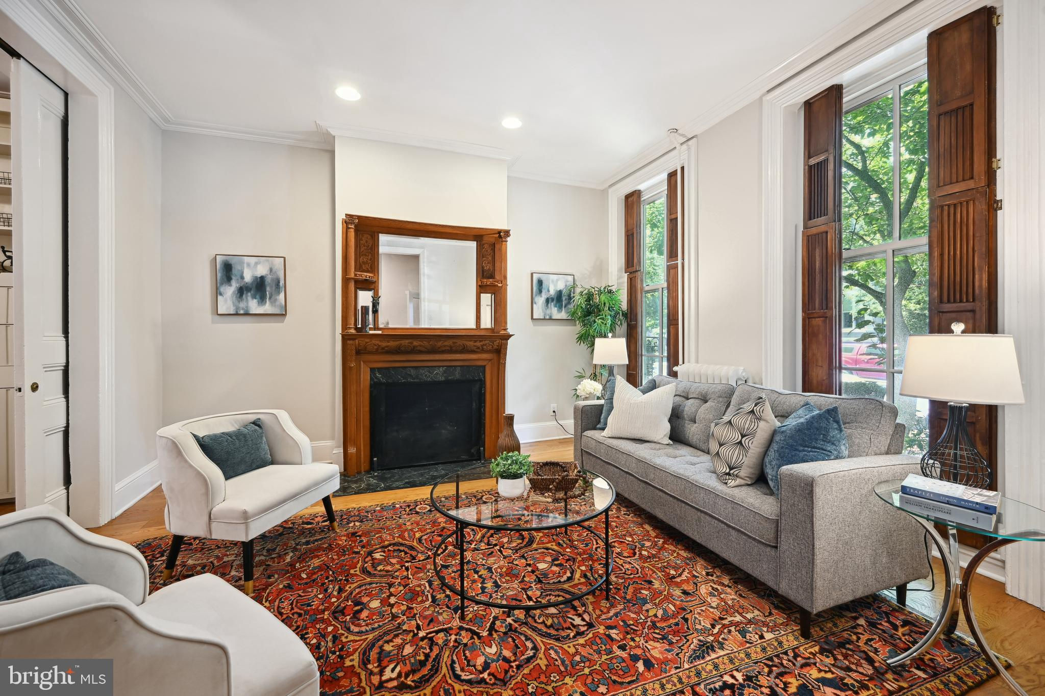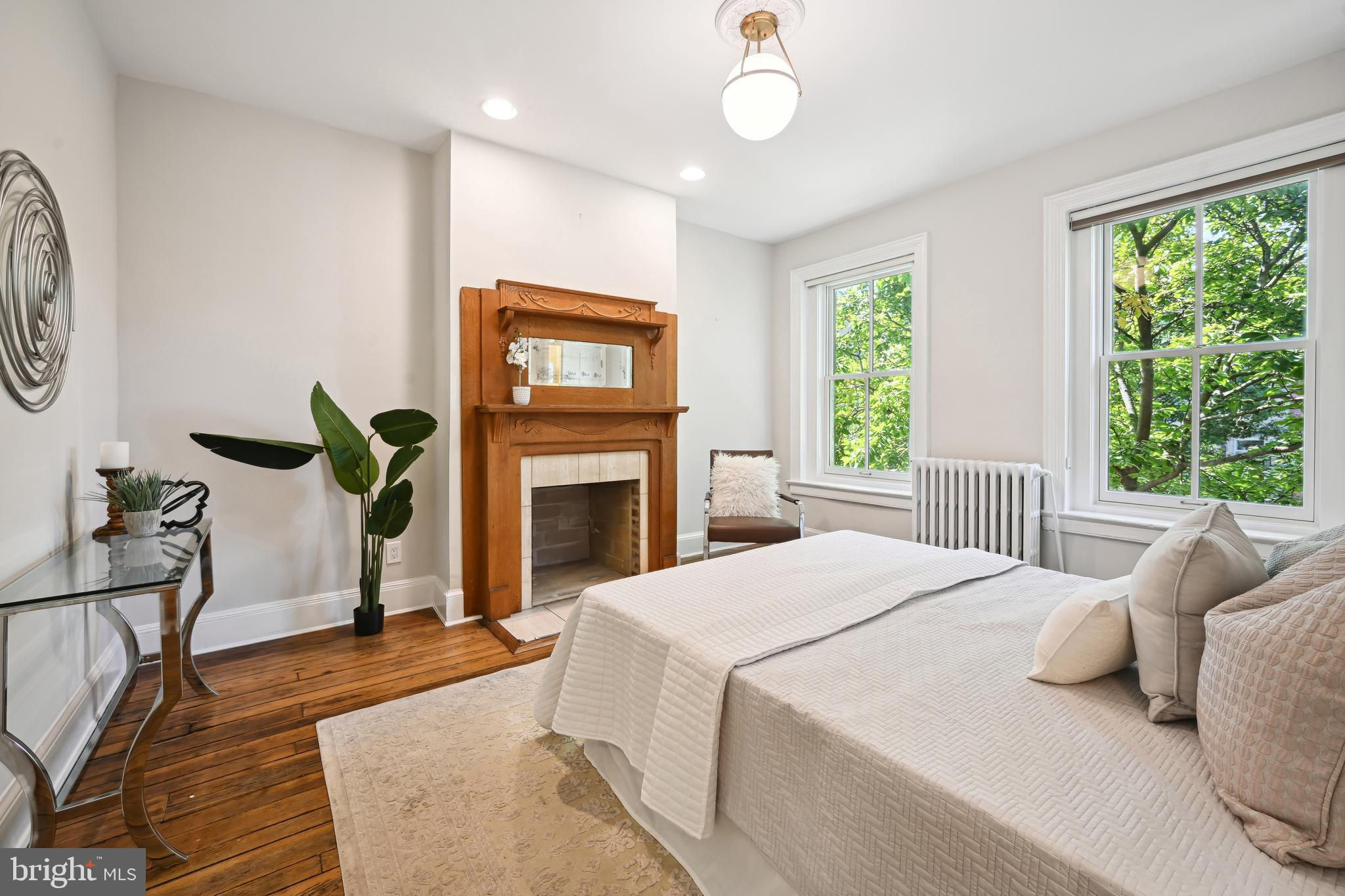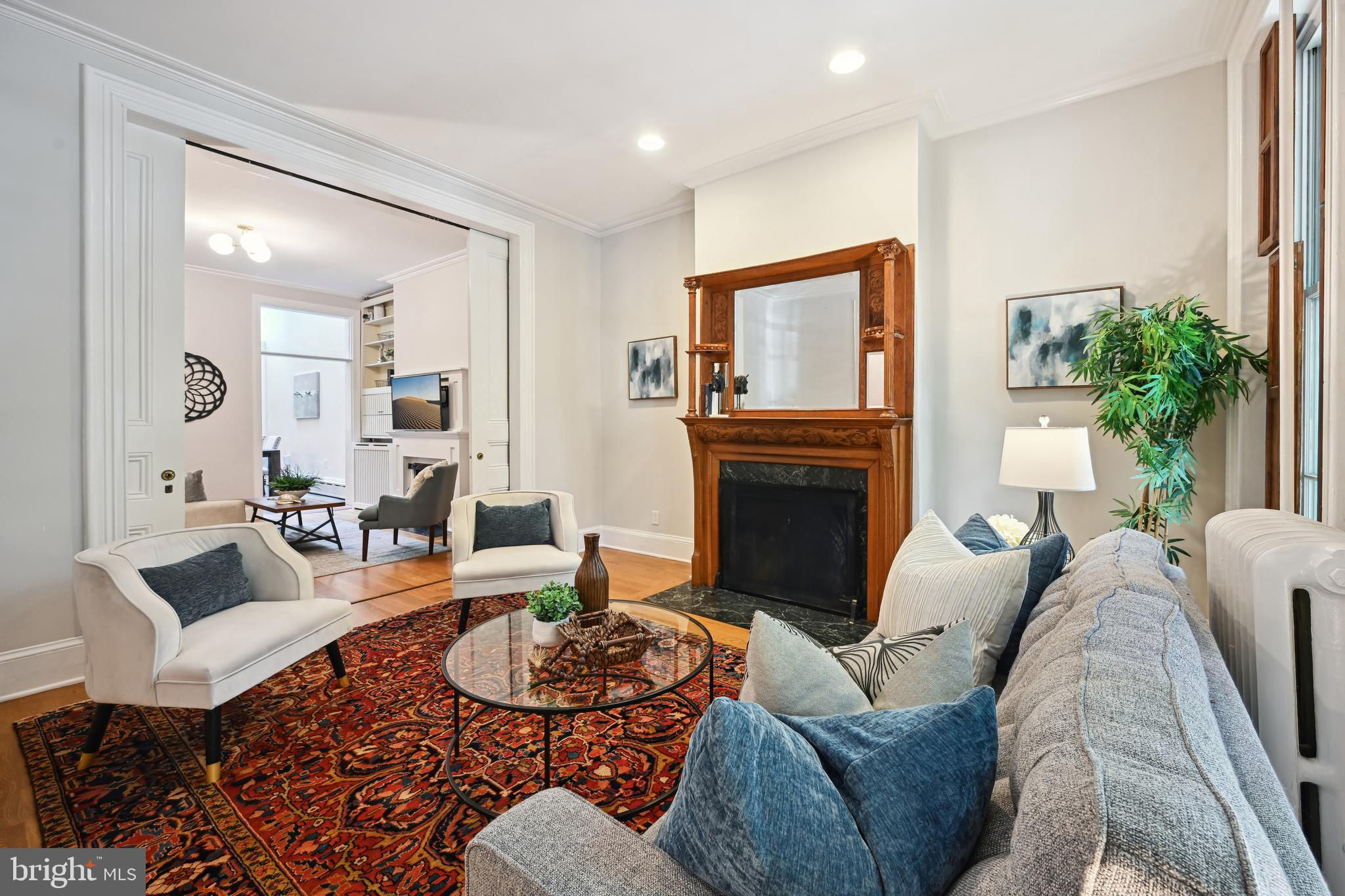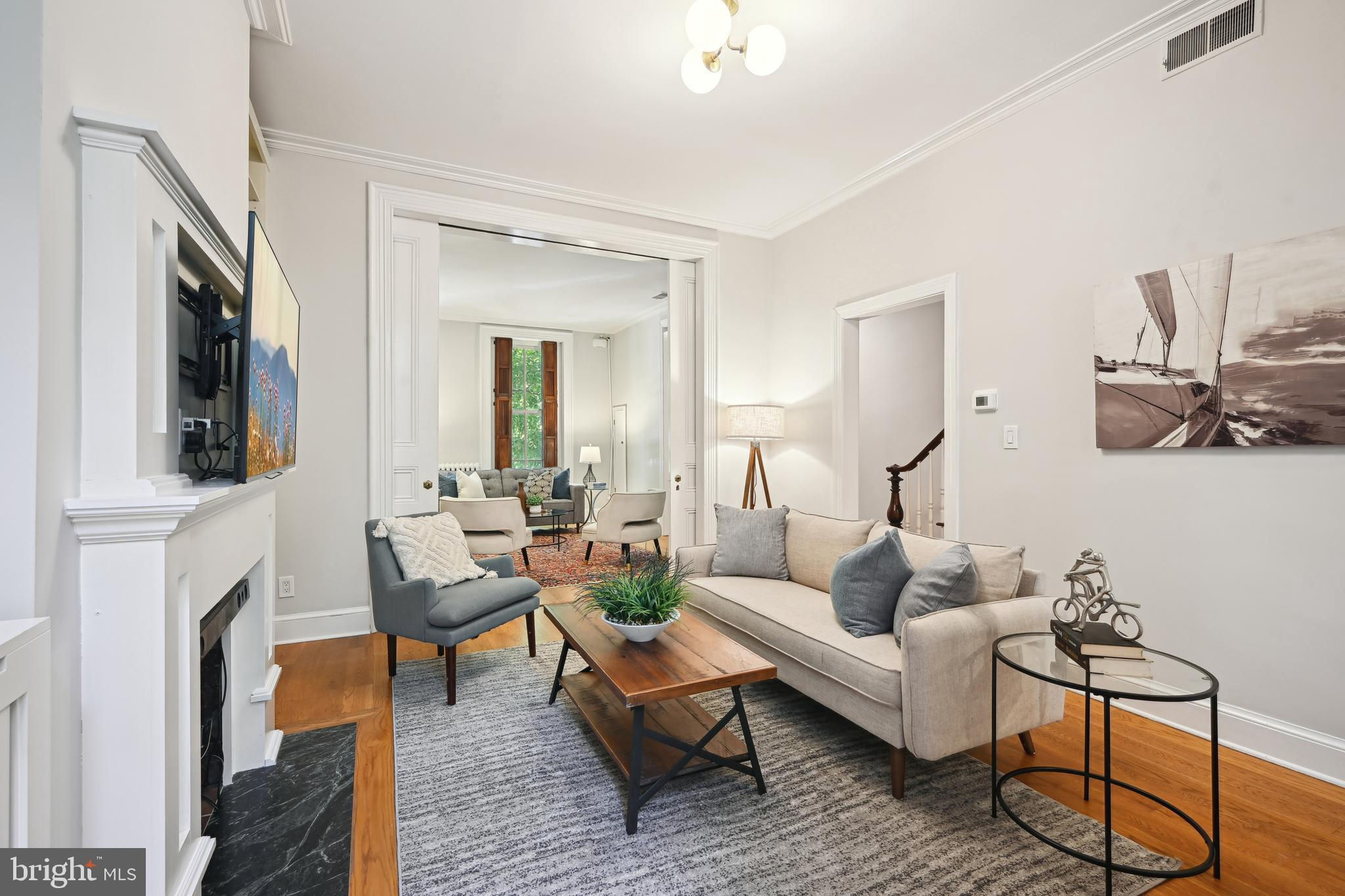 Price adjustment, come take another look! If you know Logan Circle, you love this street! Circa-1870 Federal two-story interior rowhome on a quiet, charming, one-way street close to all Logan Circle has to offer. Over 1900 square feet, three bedrooms, two full baths, and one-half bath. Period details, pocket doors with engraved hardware, high ceilings, 3 fireplaces, and Pella windows. The kitchen offers a large separate dining space, a breakfast bar, and a double-height ceiling flooded with natural light. Custom built-in cabinets and pantry. A separate laundry/mudroom leads to the private fenced patio for entertaining and a one-car parking spot,