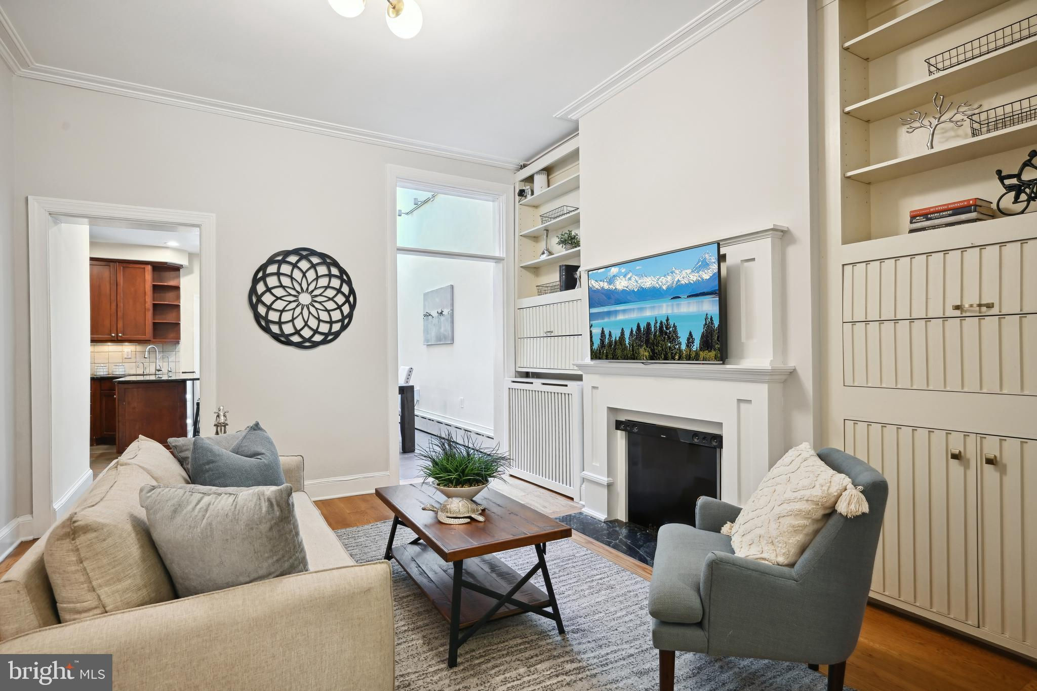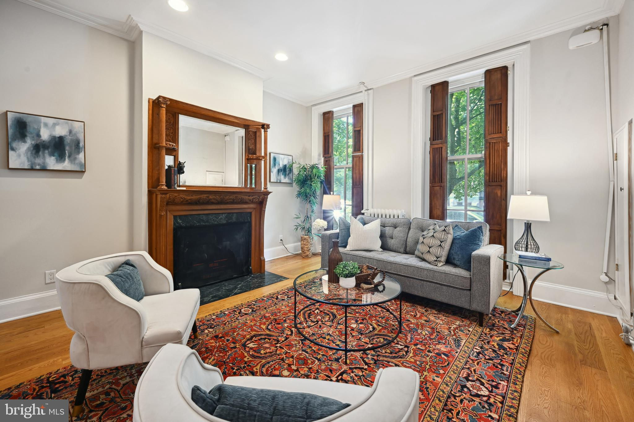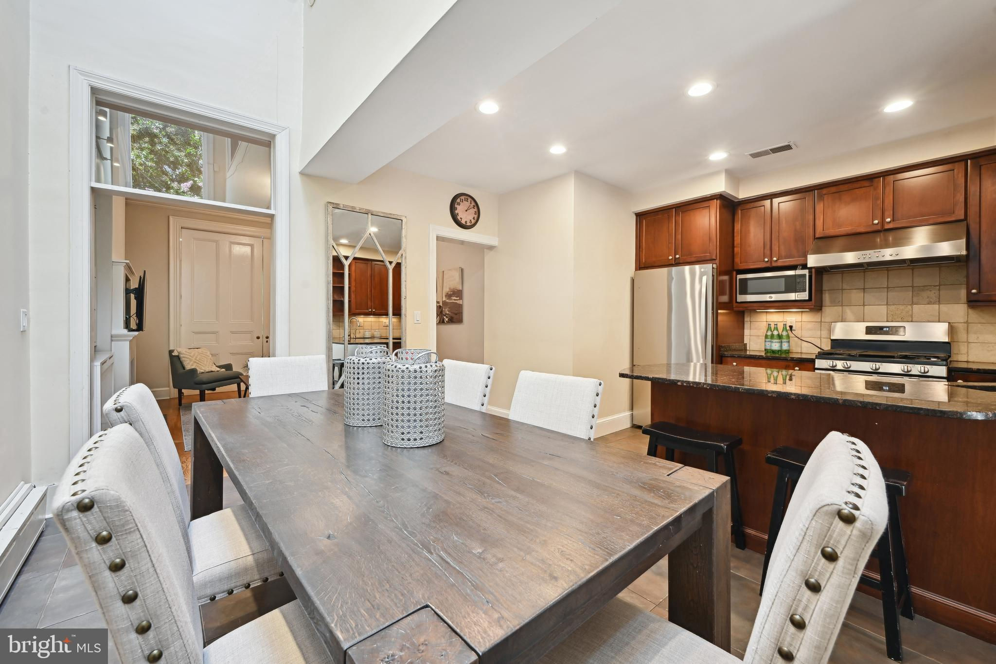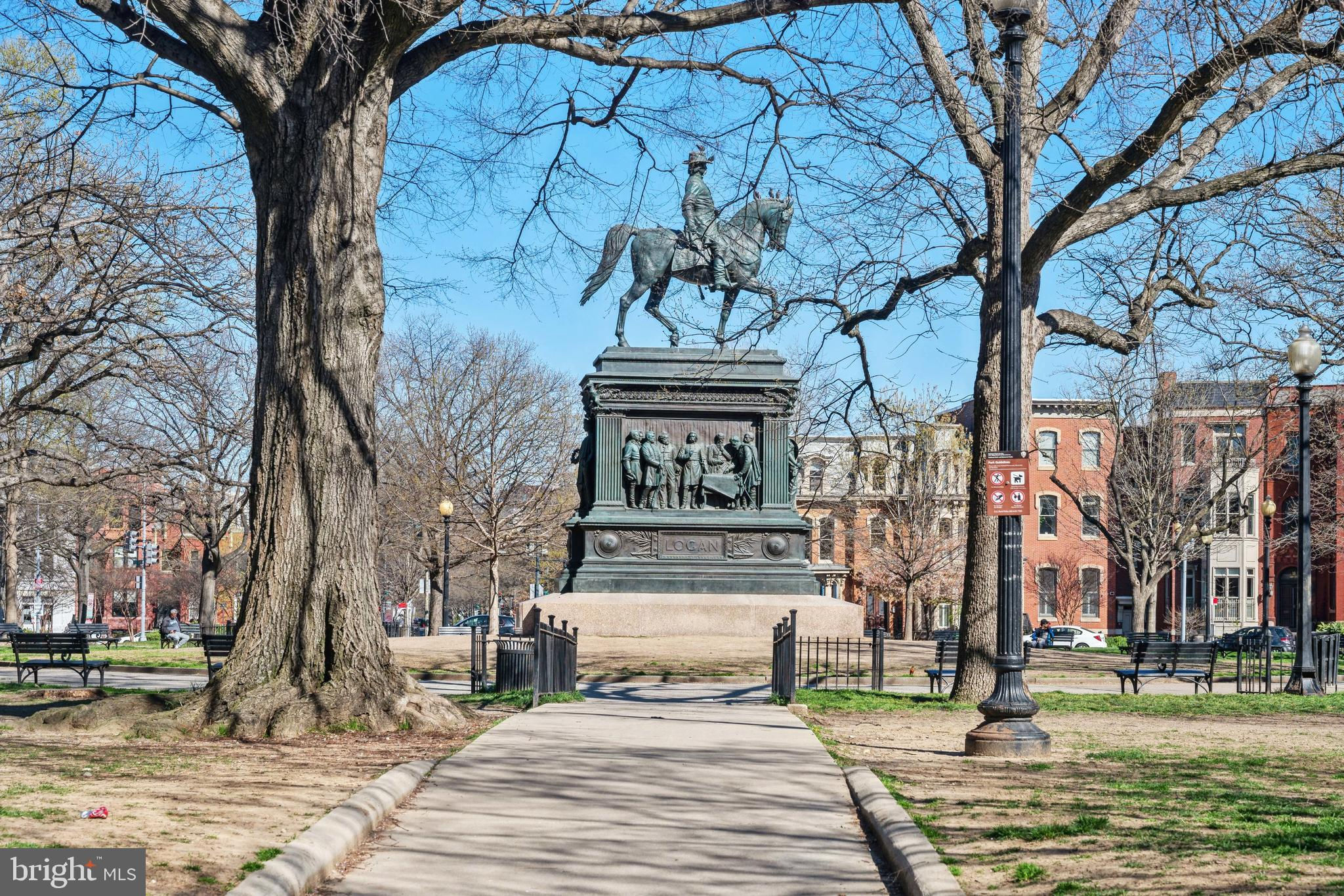 Price adjustment, come take another look! If you know Logan Circle, you love this street! Circa-1870 Federal two-story interior rowhome on a quiet, charming, one-way street close to all Logan Circle has to offer. Over 1900 square feet, three bedrooms, two full baths, and one-half bath. Period details, pocket doors with engraved hardware, high ceilings, 3 fireplaces, and Pella windows. The kitchen offers a large separate dining space, a breakfast bar, and a double-height ceiling flooded with natural light. Custom built-in cabinets and pantry. A separate laundry/mudroom leads to the private fenced patio for entertaining and a one-car parking spot,