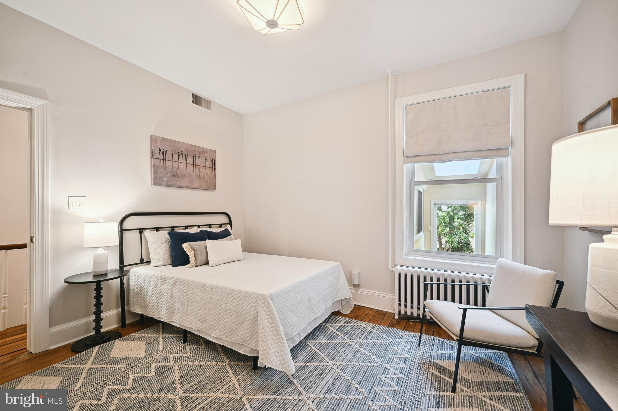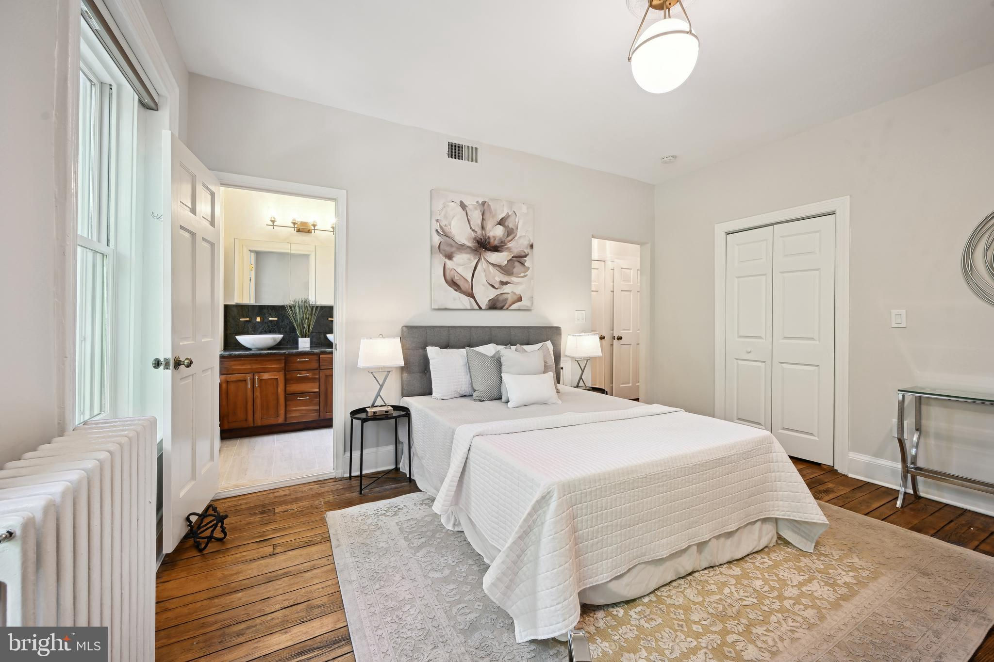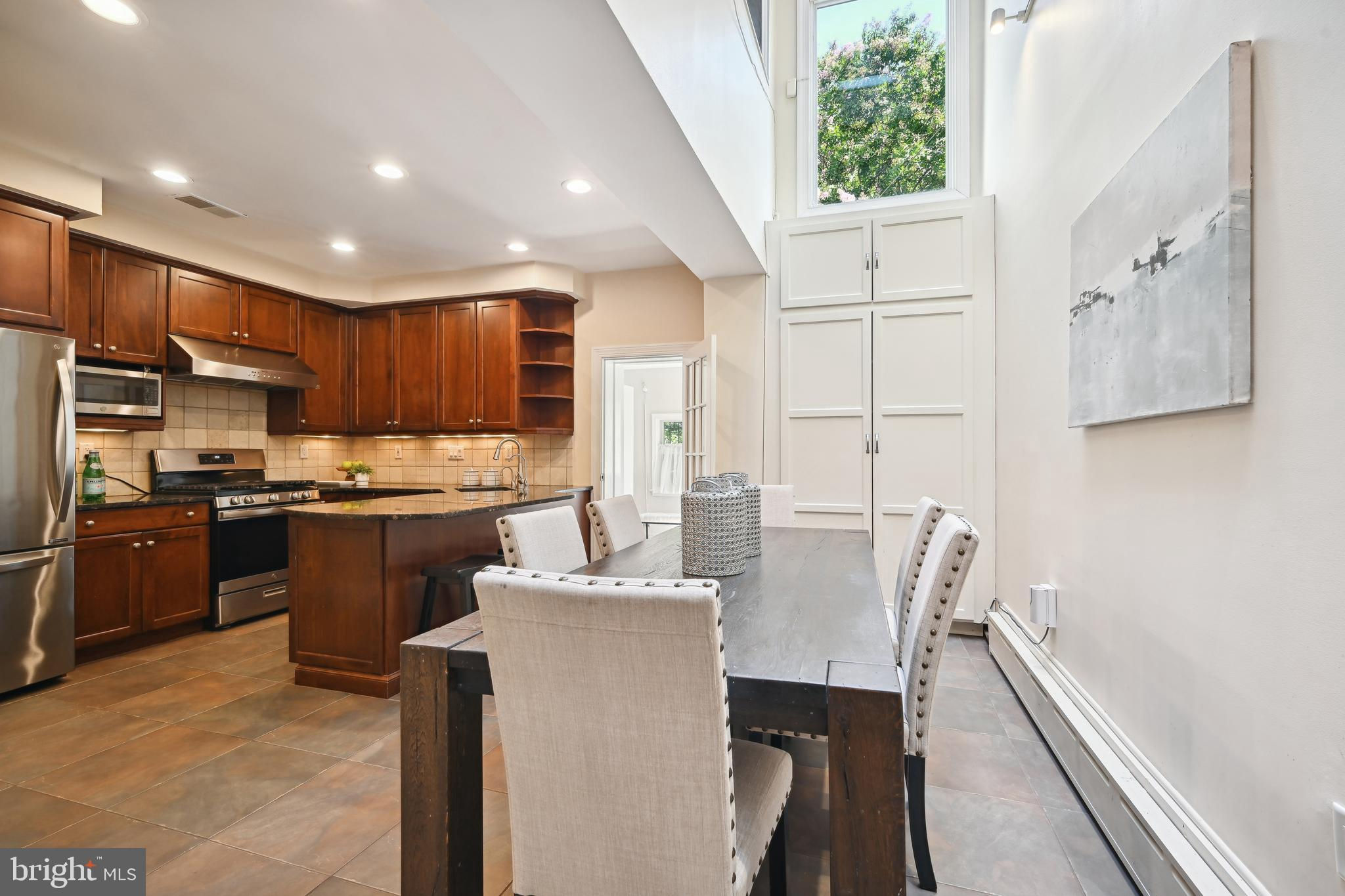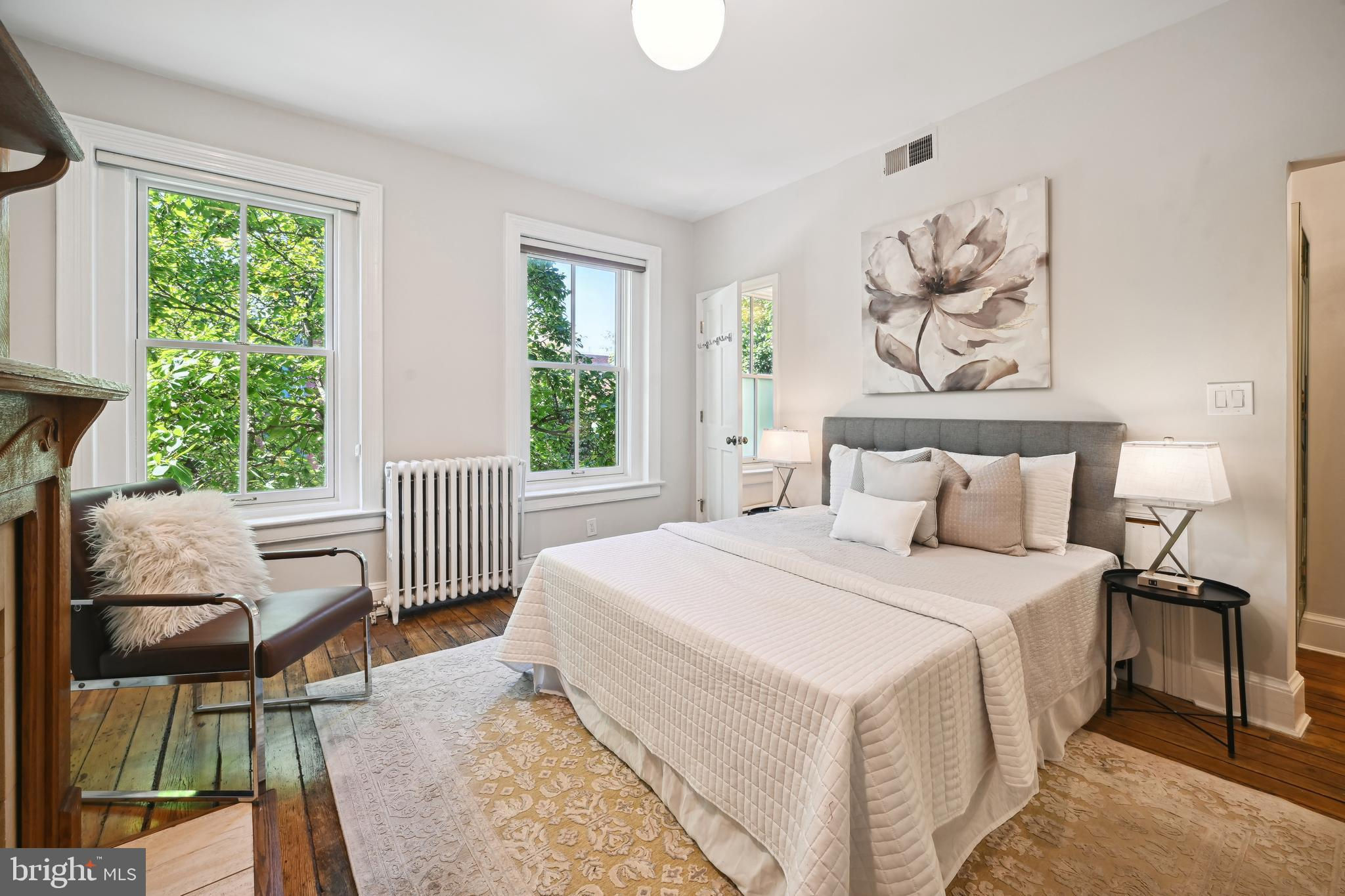 Price adjustment, come take another look! If you know Logan Circle, you love this street! Circa-1870 Federal two-story interior rowhome on a quiet, charming, one-way street close to all Logan Circle has to offer. Over 1900 square feet, three bedrooms, two full baths, and one-half bath. Period details, pocket doors with engraved hardware, high ceilings, 3 fireplaces, and Pella windows. The kitchen offers a large separate dining space, a breakfast bar, and a double-height ceiling flooded with natural light. Custom built-in cabinets and pantry. A separate laundry/mudroom leads to the private fenced patio for entertaining and a one-car parking spot,