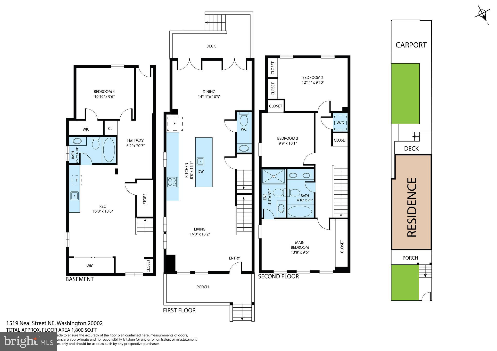 SECURE PARKING FOR TWO VEHICLES, ADDITIONAL WASHER/DRYEER HOOKUP IN BASEMENT Please allow me to present 1519 Neal Street, a stunningly renovated end unit townhome nestled in the Trinidad neighborhood in the heart of NE Washington, DC. Come and see what happens when modern convenience is seamlessly blended with classic charm. Boasting a top-to-bottom renovation, this 4 bedroom, 3.5 bath home showcases brand new features throughout, including a brand new roof, newly installed state-of-the-art appliances, and sleek luxury flooring, ensuring both style, functionality, and durability for its new owners.. Three of the four bedrooms, including the primary bedroom are located on the top floor. The many windows allow for tons of natural light and great views of the surrounding area. The basement houses the 4th bedroom, a full bath, additional washer/dryer hookup, and a convenient kitchenette which includes a wine cooler. This space offers endless possibilities for additional living space, entertaining guests, or even income generation. The main floor is home to the gourmet kitchen which comes with brand new matching stainless steel "smart" appliances, and soft close cabinetry for that extra luxurious touch. An expansive island contains the elegant farmhouse kitchen sink and has room for seating. The living and dining areas are also located on this floor with seamless access to the backyard. Step outside and discover the large new deck that overlooks the lush green backyard space, perfect for outdoor gatherings and relaxing weekends.Privacy is paramount with a newly installed backyard privacy fence providing a serene oasis in the midst of the bustling city. Enjoy the convenience of backyard parking and a remote-controlled garage door, making coming home a breeze. Your new home is steps away from the H Street corridor, known for its nightlife, restaurants, farmers’ market, festivals and much more. Apart from the “Corridor” you will also have easy access to the Union Market district with its range of shopping, dining and entertainment options.