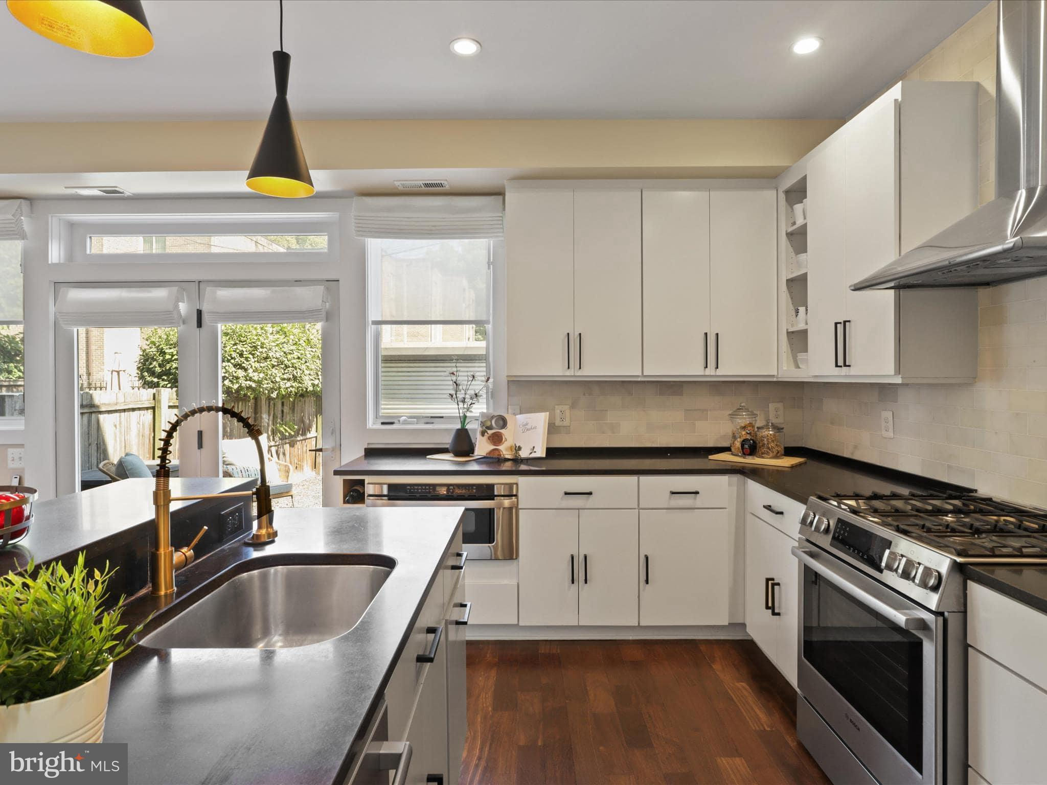 SPECIAL FINANCING MAKES THIS HOME SUPER AFFORDABLE! FIXED INTEREST RATE FULL POINT BELOW MARKET, NO POINTS, NO MORTGAGE INSURANCE AND 3% DOWN. Gorgeous light-filled and fully renovated 3 bedroom, 3.5 bathroom, semi-detached home completely rebuilt from the studs and modernized 15 years ago. With hardwood flooring throughout, the ground floor features a spacious open concept living and dining room with statement chandelier and birch patterned wall paper. The kitchen has plentiful storage including pantry, countertop seating, high-end Bosch appliances and black quartz counter tops. Two nooks can be further customized with a coat rack or wine cooler. Dual layer blinds allow for both privacy and natural light during the day, and can be programmed to open and close automatically. Newly renovated powder room features bold wall paper and a custom vanity. Under the stairs is a large coat/utility closet. All bedrooms have ensuites and built-in closets. Any of the three bedrooms can be used as a primary. Bedroom 1 features electrically operated black-out curtains and a newly renovated bathroom with heated floors, designer tiling and plentiful custom cabinetry, as well as a glass front shower/tub with spa jets. Bedroom 2 has a walk-in closet and a bathroom with shower/tub and built-in shelving. A floating staircase leads up through the airy atrium, flooded with light from the skylights and windows. The top floor is a resort-style flexible space that can be used as a bedroom, second living room or office and includes a large deck. Electric custom blinds and awning can adjust the amount of light or shade. A large walk-in closet and a bathroom with a roomy massage-jet shower complete the suite. Three of the bathrooms have touchless flush toilets. In the corridor is another under stair storage closet and stacked washer/dryer. The backyard is secured with a remote-controlled garage door and can fit 2 cars. A large wooden shed can be used for bike or garden equipment storage. Recent improvements: Conditioned crawl space with a vapor barrier and dehumidifier, 2022; New HVAC, 2023; New Washer and Dryer, 2021; Renovated bathroom and powder room, 2023; Resurfaced floors, 2021. Conveys: Security system; Electronic blinds, curtain, and controllers; Awning and hooks; Storage shed; Garden hose(s); Outdoor storage box; Coat rack
