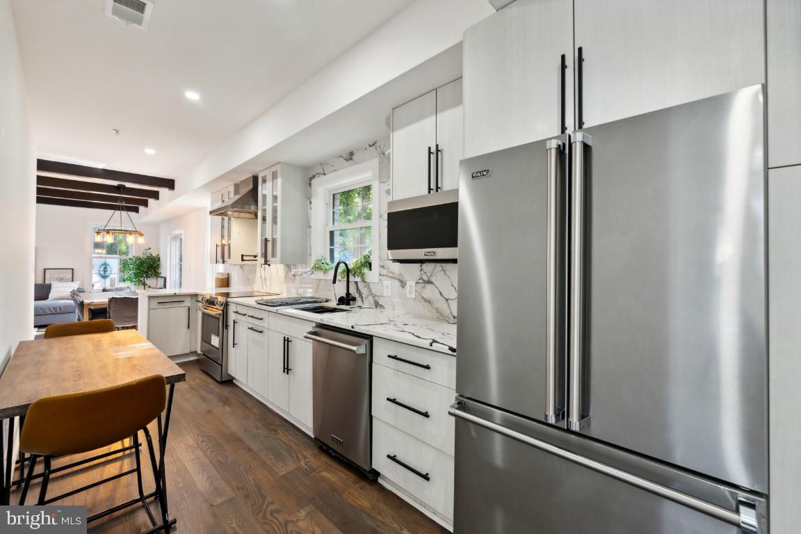 HUGE PRICE REDUCTION! Take advantage of this Fall special and fall in love with this contemporary brick SFH just 3 blocks walking distance from the metro which is freshly finished and ready for you! This new construction has everything you could want! Three finished levels of elegant and modern finishes throughout. A formal grand foyer, open concept LR and DR, a powder room and a lovely gourmet kitchen. High-end energy efficient stainless-steel appliances, a pasta faucet over the range, a window above the sink, and the gorgeous black and white Calacatta quartz backsplash matches the countertops. Stunning wood beams above the LR and DR and Birchwood flooring throughout the main and upper levels. Some of the customized features are the 1-car heated garage, window seating, stair lighting, a built-in wine rack and the laundry is conveniently located upstairs. Upstairs you will find, the master suite with a gorgeous modern bathroom including a skylight, a bidet, floating vanities and rain showerheads, 2 generously sized bedrooms, a chic hall bath, a large sitting/lounge area, and the upper level laundry with LG full size front load W/D. Additionally this home has a spacious family room in the LL, the 4th bedroom ensuite and another utility closet with the 2nd washer/dryer hook-up. There could be a possibility for a great rooftop deck but there are plenty of nearby options for fine dining and socializing. Roost, Pretzel Bakery, and Pacci's to name a few. Groceries can be from Safeway, Eastern Market, or Trader Joe’s all nearby! This home combines modern living, privacy, comfort, style and efficiency so make this urban dream come true!