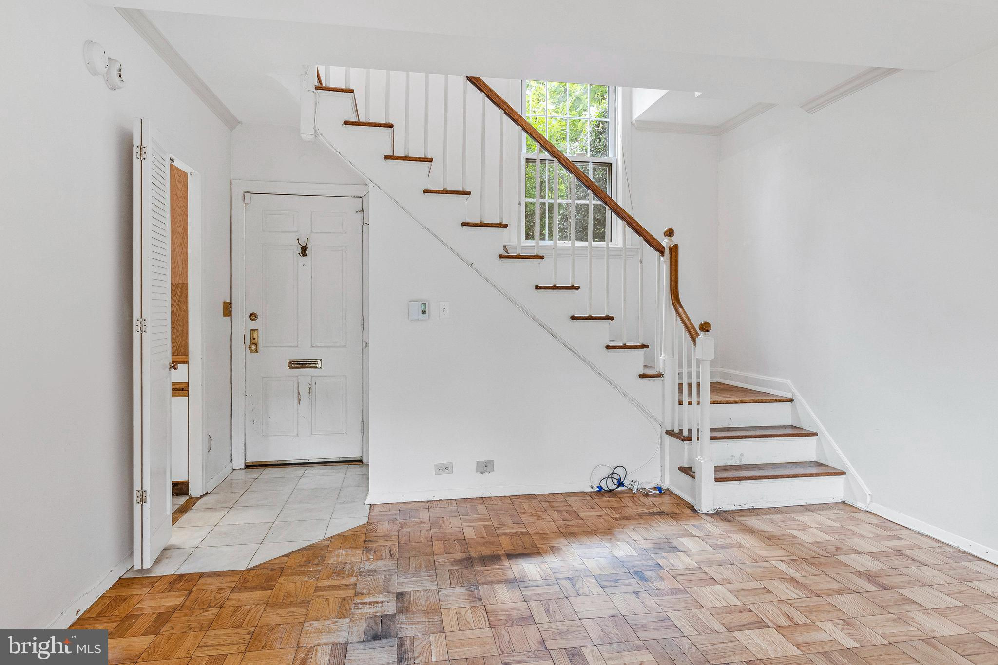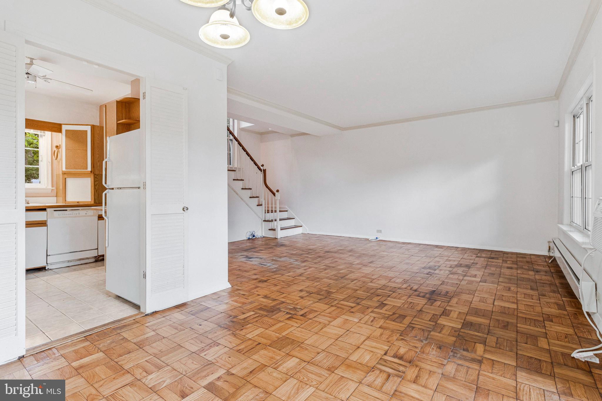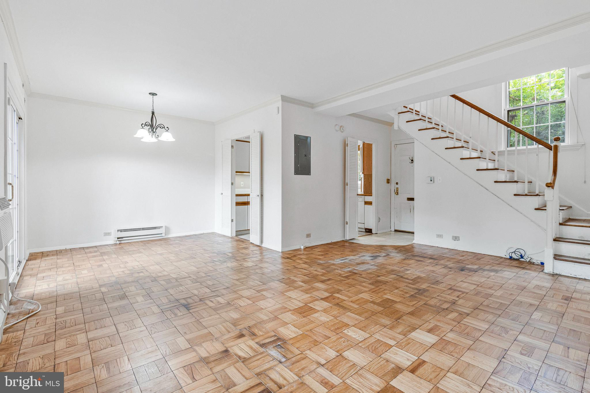 Discover an exciting opportunity in the heart of Parkfairfax, just minutes from the Pentagon, Washington, DC, and the vibrant shops and dining of Shirlington. This sought-after Washington model offers a spacious, traditional main level with a wall of windows that flood the home with natural light, opening to a generously sized paver patio. Backing to a mature tree canopy and convenient tot lot, the outdoor setting provides both privacy and a peaceful backdrop. While ready for a new owner’s vision, this home already includes important updates such as replaced windows, an upgraded electrical panel, a convenient second-level washer/dryer, and charming crown molding. Classic features like parquet hardwood floors, built-in library, and a pull-down attic add to the home’s charm and functionality. The popular Washington model boasts two levels of living space, with no units above or below the home. Set on a premium Parkfairfax street with ample parking right at the front door, this home represents one of the best values in the community—perfect for buyers looking to renovate, customize, and create instant equity in an unbeatable location. Parkfairfax is a historic community featuring a host of amenities, including three pools, tennis courts, tot lots, an exercise room, and so much more. Condo fees include water, trash, gas, and convenient six-day per week trash service. Residents benefit from easy access to public transportation and I-395, as well as to shopping, dining, nightlife and arts and entertainment in nearby Shirlington, Del Ray, and Old Town. This commuter's dream home is also minutes from The Pentagon, National Landing, and Washington, DC.