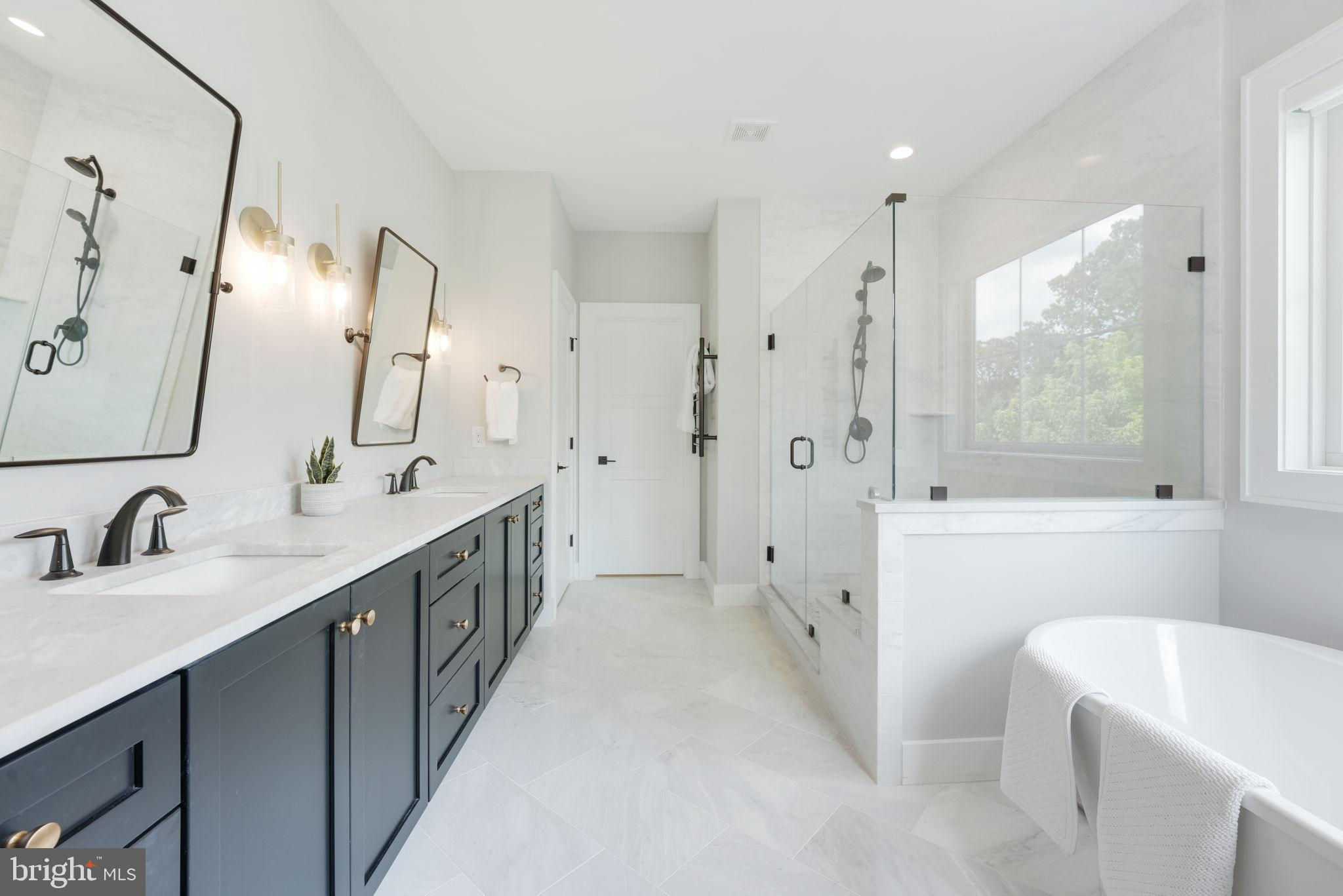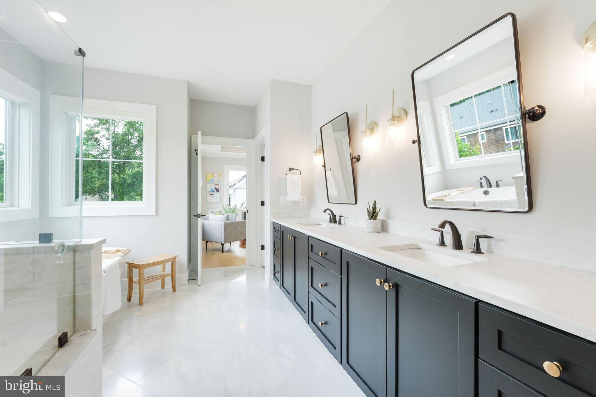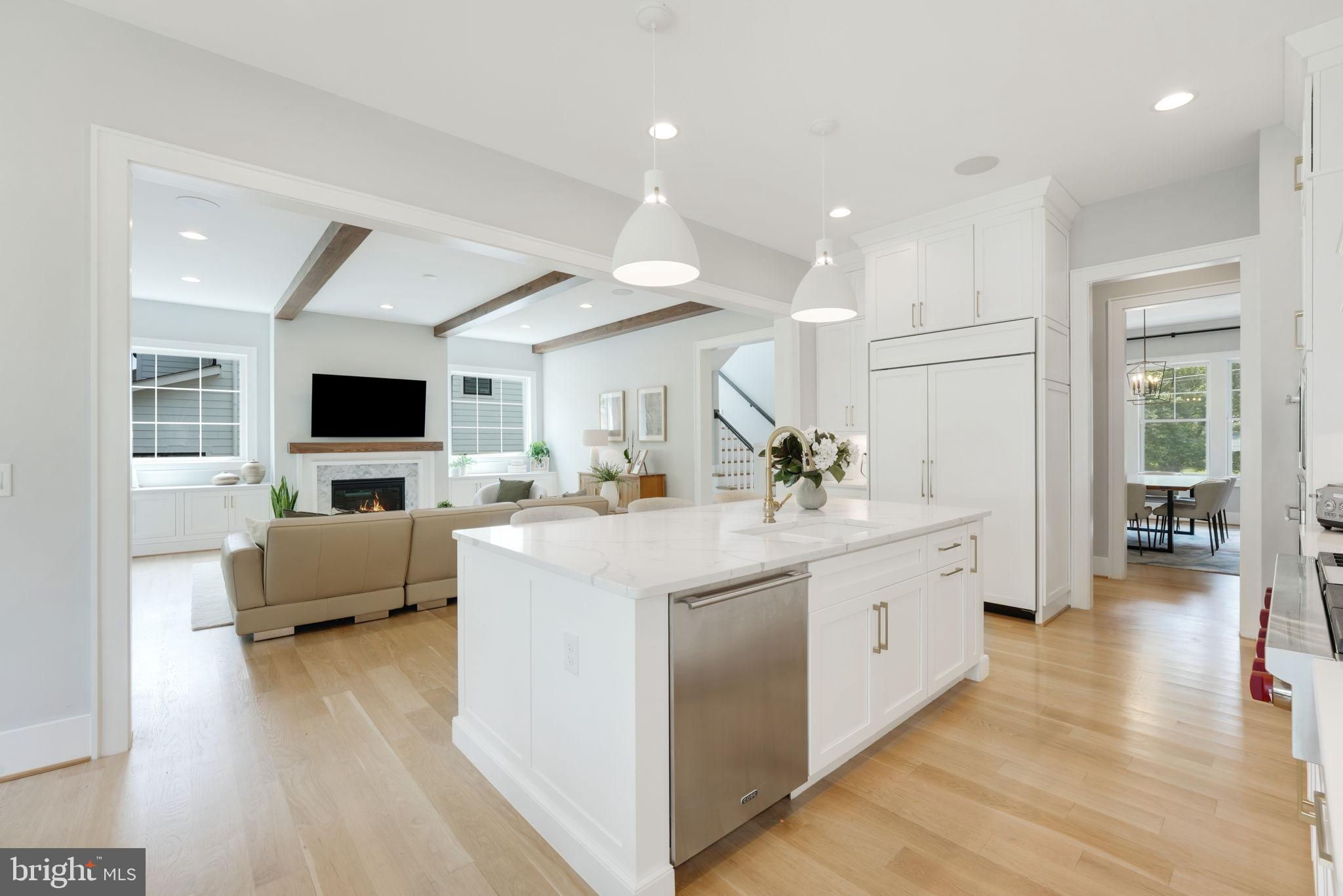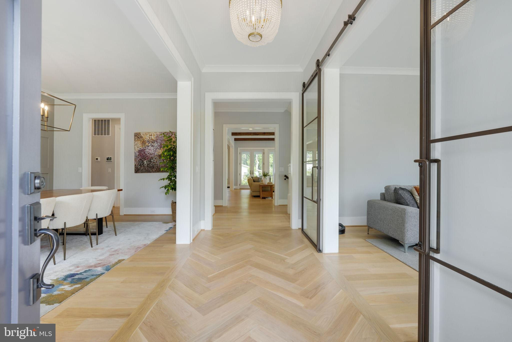 Welcome to your dream home, built by Focal Point Homes in 2022 and set on a serene lush green 0.24-acre lot, situated in sought-after Mclean. As you step through the entryway with herringbone wood floors, you'll be greeted by elegance and sophistication throughout the residence. The main level features 10-foot ceilings, while the second level offers 9-foot ceilings, enhancing the spacious and airy atmosphere. High-end features abound, including a covered/screened deck for outdoor relaxation, 5-inch white oak hardwood floors on the main and bedroom levels, designer light fixtures, recessed lighting, quartz countertops, a Sonos speaker system, a fitness room, and a basement wet bar. Every detail has been meticulously crafted, from the Kohler faucets to the glass sliding doors leading to the private formal living room. Entertain in style in the formal dining room with its accent wall, or unwind in the family room featuring striking wooden ceiling beams, a fireplace, and custom built-ins. The gourmet island kitchen is a chef's delight, boasting Wolf and Subzero appliances, full-height white cabinetry, white tile backsplash, gold-tone hardware and faucet, quartz countertops, and bar seating. Enjoy breakfast bathed in natural light in the adjacent breakfast room with its charming chandelier. The main level also offers a bedroom with a full private bathroom and walk-in closet, providing flexibility and convenience. From the family room, step outside to the stunning screened porch with stairs leading to the back lawn and privacy fence. Upstairs, discover five bedrooms, four bathrooms, and a laundry room for added convenience. The primary bedroom suite is a luxurious retreat, complete with a tray ceiling, abundant windows, an expansive walk-in closet, and a stunning en suite bath featuring a large dual sink vanity, glass-enclosed shower, and modern soaking tub. Two secondary bedrooms have attached private bathrooms, while two share a dual vanity hall bathroom. The finished basement offers endless possibilities for recreation and relaxation, with carpeting in the large recreation space, a bedroom with a shared full bathroom, a mirrored exercise room, and a prewired media room. Entertain guests in style at the wet bar with bar fridge and seating. Living in McLean offers an unparalleled blend of sophistication and tranquility, nestled in the heart of Northern Virginia's lush landscapes. Mclean residents enjoy world-class amenities, including high-end shopping at Tysons Galleria, gourmet dining experiences, and premier educational institutions. With its proximity to Washington, D.C., McLean provides the perfect balance of serene suburban living and vibrant urban convenience, making it an ideal locale for those that seek the finest in both lifestyle and convenience. This property is part of the prestigious Fairfax County Public Schools district, with McLean High School, Longfellow Middle School, and Kent Gardens Elementary School. Don't miss your chance to make this exquisite property your own. Schedule a showing today!
