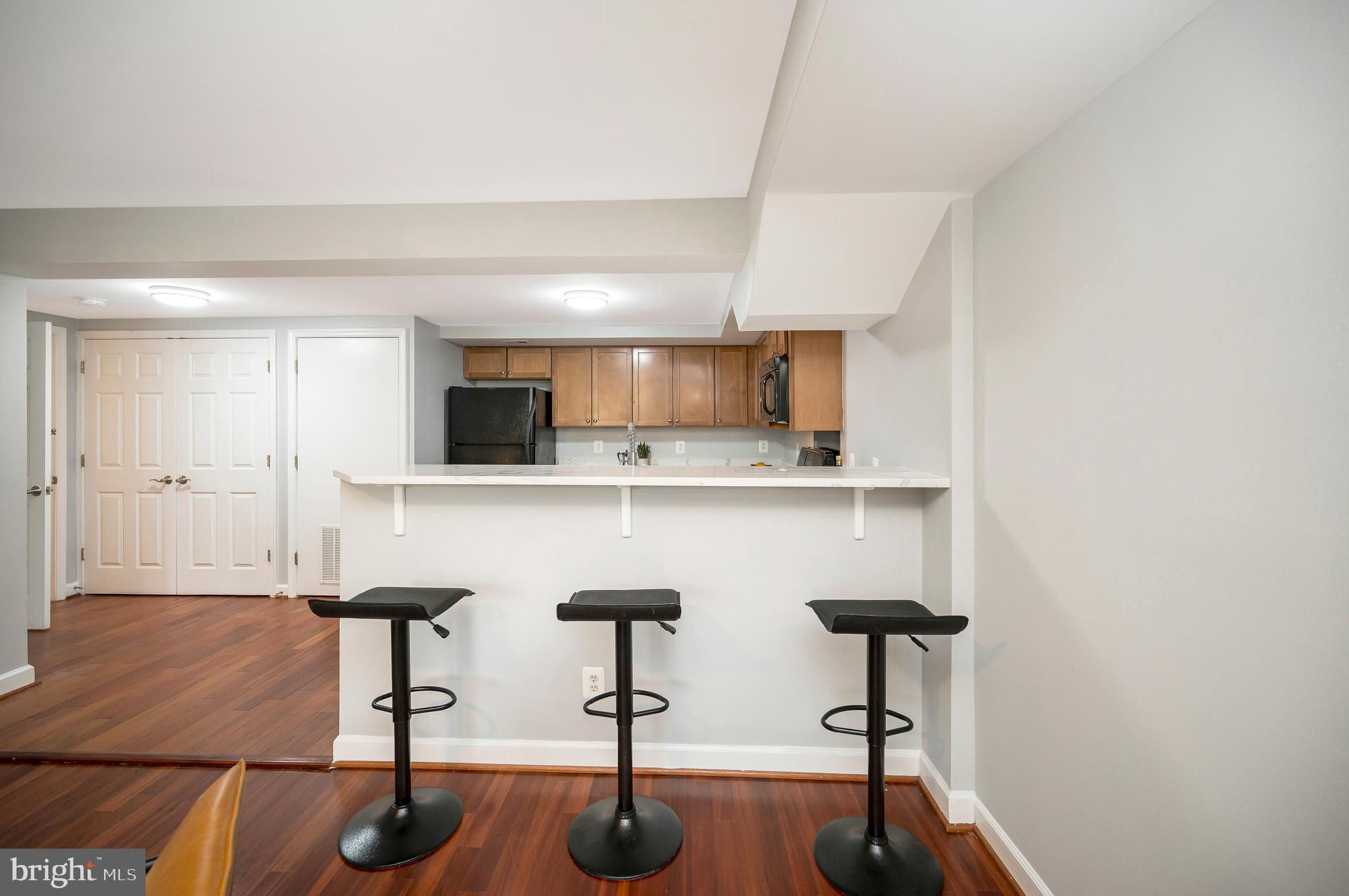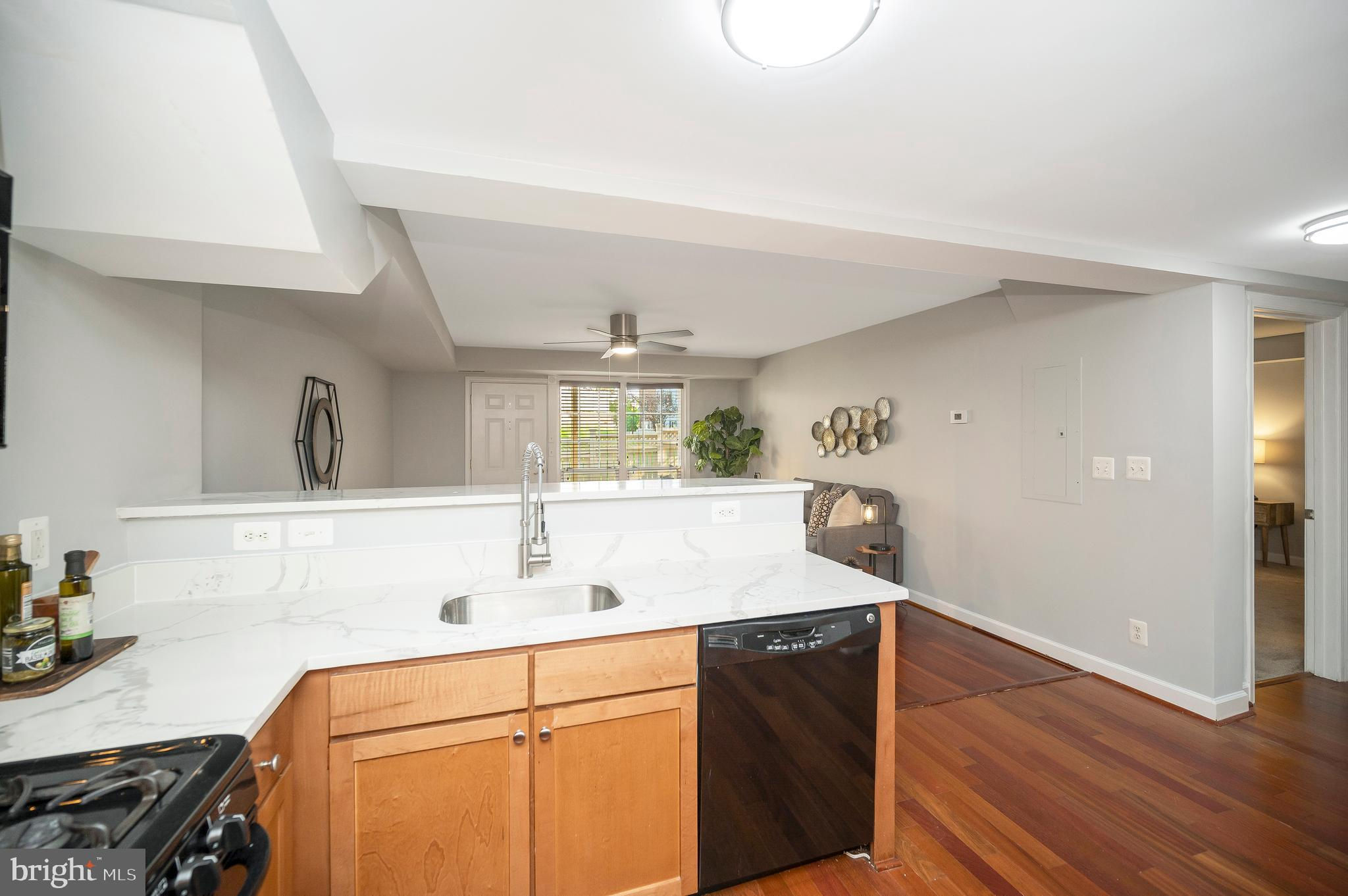 Welcome to this beautifully updated, large corner unit condo with a spacious 1-bedroom, 1-bath layout, located on the main level for easy access. This home is freshly painted throughout, highlighting the gleaming wood floors and creating a warm and inviting atmosphere. The open floor plan seamlessly connects the living area to the updated kitchen, which features new quartz countertops, a breakfast bar, and black appliances, including a sleek stainless steel sink. Modern touches include new light fixtures and updated plumbing hardware, providing a contemporary look and feel. The bedroom offers plush carpet and a large walk-in closet, perfect for all your storage needs. The bathroom is equipped with ceramic tile flooring, adding a touch of elegance and practicality. Enjoy the convenience of an in-unit full-size washer and dryer, making laundry days a breeze. One of the standout features of this home is the super large patio, offering ample space for outdoor relaxation, entertaining, or gardening in a private setting. Residents of this community can take advantage of a variety of fantastic amenities, including an outdoor pool, a well-equipped exercise room, and a community center, enhancing your living experience. This condo's location is exceptionally convenient, with a metro bus stop just a short walk away, providing easy access to the entire region. The property is close to major roads, including Interstate 395, making commuting a breeze whether you're heading to work or exploring the area. You'll find yourself near a variety of shops, schools, and restaurants, as well as the vibrant community of Shirlington with its unique boutiques, dining options, and entertainment venues. The condo is also in close proximity to a hospital, Old Town Alexandria, the Pentagon, Washington, DC, and the National Harbor, offering endless options for dining, shopping, and cultural experiences. For those who travel frequently, the airport is also just a short drive or metro away, adding to the appeal of this ideally situated home. This property is not only perfect for those looking for a comfortable and convenient place to call home, but it's also an excellent opportunity. This combination of location, amenities, and potential makes this condo a standout choice in today’s market. Don’t miss your chance to own this exceptional property in a prime location with everything you need at your doorstep. Whether you're a first-time buyer, a busy professional, or an investor looking for a reliable income stream, this condo offers something for everyone. Schedule your showing today and discover why this home is the perfect blend of comfort, convenience, and value!
