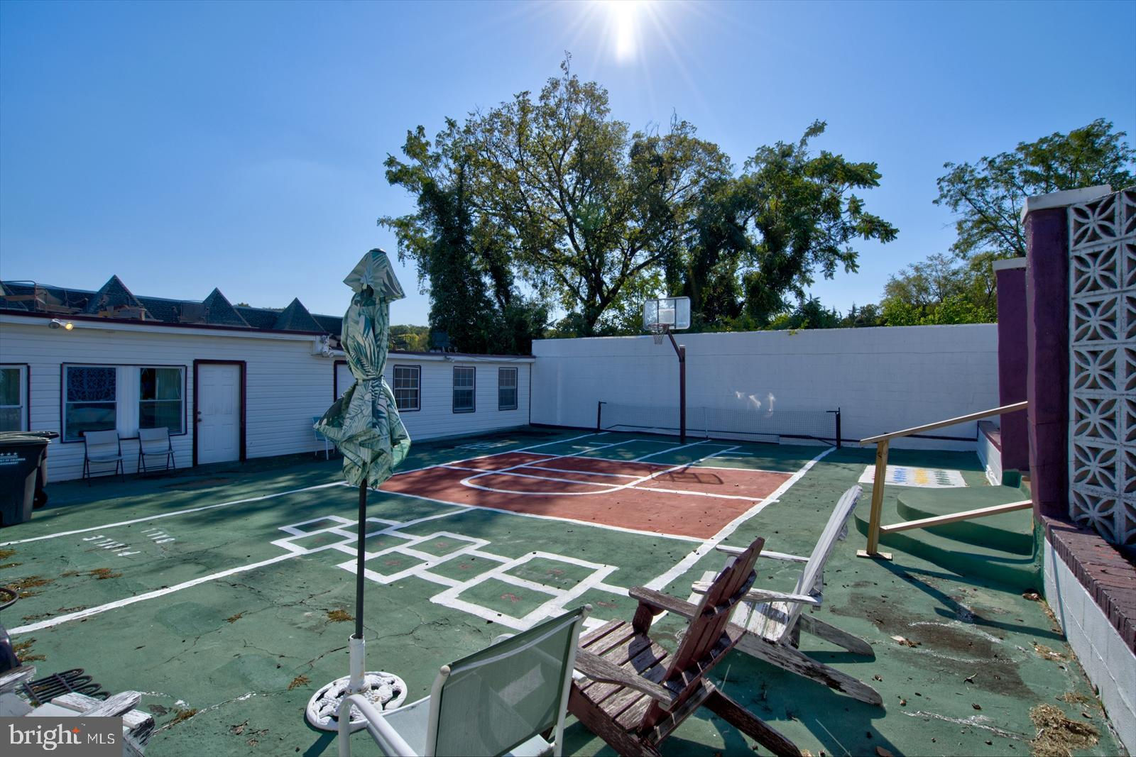 Welcome to the Epitome of Imagination! The best-kept secret in Hillcrest! 1606 25th Avenue SE offers much space, starting with the wide, spacious front porch with sunshades. As you enter the home, the formal living room with hardwood floors is to the left; past the formal living room is the separate dining room with hardwood floors, centered. Off the dining room, you'll find the gourmet kitchen, which has a place for everything. It's a Chef's Dream! 42" KfratMaid cabinetry, large eat-in kitchen, beautiful Sile Stone countertops, 48" refrigerator, Kitchenaid Satin Stainless Steel appliances, built-in microwave, and double ovens for those holiday feasts! Breakfast nook area with recess lighting. There are two directions from the breakfast nook area to enter the courtyard. One directly off the breakfast nook area, and the other walk down through the double glass doors into the sink-in sizeable family room with high ceiling, recessed lighting, and a wood-burning fireplace; through the 2nd glass French doors, you can enter the courtyard where you'll find the owners' outdoor kitchen/grill patio area. The patio area has a 24" motorized retractable awning with remote control. (There used to be a pool, but the owners had the pool filled). There is a pool house and a storage shed beside the pool house in the courtyard. Large expanded single-family home with detached oversized garage. Above the oversized garage, it's your getaway: game room, study, office, bedroom, whatever you desire, you can create! Two large rooms attached to the oversized garage; the owners made the first large room into a game room. The pool table, Ping-Pong table, and football table occupy this room. The second large room is partially a workstation and a separate storage area. The rooftop deck is above the two large rooms attached to the garage. Did I mention the walk-out patio/deck above the game rooms and the sports court?/basketball court? Get your Game On! Plenty of space for all children, adults, and animals! The family room offers a high ceiling, a wood-burning fireplace, and recess lighting. Off the family room, you enter what used to be the fourth bedroom, where the owners removed the walls and made a large sitting room/informal living/family room (you can create what you want). Then, walk up a few stairs back to the main level, where there is another living room/informal living room/office area (whatever your creation takes you). The second living area opens up to the entry of the main entrance, which ties you back to the formal living room. The home is very entertaining and relaxing! The main level has a half bath and a separate laundry area. The basement has a built-in bookcase, a full bathroom, and a storage area used as a pantry. The upper level has three large bedrooms and two bathrooms. The primary privacy room has an ensuite, a Jacuzzi jetted tub, a separate shower, a walk-in dressing room, and recess lighting that’s lighting up the halls! You can create so much with this home that you must see for yourself! It is in a great location! Easy access to Downtown DC, VA, and MD. Build this beauty to your beauty!