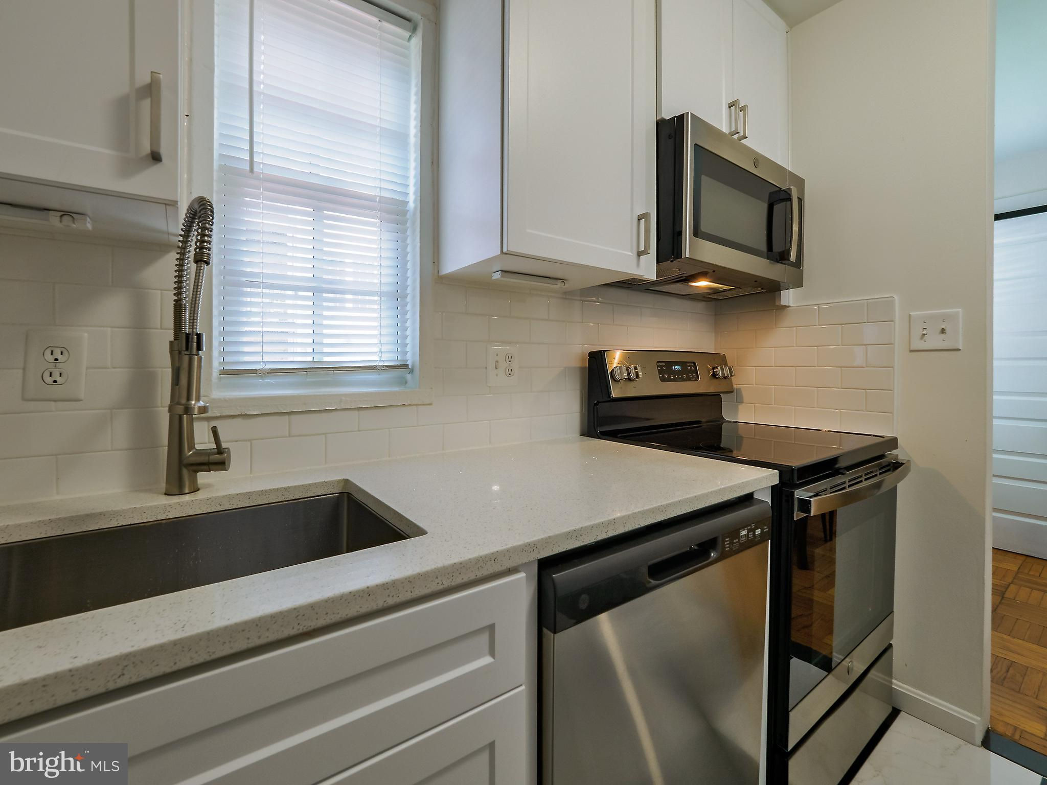 Wonderful first floor residence in sought after Potowmack Crossing... Pristine and polished this renovated unit shows like a model with a true Chef's Kitchen and gleaming wood floors. Illuminated by sunlight it has an open and airy feeling while also being cozy. It is the perfect pied a terre for someone on the go! Steps to the bike path and all that Old Town offers... restaurants, boutiques, bars, banks, grocery stores, wine shops... everything everyone visits Old Town for. Also a quick walk to metro as well as National Airport... you can literally walk to catch your flight. And just one stop sign to the George Washington Parkway.