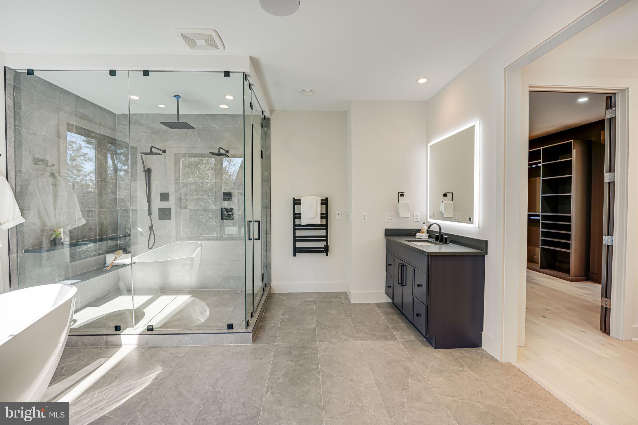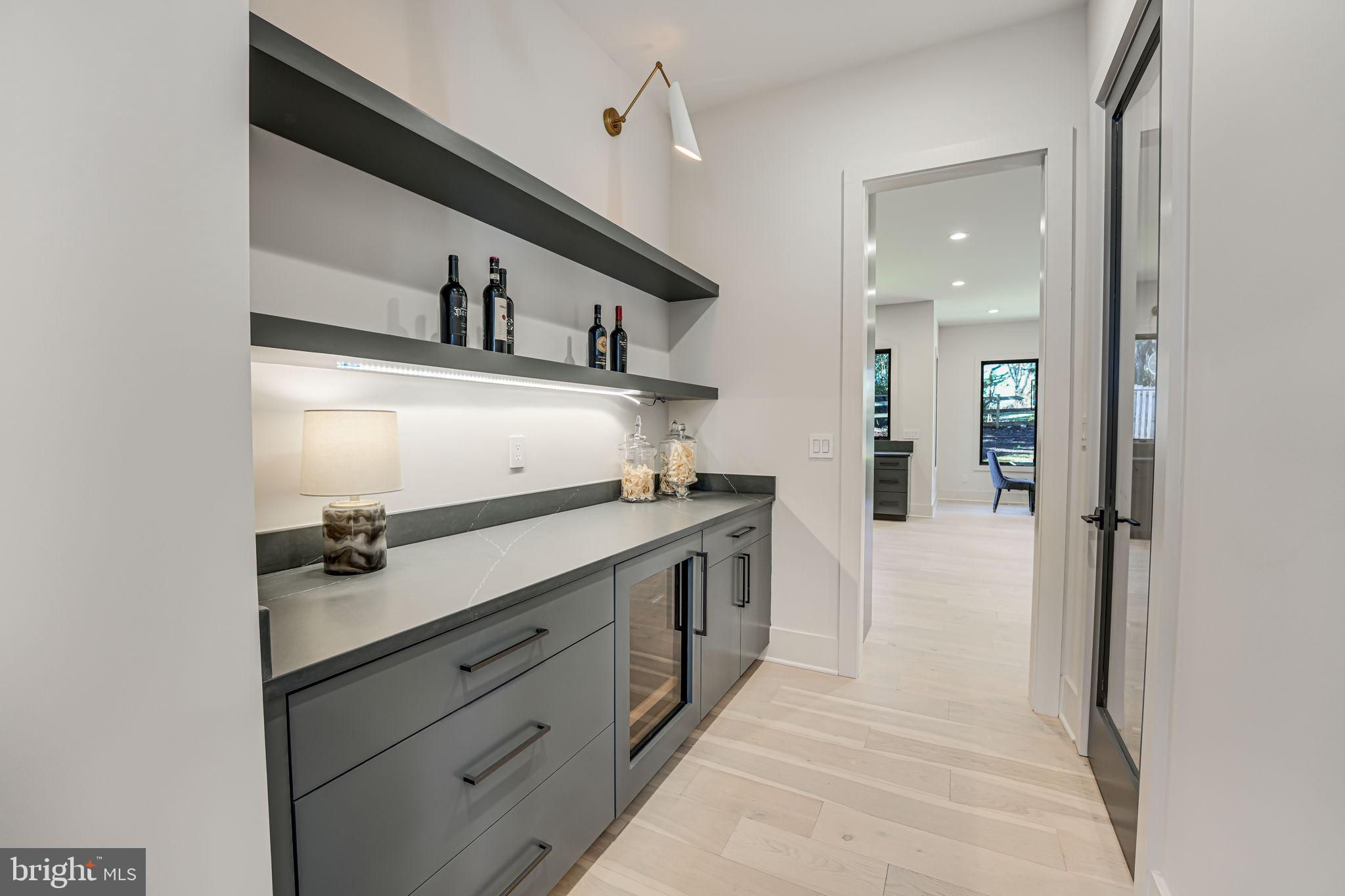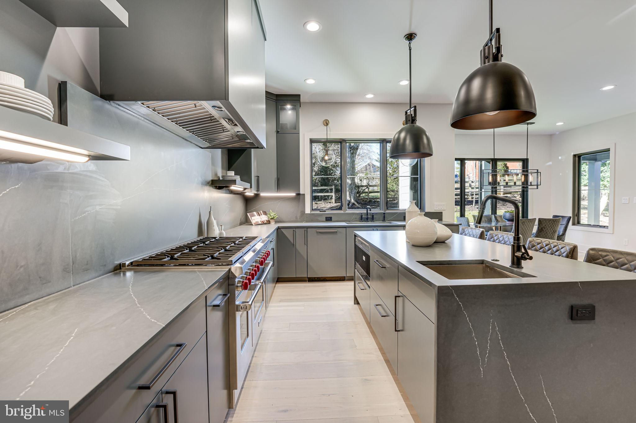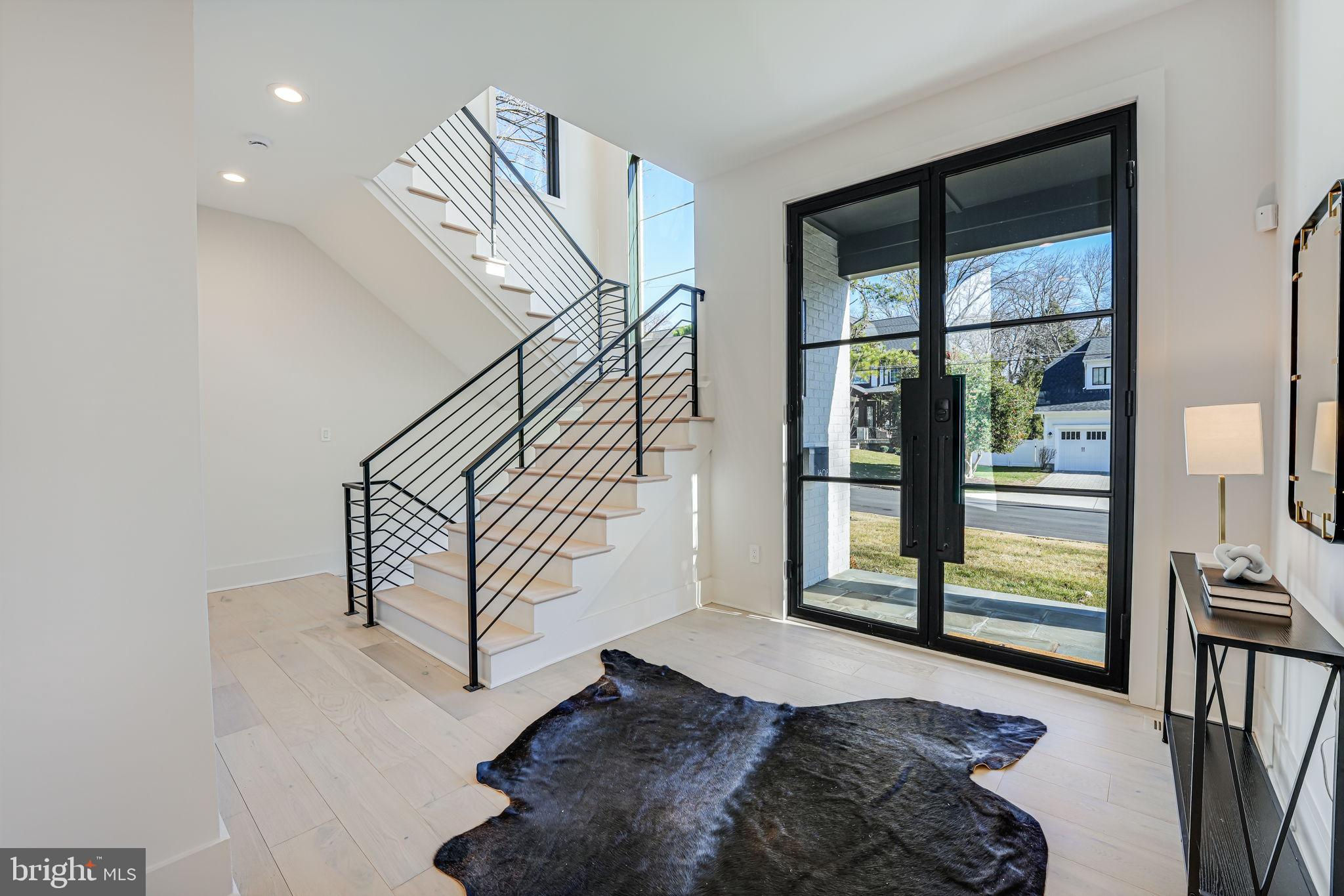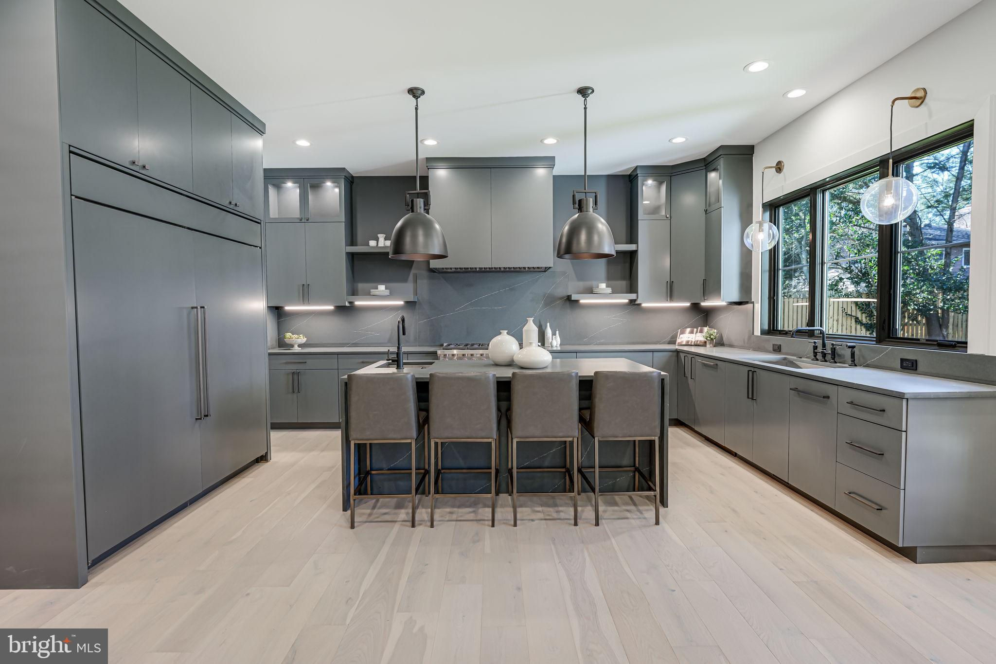 Elevate your lifestyle in this magnificent Modern Tudor masterpiece built by Georgetown Homes. The home offers an impressive 6 bedrooms and 6.5 baths, featuring a convenient 8' tall cab elevator servicing all floors. As you step inside, an inviting sun-filled formal entry beckons, setting the stage for the opulence that awaits. The entire first floor boasts exquisite white oak wire-brushed engineered hardwood floors, creating a seamless and sophisticated canvas for the home. Custom steel railings with horizontal steel pickets infuse a modern aesthetic and guide you through this architecturally distinguished residence. With 10-foot ceilings on the main floor, the sense of space and grandeur is undeniable, while the basement and upper levels maintain a comfortable 9-foot ceiling height, ensuring a harmonious flow. For culinary enthusiasts, the chef's dream kitchen package is nothing short of extraordinary. Adorned with beautiful custom maple cabinets in a custom paint color, stacked wall frameless cabinets that reach the ceiling, an oversized waterfall island with a convenient prep sink, and top-of-the-line Sub-Zero and Wolf appliances, this kitchen is a true masterpiece. The main level further impresses with a generously sized dining room, a spacious living room, a screened-in porch, and a flexible room that features an ensuite full bathroom, providing the versatility to serve as an additional bedroom or a study. The primary suite includes a luxurious custom closet, and the master bathroom boasts a freestanding soaking tub and a generously sized custom shower. A heated towel rack adds a touch of comfort, transforming daily routines into moments of indulgence. Three additional bedrooms, each with ensuite baths, provide unparalleled comfort and convenience. The lower level is a haven of entertainment, featuring an au pair suite with a full bathroom, an open theater/rec room, an exercise room, and a billiard room, ensuring there's something for everyone to enjoy. The mixologist-inspired full bar is the perfect space for hosting memorable gatherings. This home has been meticulously designed with extensive phone, data, HDMI, and surround sound capabilities, along with a 3-zone Wi-Fi NUVO Sound System, perfect for the tech-savvy homeowner. Your peace of mind is ensured with the premium security system package, including an 8-zone CCTV system with remote viewing. A beautifully landscaped yard completes this property, featuring a custom fencing that enhances both privacy and aesthetics. Welcome to a new standard of luxury living, where contemporary aesthetics meet practical functionality to create your dream home.