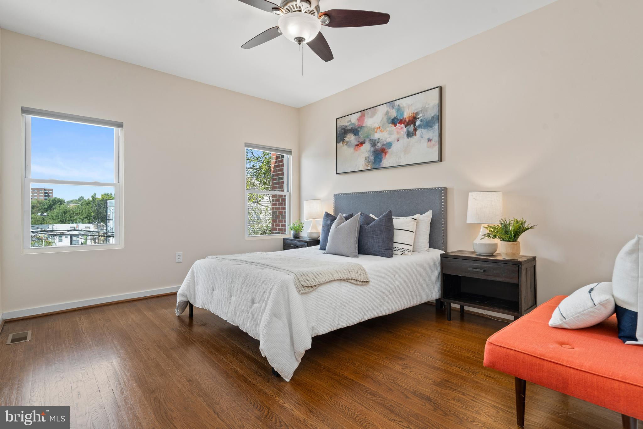 Back on the market because buyers had extenuating circumstances and had to relocate. SOLAR!! $43.41 Electric bill every month, because of solar panels!! 9 ft ceilings on main floor and upstairs; large deck off of kitchen; secured, covered parking; each bedroom has its own bathroom! This beautiful home boasts an open layout that ensures you have plenty of space to entertain your guests or simply enjoy some quality time with your family. As you enter, you will immediately notice the spacious and bright living room. Hardwood floors lead you to the updated kitchen which would be a delight for any home cook. With stainless steel appliances and plenty of storage, meal preparation becomes a breeze. Not to mention it leads right out to a deck which is perfect for hosting summer barbecues or simply relaxing with friends and family. On the second level you will find two large bedrooms that get a lot of natural light. Both bedrooms have their own bathrooms and are ideal for those who crave a peaceful and relaxing retreat after a long day. The lower level of the house can be a great space for many different uses. Whether you need an extra bedroom for guests, a private space for a family member, or a home office, it has plenty of options. With the added convenience of a full bathroom, this becomes a self-contained living space. Steps from Union Market, this home has everything a homeowner could want. From bars and restaurants to grocery stores and flower shops, it’s all at your fingertips.