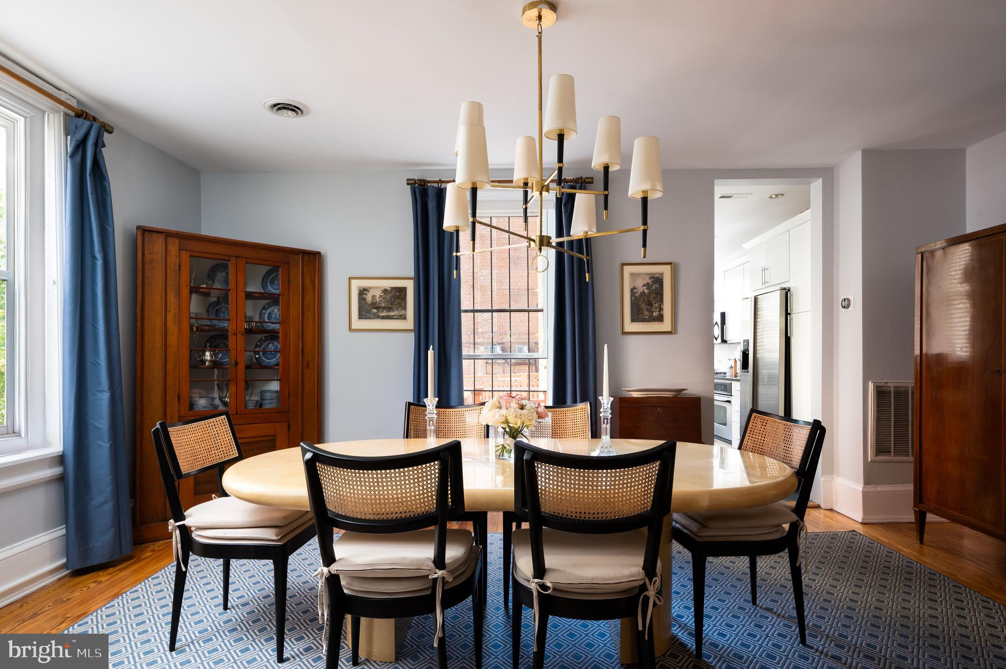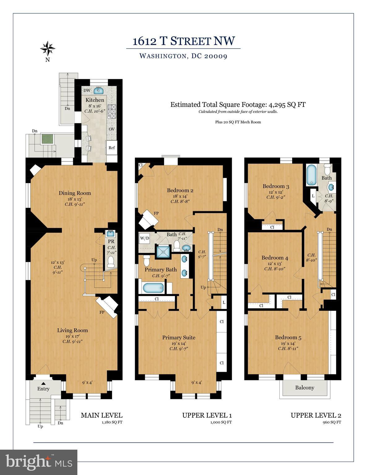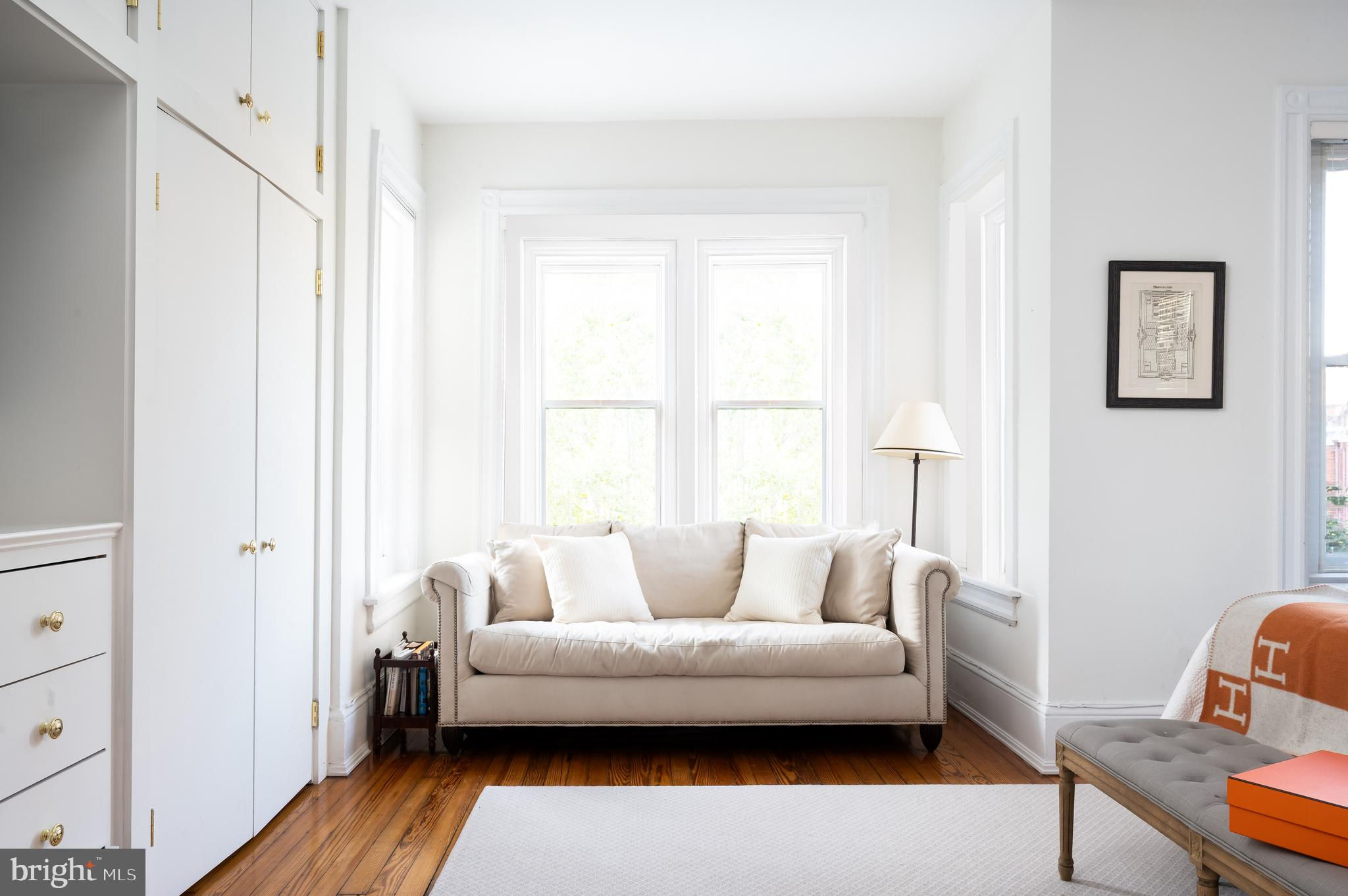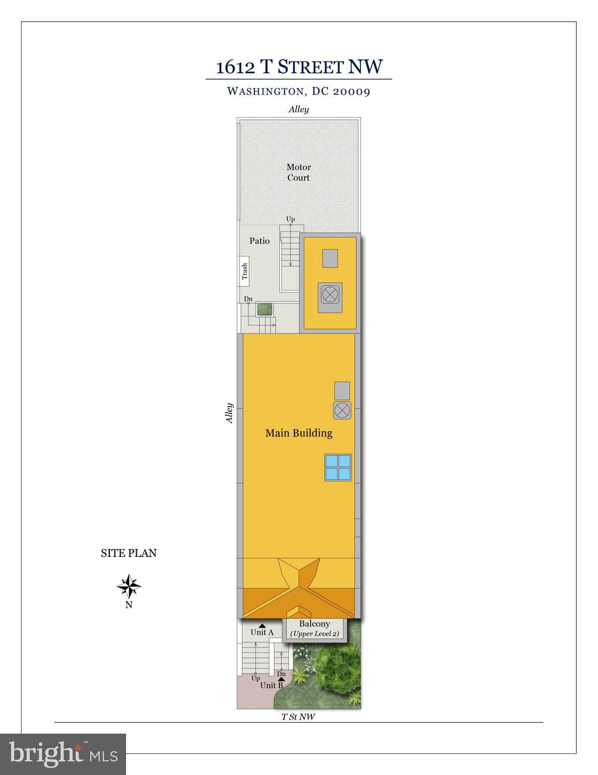 This home features a newly renovated lower level apartment with Certificate of Occupancy | Prominently situated amidst verdant surroundings in an enviable location bound by the 16th and U Street Corridors, 1612 T Street Northwest is a stately example of townhome living. Originally constructed at the turn of the 20th century, the end-unit residence has been painstakingly restored and improved throughout the decades to straddle the line between modern convenience and preserved historic charm. The imposing four-level structure is classically clad in brown brick, accented by intricate contrasting details. A brick paver walkway steps up from the sidewalk, traversing a petite front garden dominated by a Japanese maple, and ascending a set of steps to the gloss black front door capped by a semicircular transom window. The main level is introduced by grand formal spaces sharing an effortless flow yet maintaining an appropriate level of separation to host elegant gatherings. High ceilings and a refreshingly bright palette create an ethereal ambiance throughout. The formal living room is generously proportioned, featuring a deep bay window lined with clever integrated storage, as well as a roaring angled fireplace with brown mosaic surround. The original grand staircase is a showpiece, highlighting rich, intricate millwork and concealing the formal powder room. Through an archway is the formal dining room, its stunning fireplace surrounded by a hand-carved wooden mantle propped up by mini Ionic columns with a Carrara marble insert. The kitchen, flooded with natural light, features minimalist cabinetry, a hexagonal subway tile backsplash, dark granite countertops, and a suite of full-size stainless steel appliances. A skylight bathes the grand staircase in natural light. Ascending it to the upper level reveals a sumptuous primary suite. The bedroom features clever integrated storage solutions and a private sitting nook, as well as a sumptuous ensuite bath with double vanity and large, tile-clad shower and tub combination. The second upper level bedroom is equally lavish, with a roaring fireplace, private balcony, custom built-ins, and marble bath. Three additional well-proportioned bedrooms are found on the top level, one of which is currently utilized as a large home office with a wall of built-ins. It features a small terrace with sweeping city views. A fully-tiled hall bath is conveniently located steps away from all bedrooms. Fully self-sufficient, the lower level (with certificate of occupancy) has a dedicated exterior entrance, facilitating use as an in-law suite or additional income-generating opportunity. It features a full kitchen, living area, bedroom, and full bath. Benefitting from its end-unit position, the home’s side alley leads directly to the private parking pad, fully fenced and secured by a roll-up garage door and an additional surface space outside the fence– a true luxury within the highly sought-after neighborhood. The parking pad is finished in pavers, doubling as an outdoor entertaining area with direct access from the main level. Historically unique, spacious, rich in amenities, and situated in one of Washington’s most desirable locations close to top restaurants, nightlife, and public transit, 1612 T Street NW stands at the pinnacle of urban lifestyles.