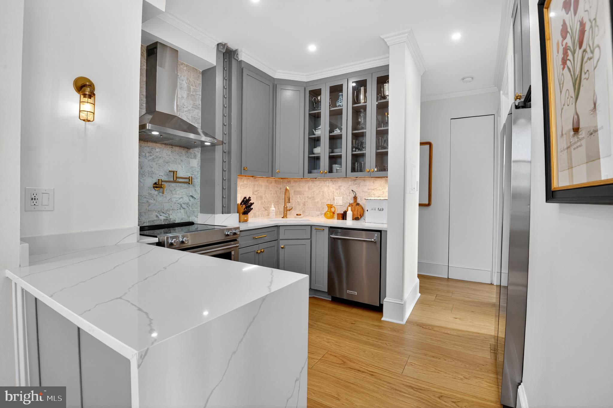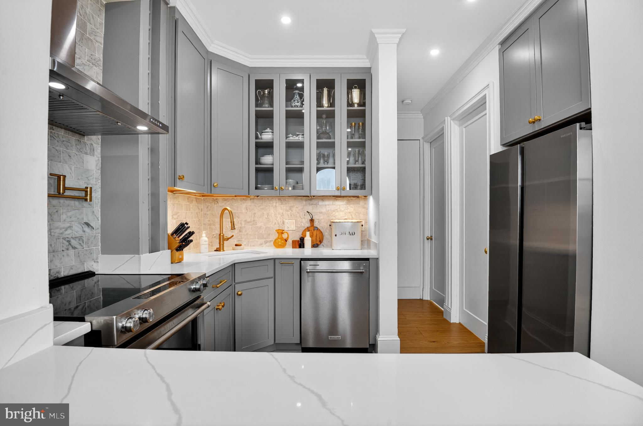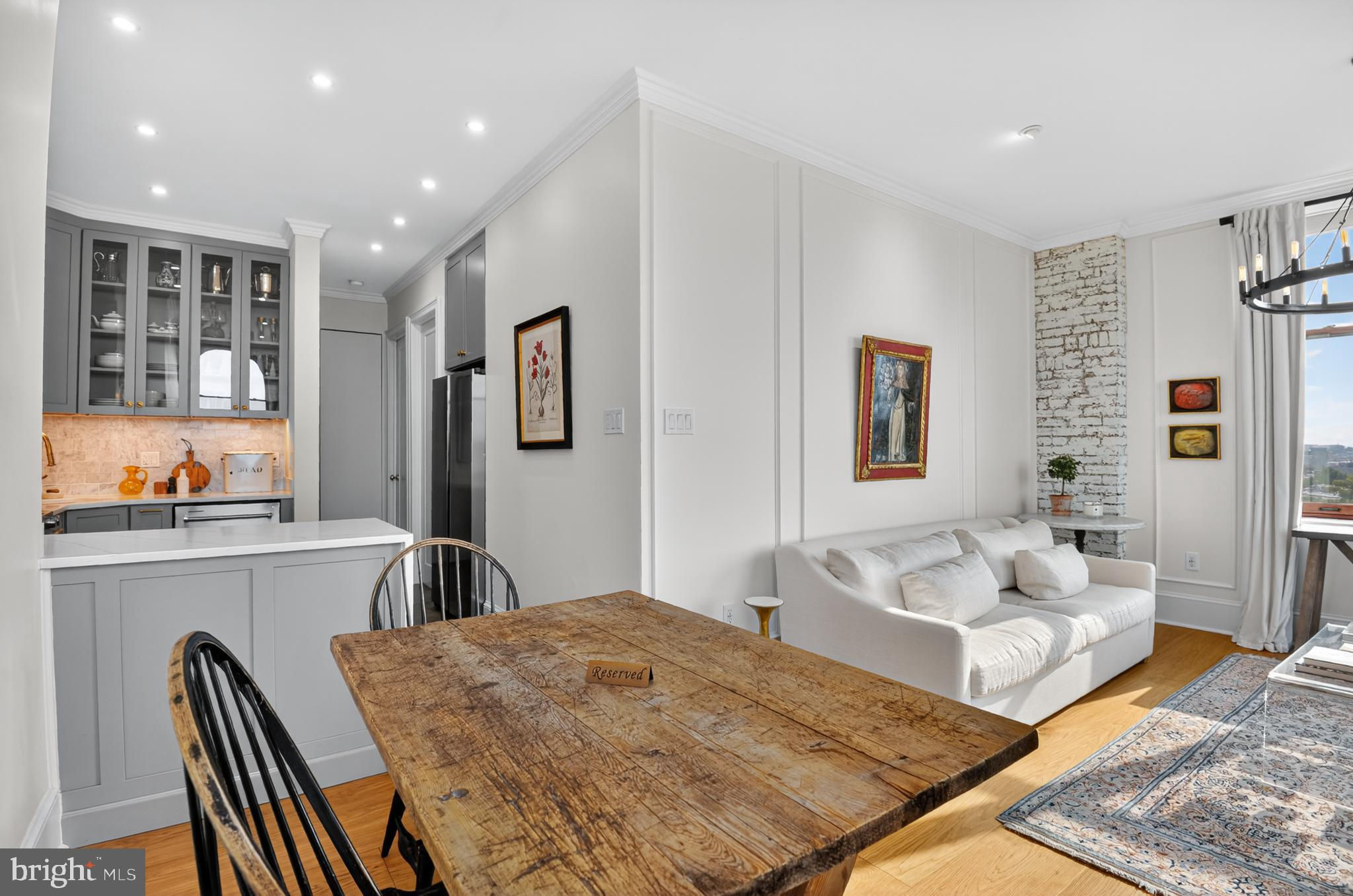 Rare Opportunity – Stunning Renovated Corner Unit with Iconic Views Perched high atop The Cairo, this completely renovated corner unit offers unbeatable panoramic views of Washington, D.C., including the Washington Monument, Capitol Hill, and the Potomac River. Oversized windows flood the space with natural light, highlighting the rich hardwood floors, custom moldings, and a bespoke kitchen featuring stainless steel appliances and quartz countertops. No detail has been overlooked. The home also includes an in-unit washer and dryer, recessed lighting, and built-in bookshelves. Located just steps from premier dining, shopping, and transportation, this residence boasts a Walk Score of 99—a true walker’s paradise. Garage parking is available for rent in the neighboring building for $250 per month.
