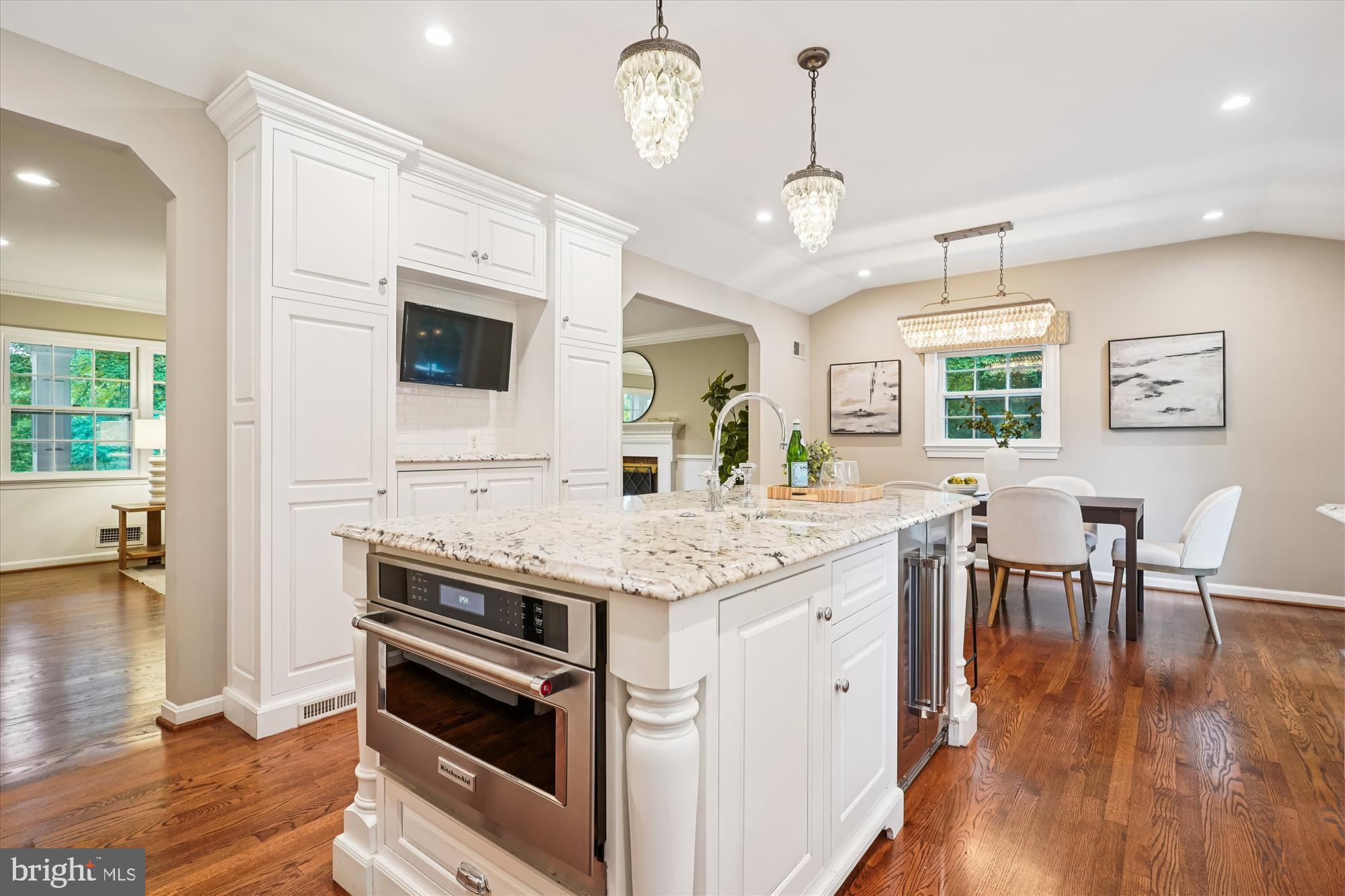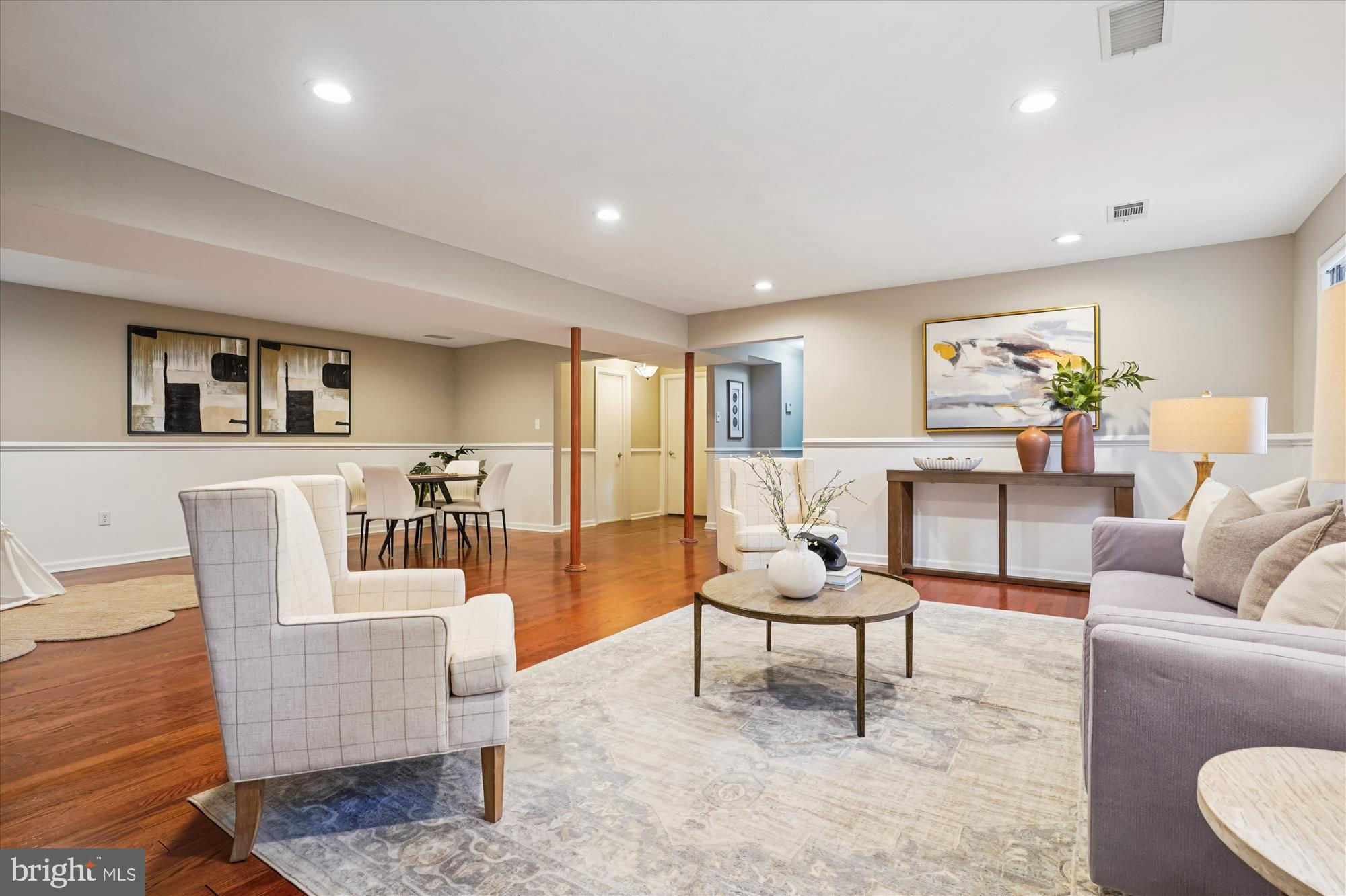 Welcome to this beautiful brick single-family home in the sought-after Hollindale neighborhood, perfectly situated on over half an acre and set back from the road for a true sense of privacy. This spacious 5-bedroom, 3-bath retreat offers a serene lifestyle with an expansive, landscaped backyard, a large deck ideal for entertaining, and a two-car carport with attic storage. Inside, the main level features a bright and inviting living room with a cozy fireplace and oversized window, a separate dining space with French doors to the deck, and a stunning chef’s kitchen. Designed for both everyday living and entertaining, the kitchen boasts a 6-burner Wolf gas range, prep sink on a large center island, stainless steel appliances, wine refrigerator, double pantry, and crisp white cabinetry. Recently refinished hardwood floors flow throughout the main living areas, adding warmth and character. The lower level extends the home’s versatility with two additional bedrooms—ideal for guests, a home office, or workout space—plus a large open family room with a fireplace and plenty of natural light. A generous utility room offers abundant storage, laundry, and direct access to the carport for everyday convenience. The backyard is a true highlight, complete with a shed, new pavers, mature trees, and ample space to relax or host gatherings. Thoughtful updates provide peace of mind, including a full roof replacement (2018), new deck (2020), fresh exterior paint (2020), carport paint (2025), and recent appliance upgrades such as the washer/dryer, wine fridge, and microwave. Ideally located with easy access to the GW Parkway, Old Town Alexandria, Fort Belvoir, and Washington, DC, this home combines comfort, style, and convenience in one exceptional package.