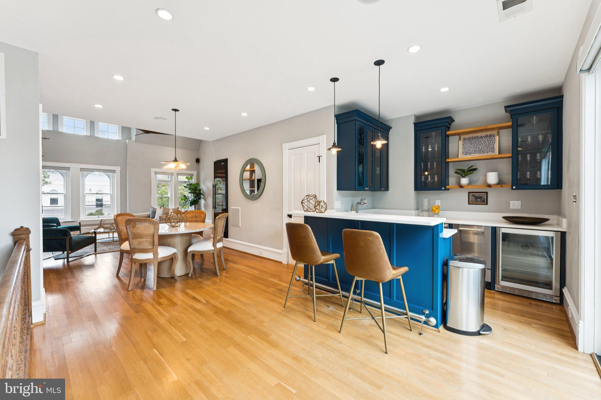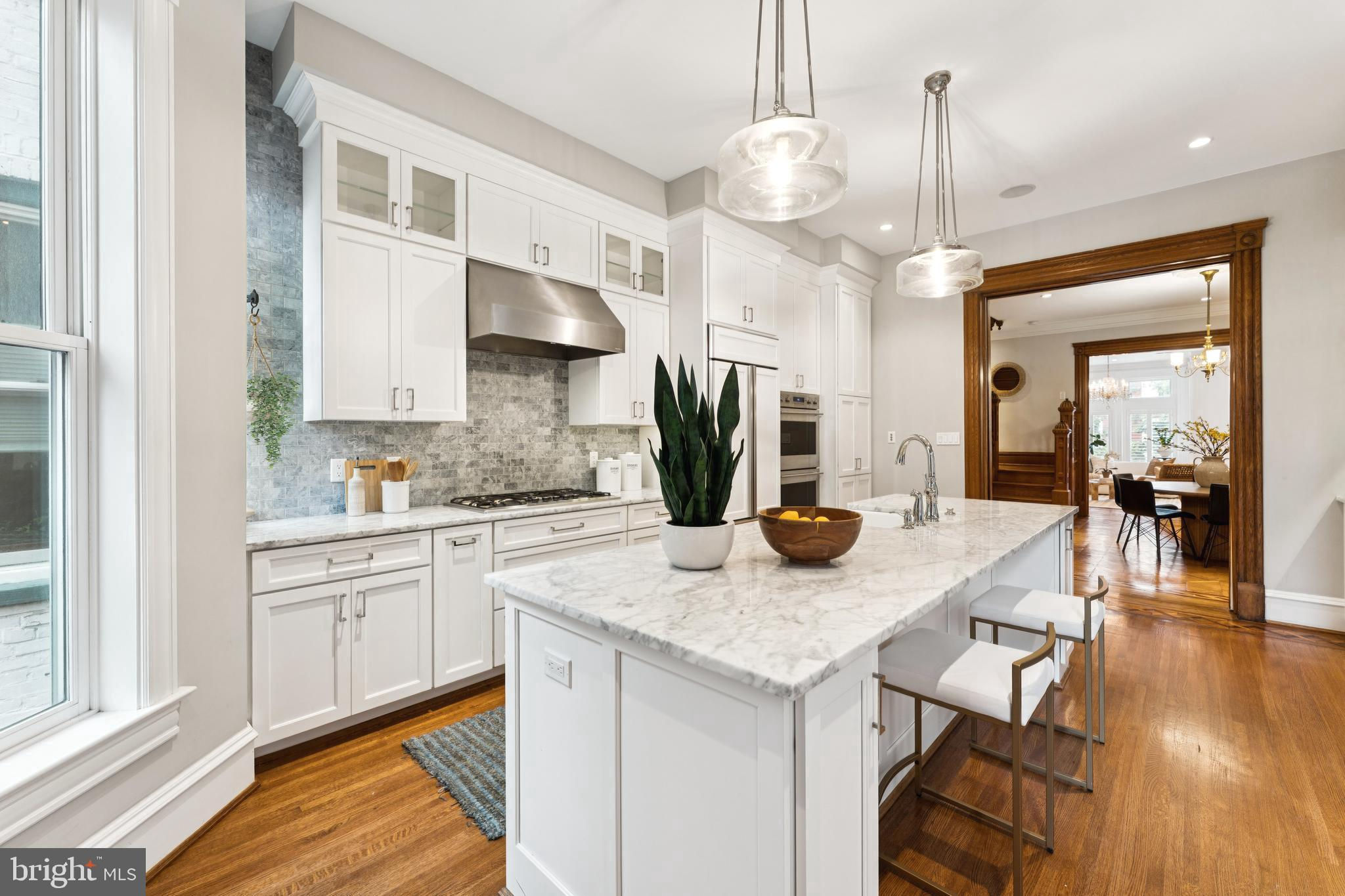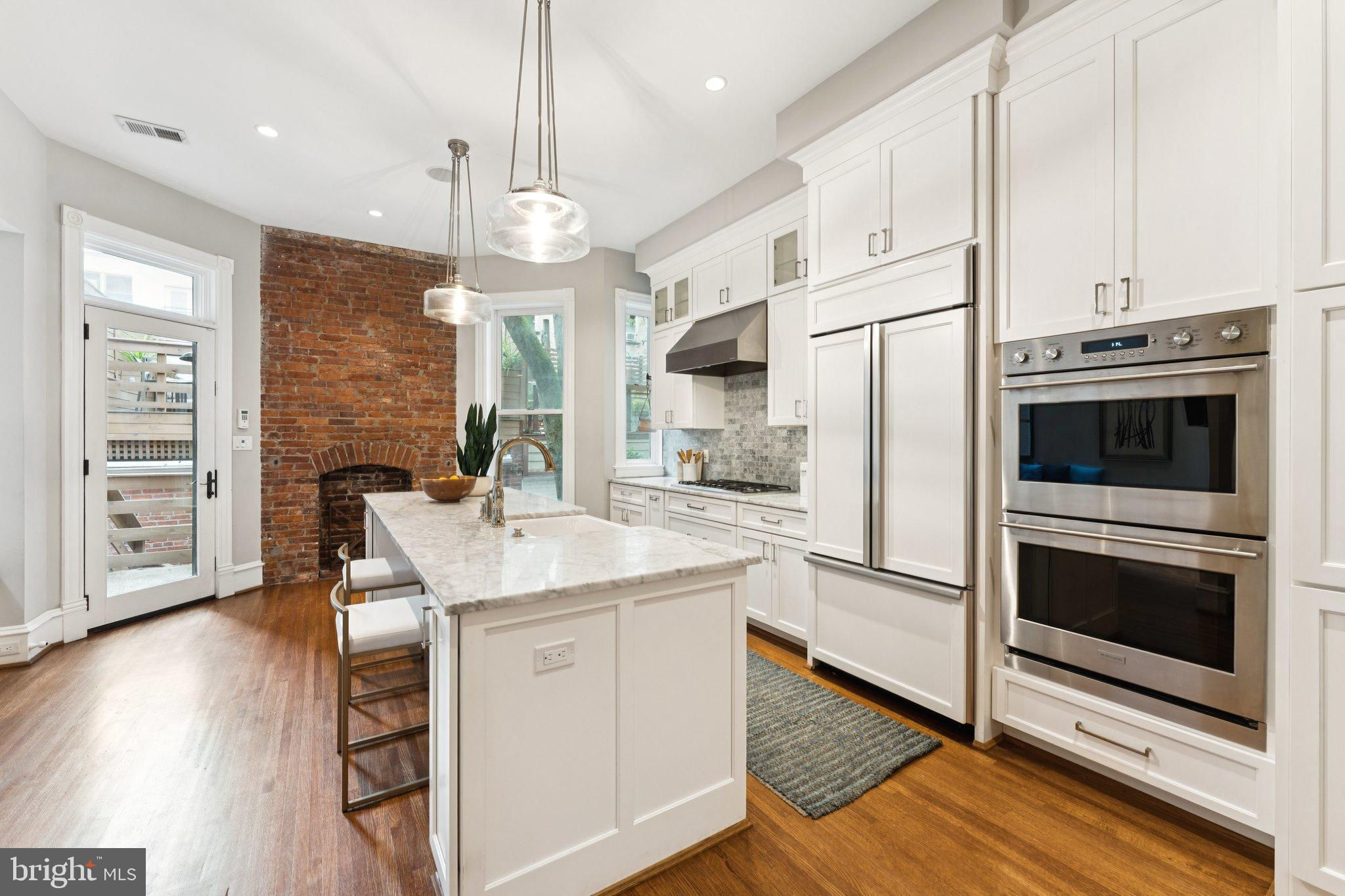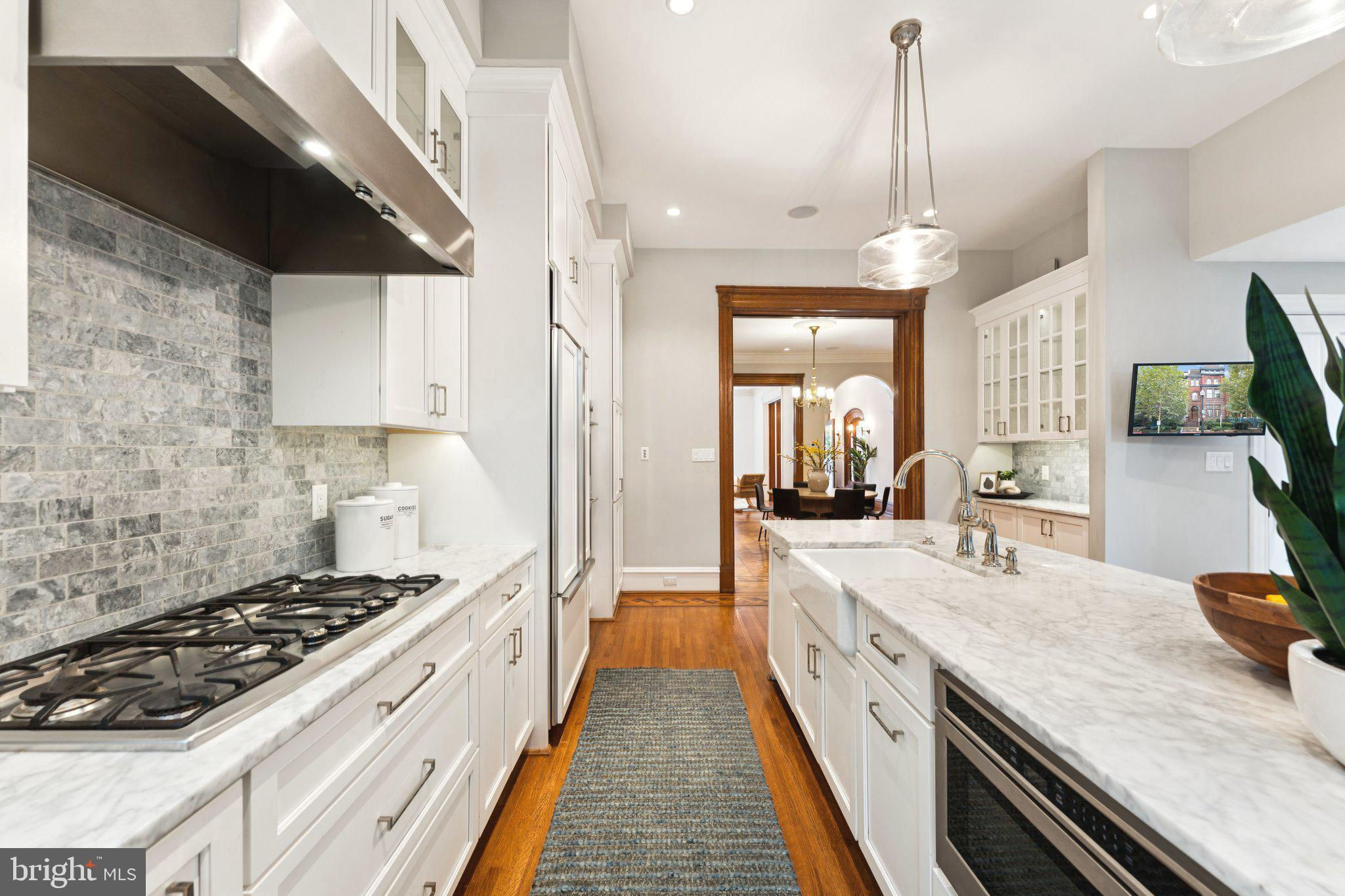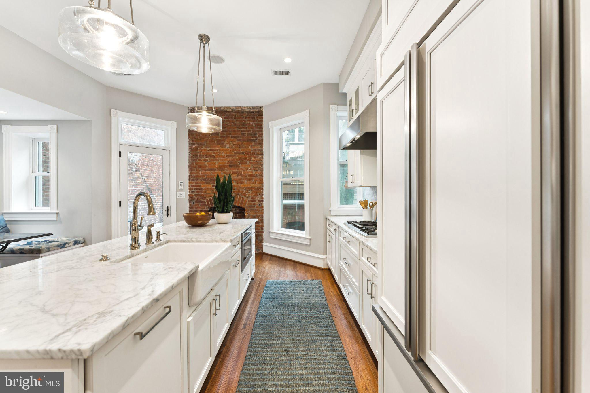 **BRAND NEW PRICE** Welcome to this extraordinary fully renovated historic rowhome nestled on a quiet, tree-lined street in coveted Dupont Circle. Spanning 4,429 square feet across four spacious levels, this one-of-a-kind residence blends timeless architectural charm with thoughtfully integrated modern amenities. The home offers a 5-bedroom, 5.5-bathroom layout including a LEGAL 2BR | 2BA rental unit, ideal for guests, multigenerational living, or income-producing potential. Originally built in 1895, 1620 S Street was designed by L. F. Gardner and features a 21-foot-wide lot, 10.5-foot ceilings on the main level, 9.5-foot ceilings on the second floor, and soaring 16-foot ceilings on the top floor. Once inside, discover exquisite original inlaid hardwood floors, exposed brick, pocket doors, and four elegant gas fireplaces that echo the home's rich heritage. The main level has a living room, separate dining space, and the chef’s kitchen is a culinary showpiece, outfitted with high-end appliances, a massive island, and abundant white soft-close shaker cabinet and ample counter space — perfect for everyday living or hosting on a grand scale. Upstairs, The primary suite is a serene retreat, boasting a luxurious en-suite bath with heated floors and spa-like finishes. Two additional nicely-sized bedrooms, an additional stylish full bathroom, and W/D complete this level. The top floor is an entertainer’s dream, featuring 16-ft ceilings a dining and entertainment area, wet bar with separate ice machine, wine storage, and access to a PRIVATE ROOFTOP DECK with sweeping city views and a cozy gas fireplace — perfect for chilly DC nights. A HUGE rear deck offers additional outdoor space for alfresco dining and relaxation, while the RARE 2-CAR GARAGE ensures convenience in the city. All of this is perfectly situated just minutes to everything Dupont Circle and the surrounding neighborhoods have to offer — restaurants, parks, shops, metro, and more — yet tucked away on a peaceful block. Historic charm, modern luxury, and unmatched location — this is the Dupont Circle dream. Some photos of the lower rental unit are virtually staged/altered for the privacy of the tenants.