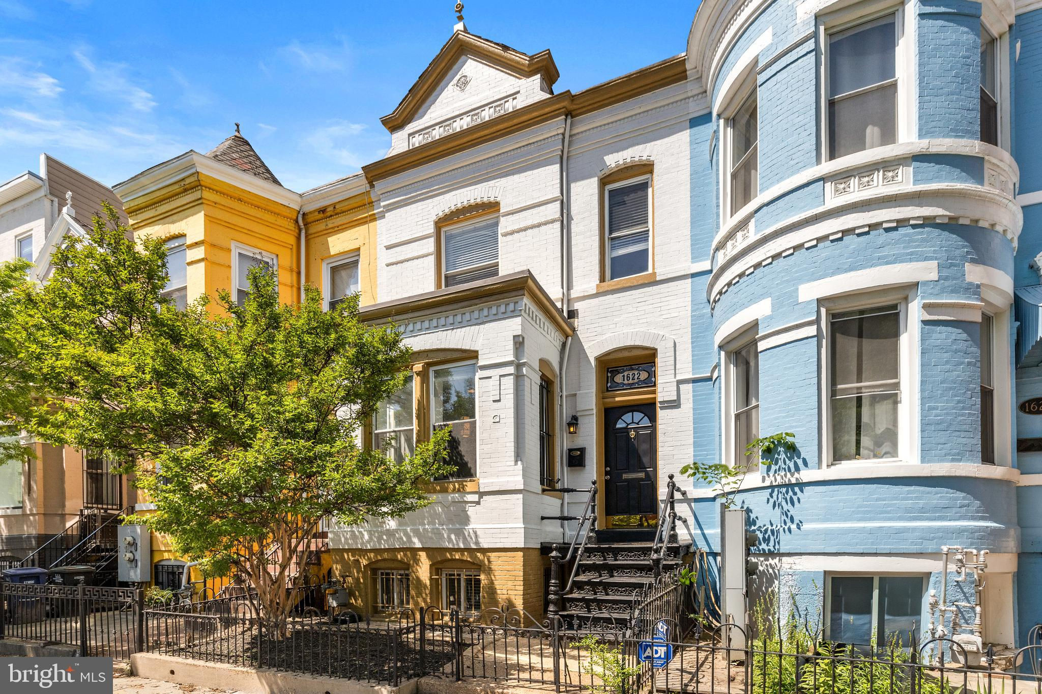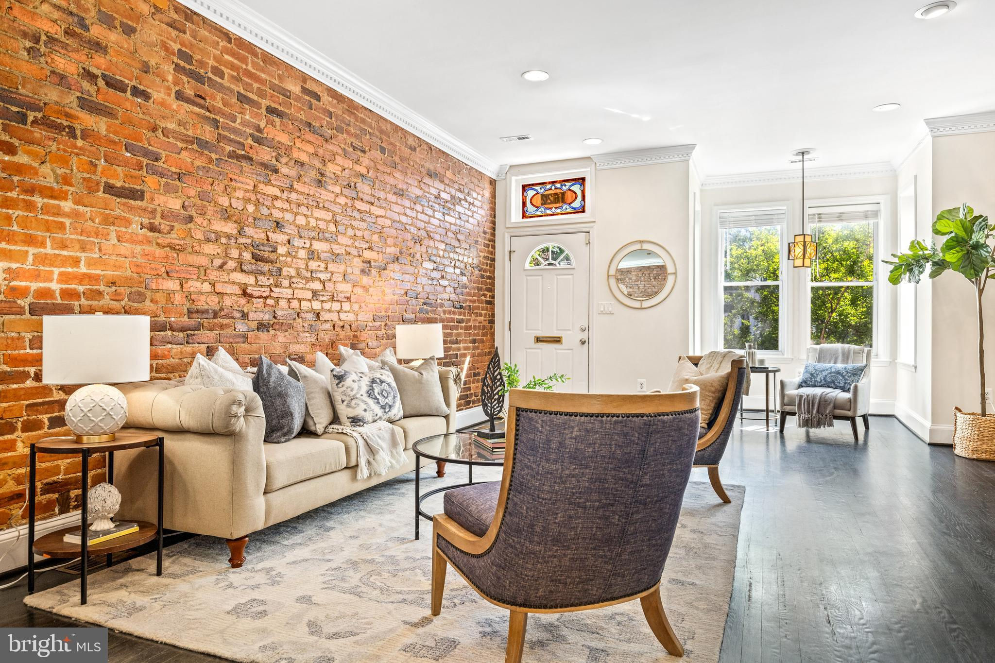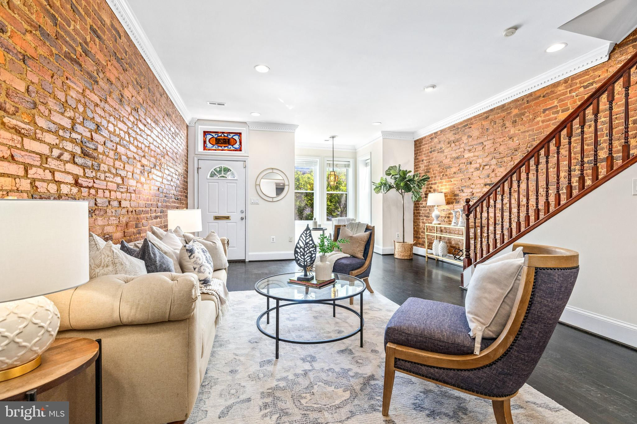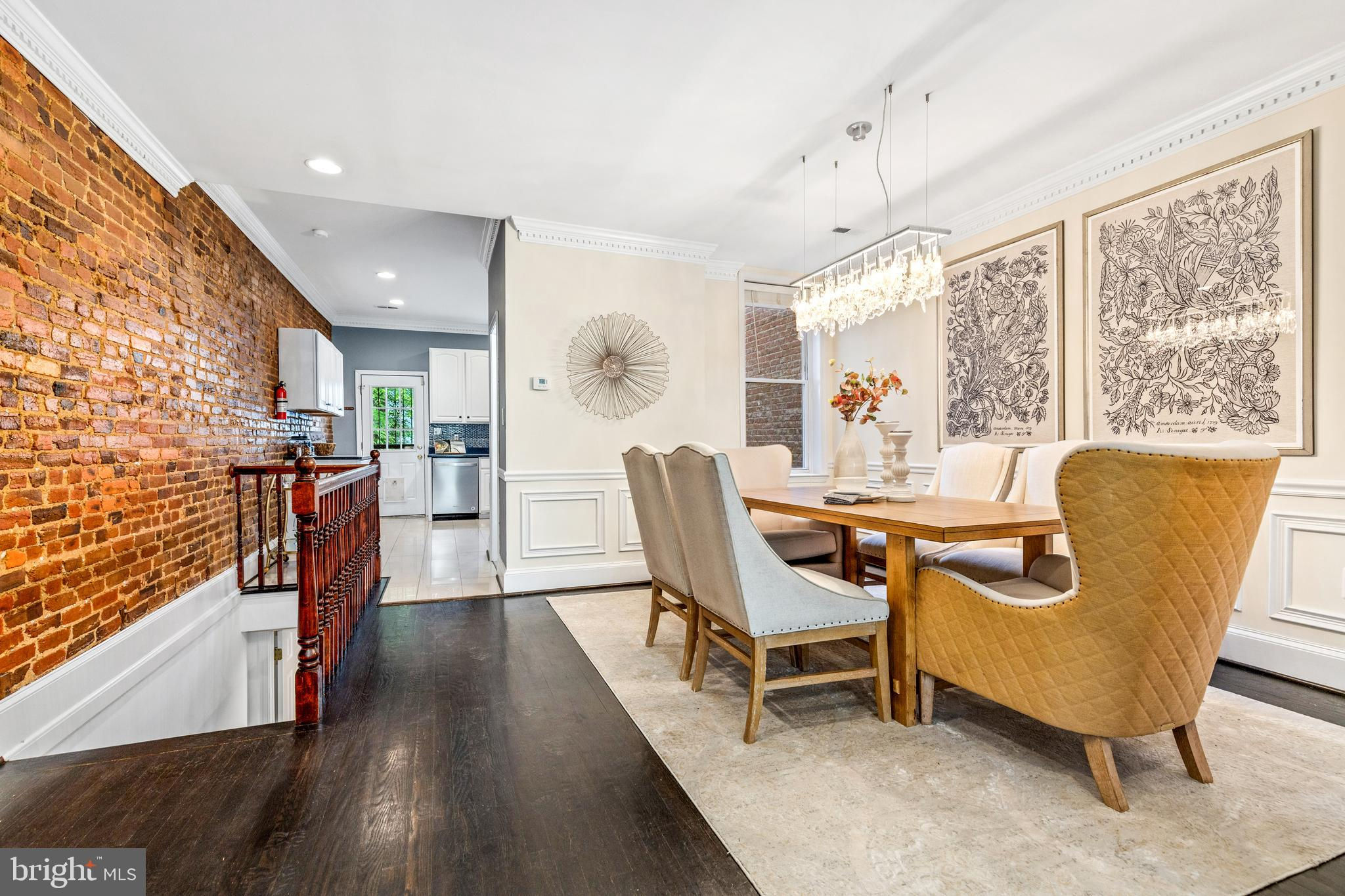 Welcome to this 4 bedroom, 3.5 bath row home featuring a Detached Garage/Carriage House and potential income generating lower level with its own separate front entrance. This transitional floor plan blends traditional and modern design elements that create a clean, timeless, and classic home. Upon entering, you’re greeted by the warm ambiance of the interior, featuring rich hardwood floors, exposed brick walls and high ceilings that create an inviting atmosphere. The main level is designed for entertaining with a spacious living room centered by a gas fireplace adding instant charm. The large, separate dining room is the perfect space for both formal and family dinners. Don’t miss the storage under the main steps. The kitchen has plenty of cabinets, gas cooking, stainless steel appliances. From the kitchen, step out onto the hardscape patio for dinners al fresco. There is a half bath conveniently located on the main level. Retreat to the tranquil primary suite on the upper level which boasts another gas fireplace and en-suite bathroom with separate tub and shower. Two bedrooms complete the upper level along with another full bathroom. The bonus feature is the potential income generating English basement with a separate entrance that has a full kitchen, bedroom, bathroom, living area with a 3rd gas fireplace, and equal access to the laundry room. This is an ideal space for Airbnb, au-pair suite, or an office space for the work from home professionals. Commuting could not be easier with secure parking in the detached garage. The garage/carriage house has electricity and lighting which provides many options for its use. The garage/carriage house conveys as is. Just steps to the Shaw and Metro Station and surrounded by restaurants, boutiques, and shops. Easy access to the City Market at O St.